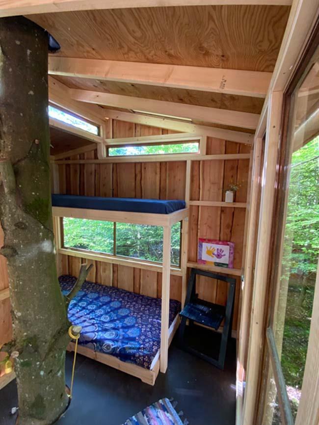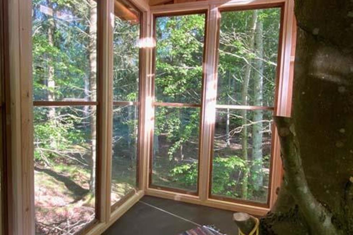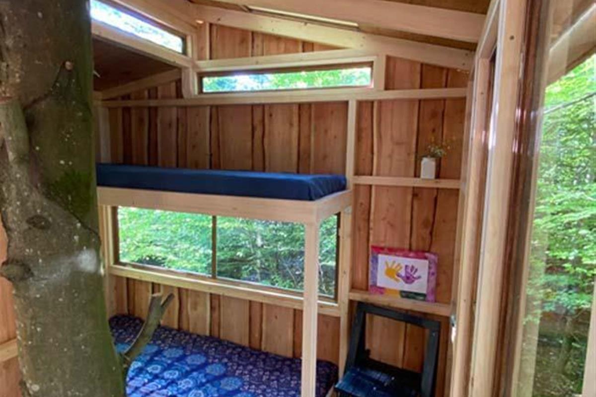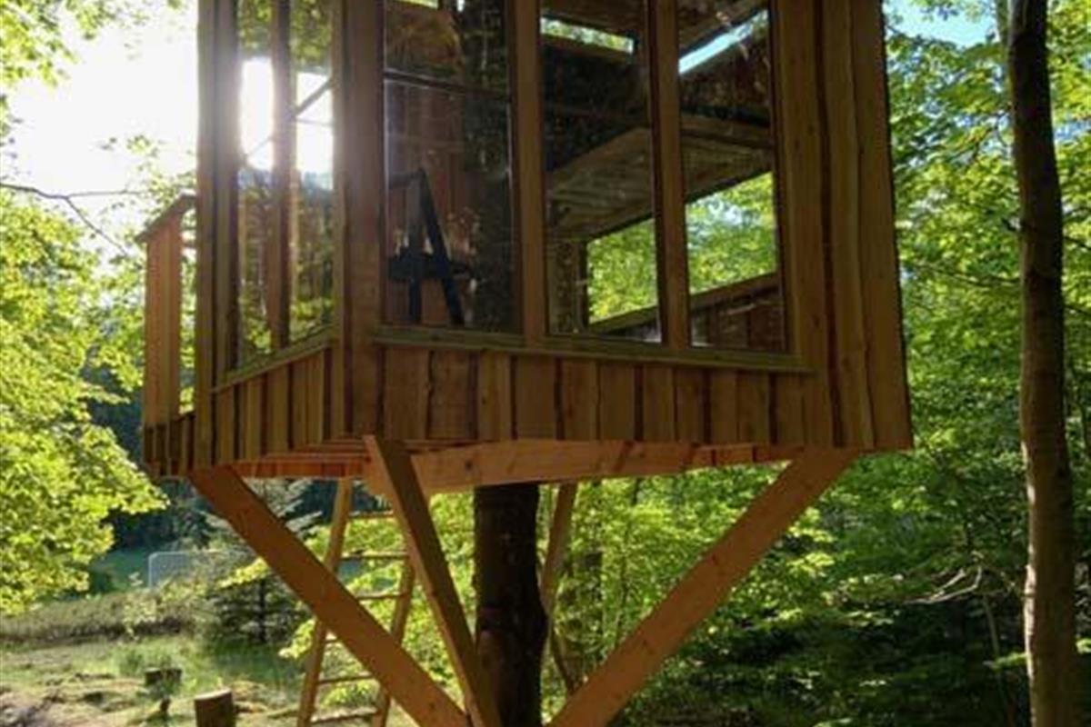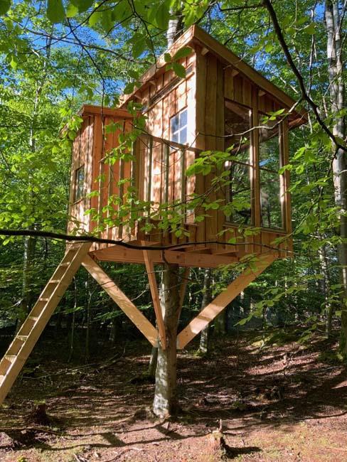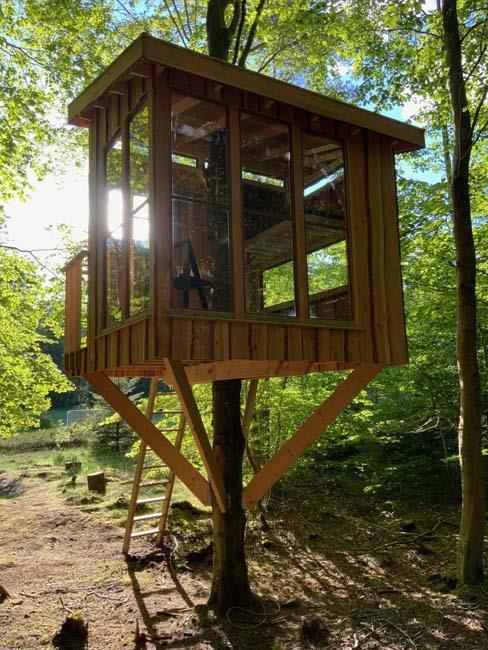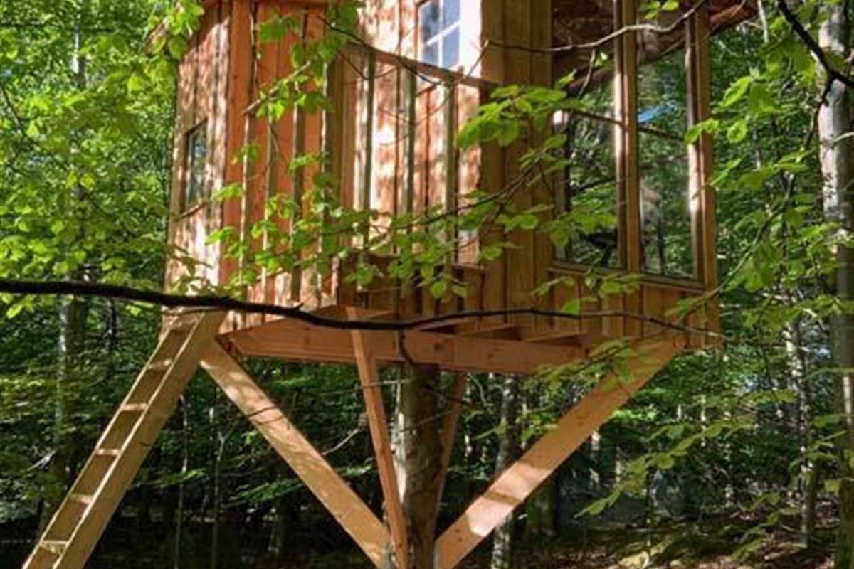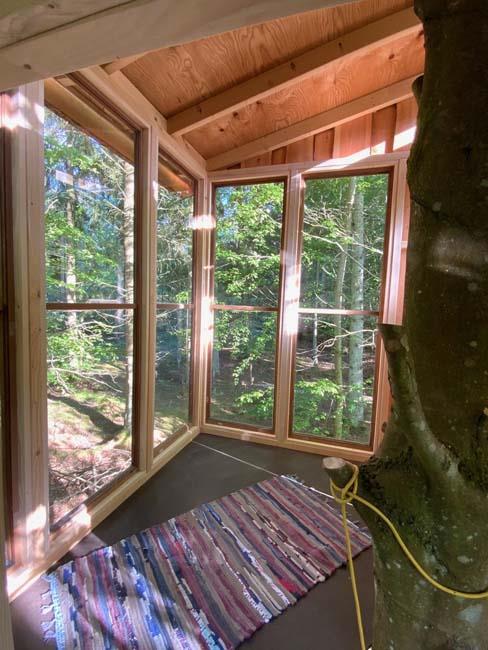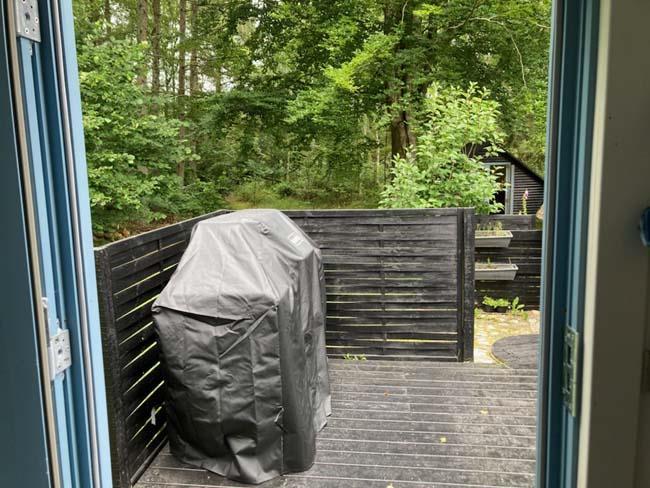 Ude midt i skoven, på en stor lysning ligger dette eventyrligt spændende stråtækte sommerhus. Huset ligger på 65.000 m naturgrund, hvoraf et stort område foran huset er græs, hvor der en stille aften græsser rådyr. Der er ”ud i grunden” mange slåede stier, så man kan blive ledt rundt mellem lyng, enebær, bjergfyr og høje træer, - måske møde nogle af skovens dyr. Nær huset er det bygget et TRÆTOPHUS hvor der også er 2 sovepladser samt et shelter med plads til 3-4 personer, - således er der rig mulighed for hele familien kan overnatte ude, - - - eller hygge omkring bålplads, trampolin, gynge osv.