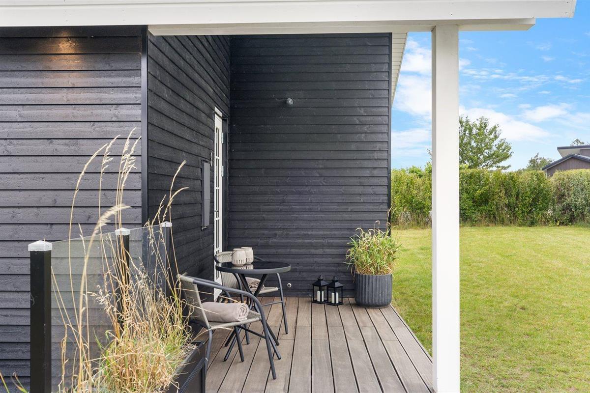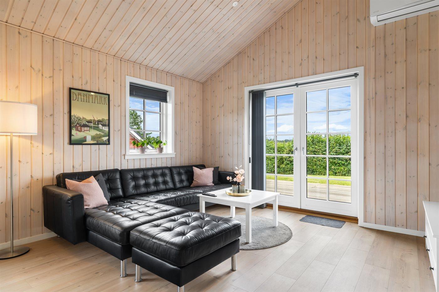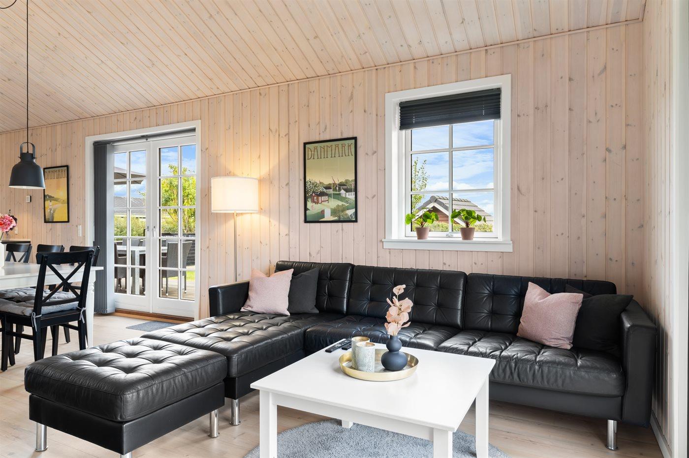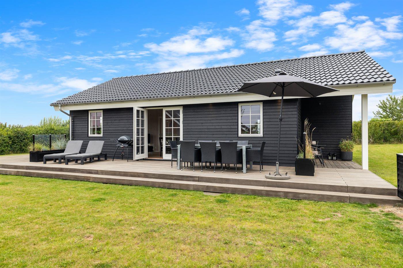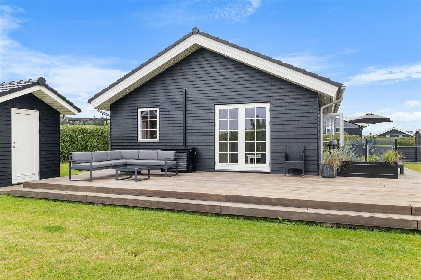 Modern vakantiehuis in Denemarken met binnenbubbelbad, omheinde tuin en elektrische auto-oplaadpunt, vlak bij zee en natuur.