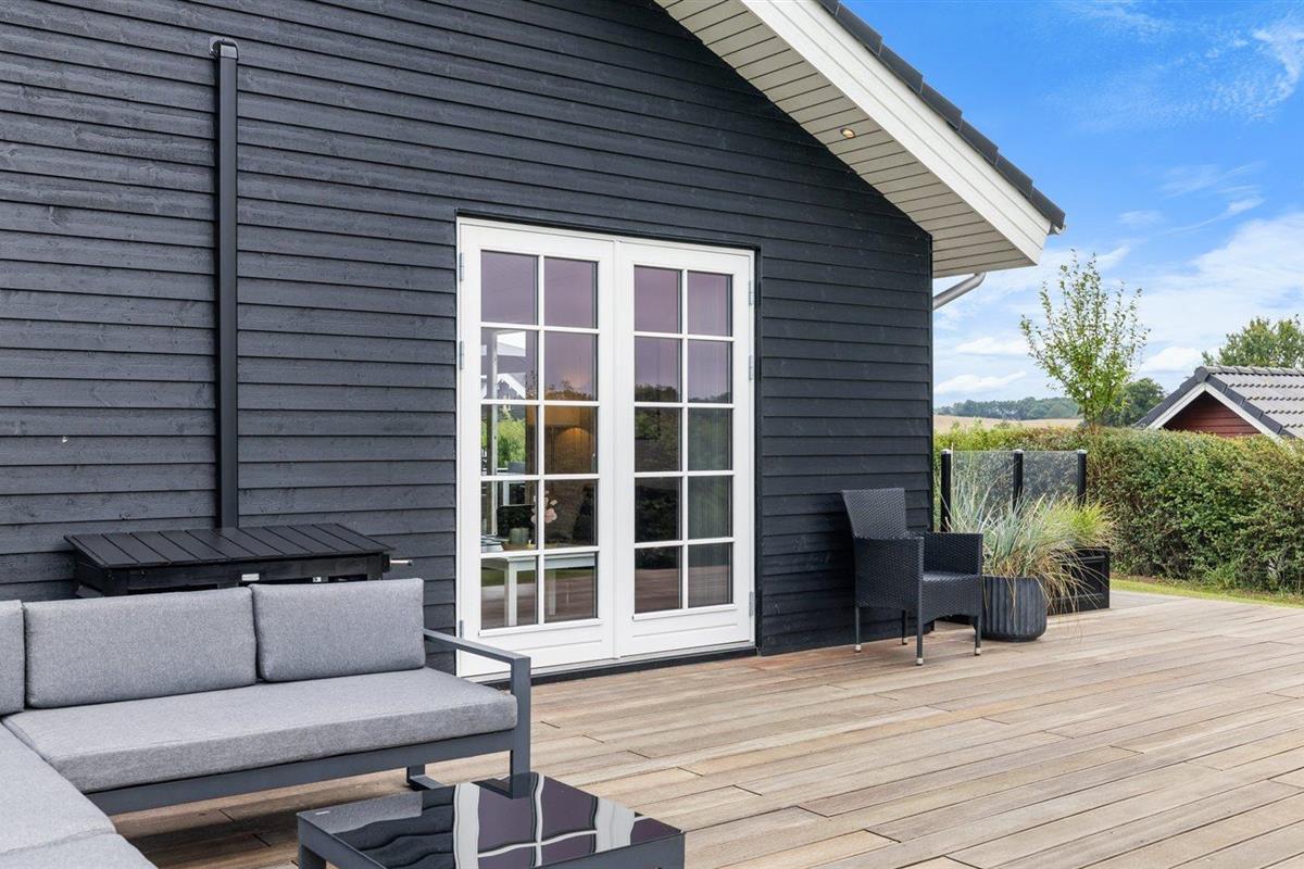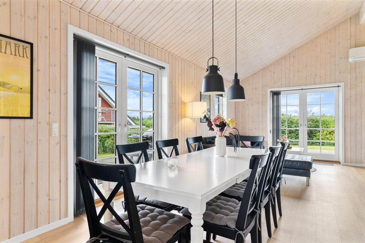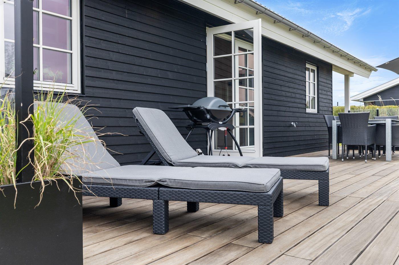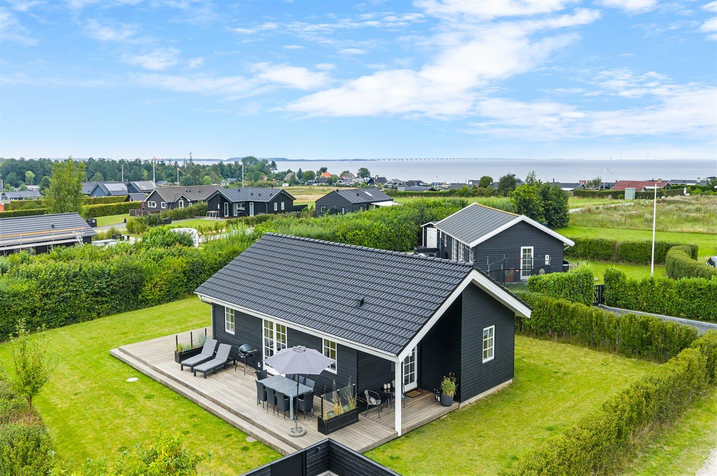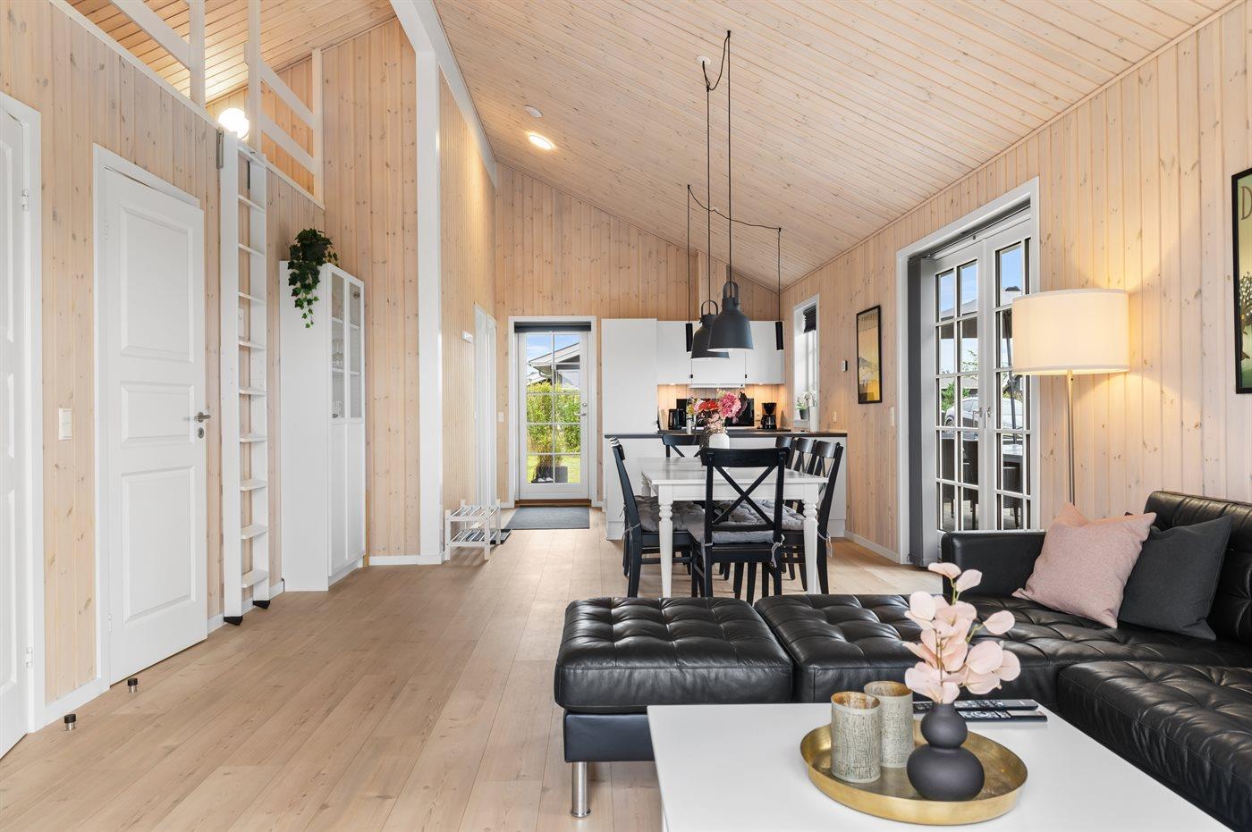 Modern vakantiehuis in Denemarken met binnenbubbelbad, omheinde tuin en elektrische auto-oplaadpunt, vlak bij zee en natuur.