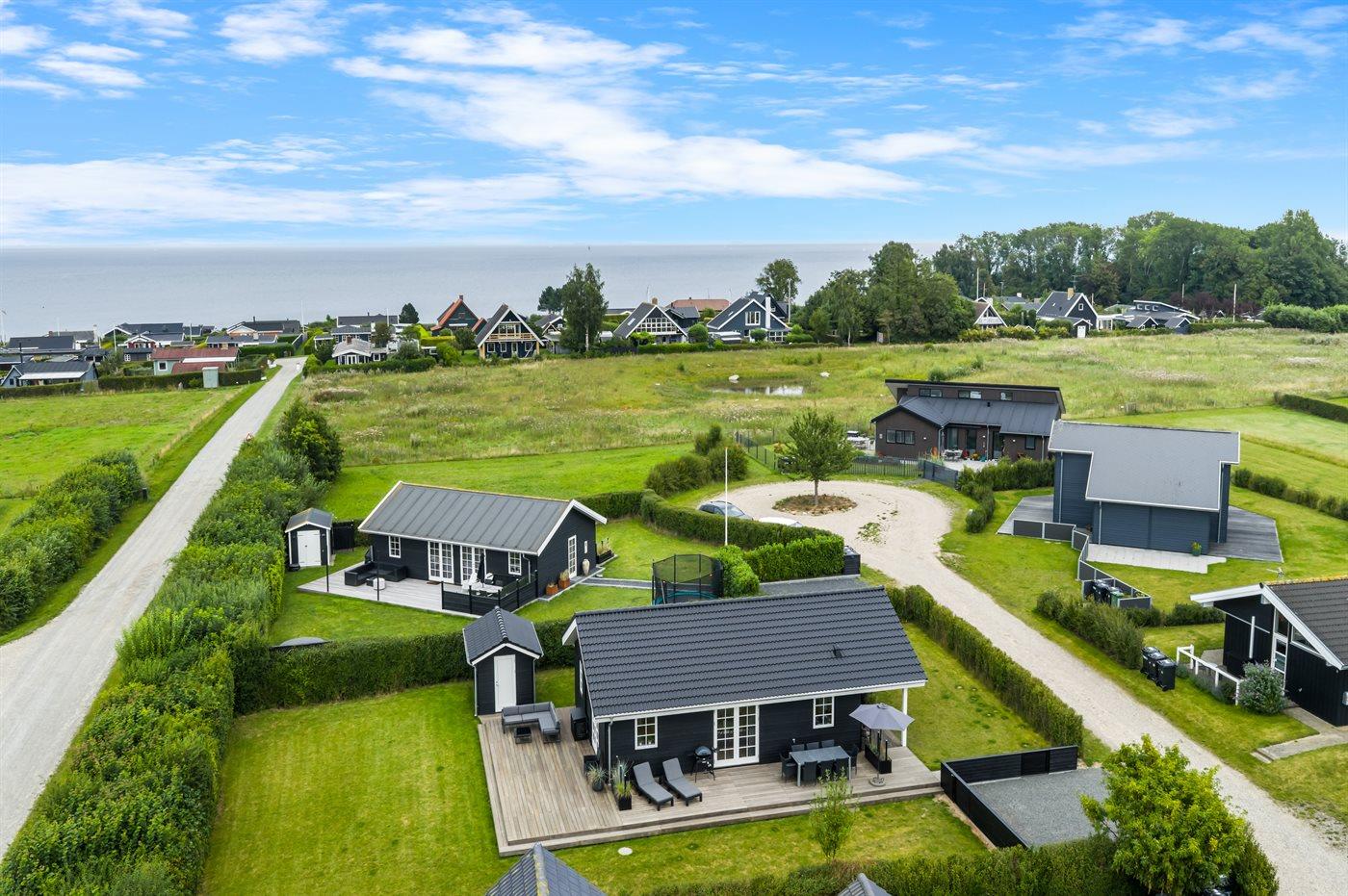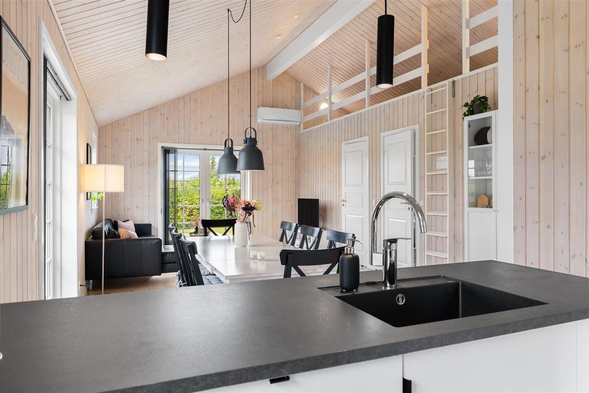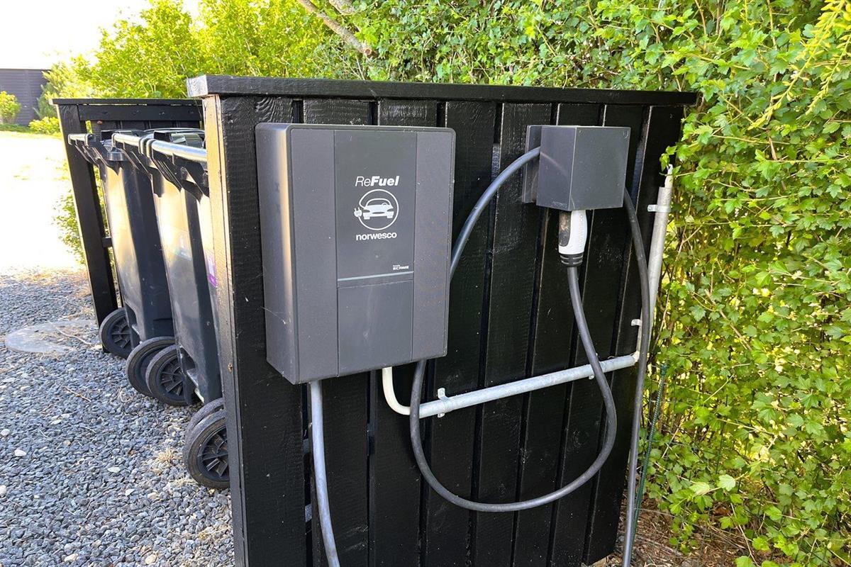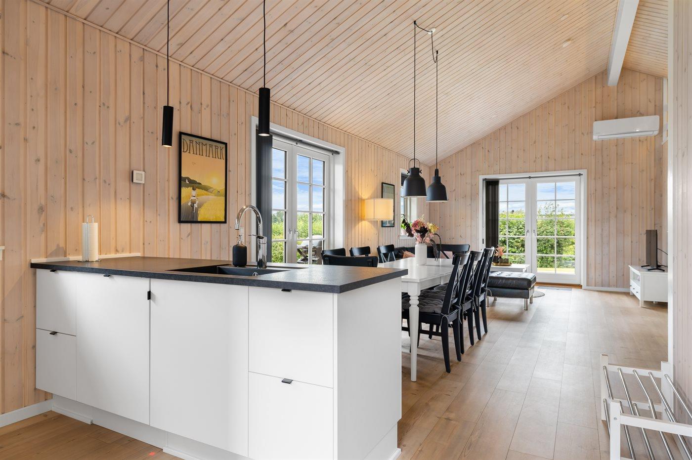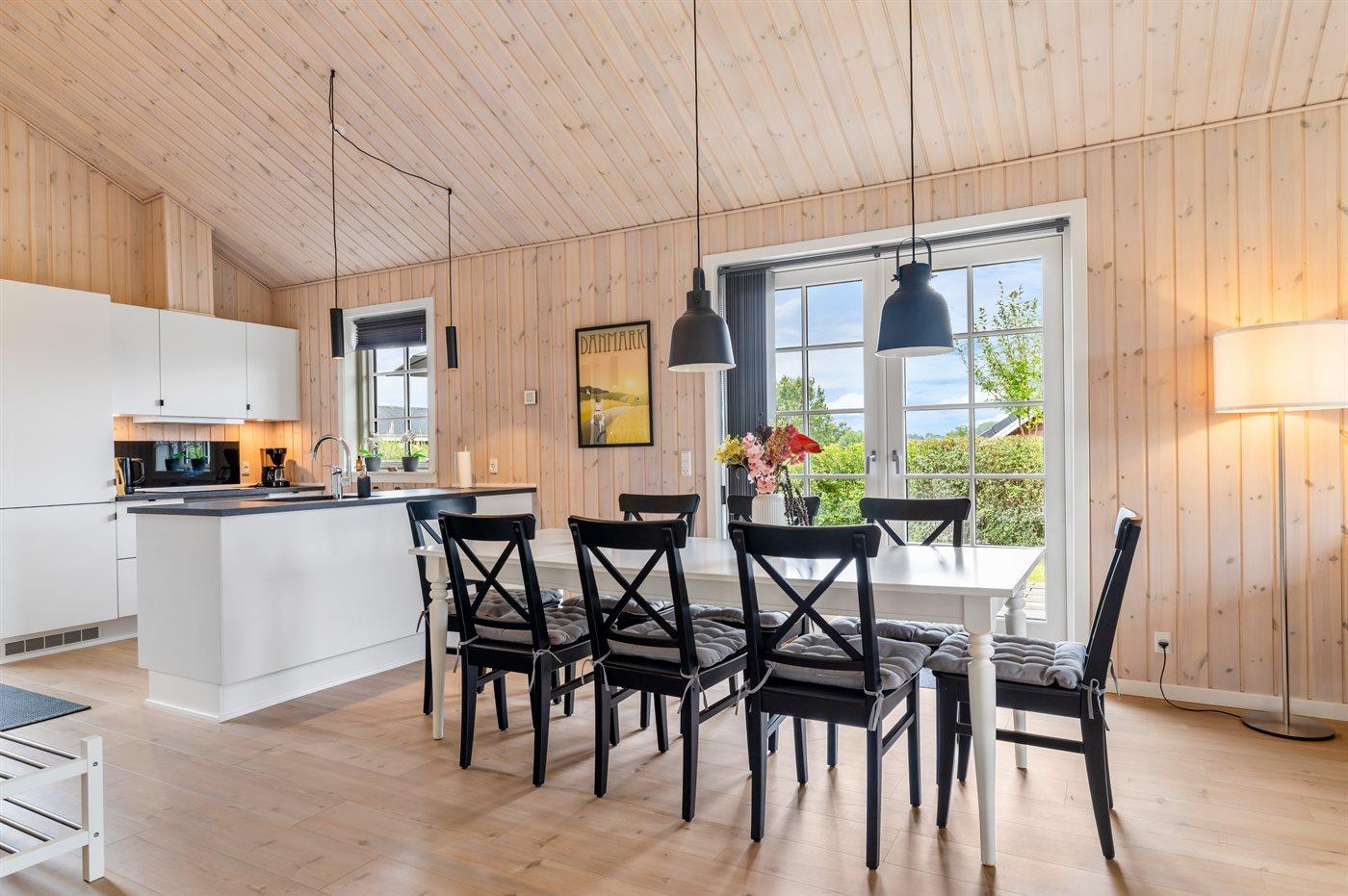 Modern vakantiehuis in Denemarken met binnenbubbelbad, omheinde tuin en elektrische auto-oplaadpunt, vlak bij zee en natuur.