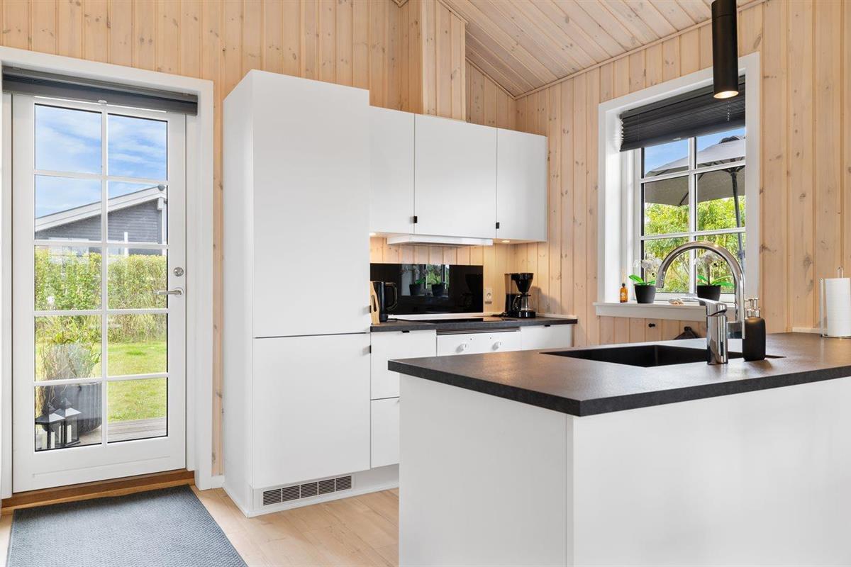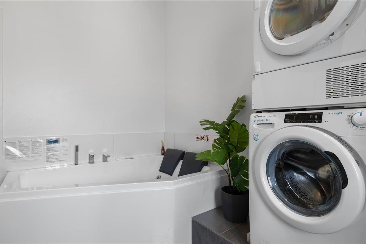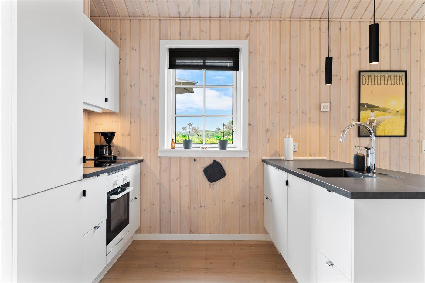 De keuken is uitgerust met koelkast Er is 4 inductiekookplaten, heteluchtoven en vaatwasser.