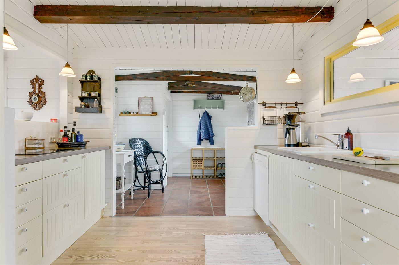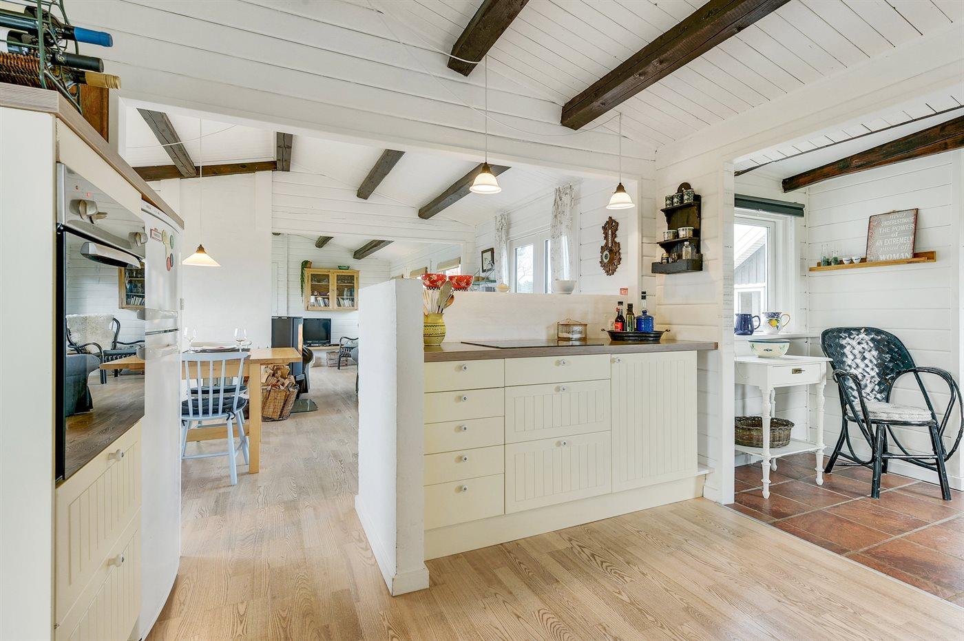 De keuken is uitgerust met koelkast Er zijn 4 keramische kookplaten, heteluchtoven en vaatwasser.