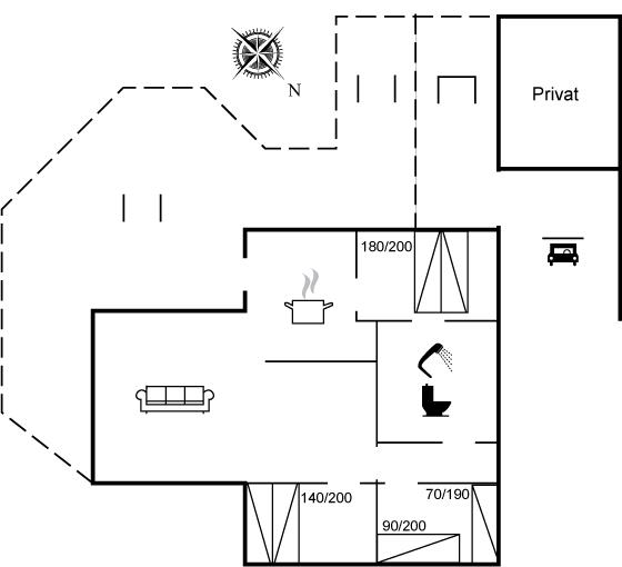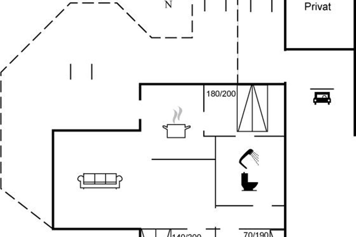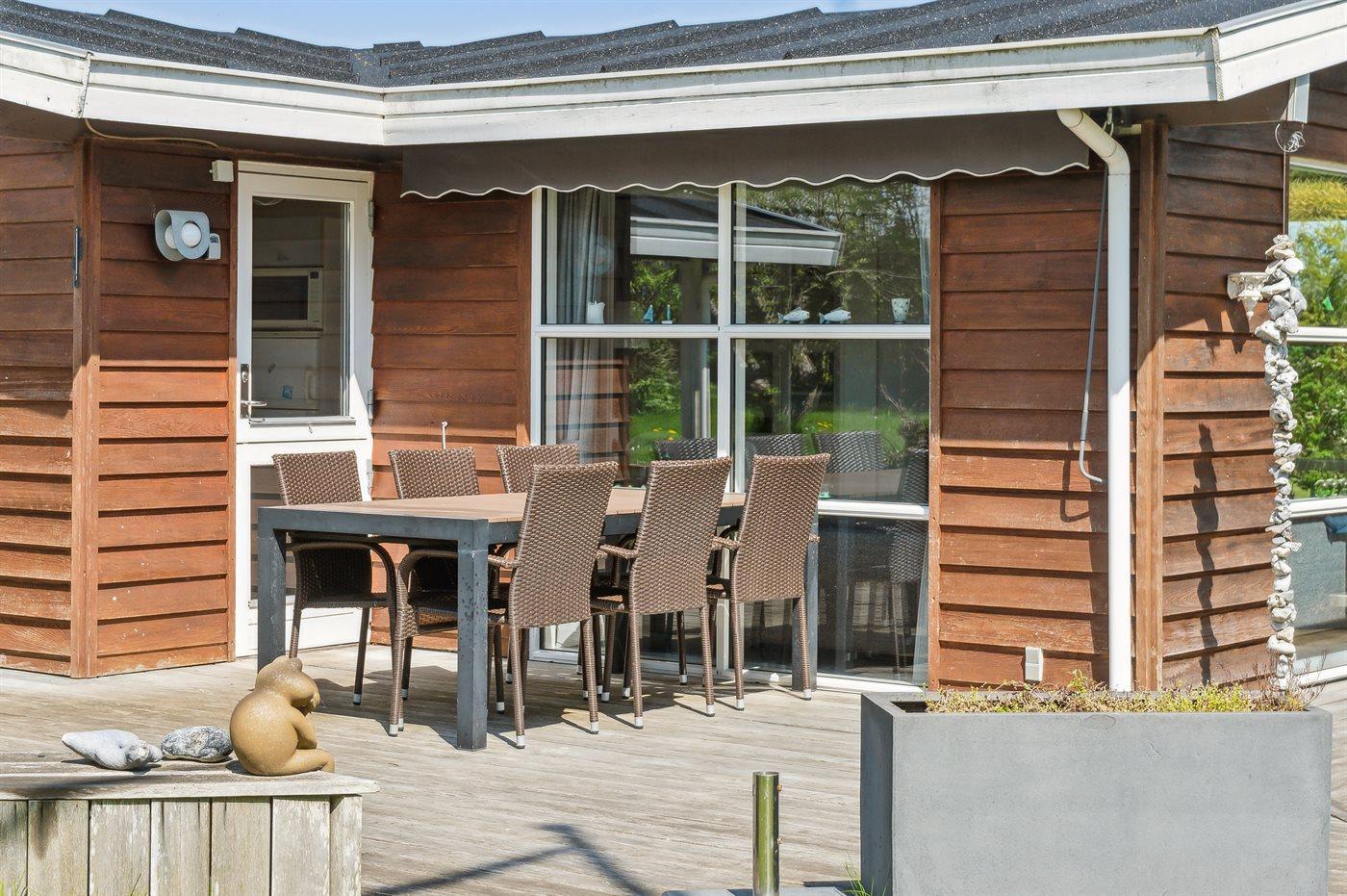 De vakantiewoning is gelegen op een 810 m² groot aangelegde tuin. Afstand tot de zee 200 m. Dichtstbijzijnde winkel 8000 m. Bij de vakantiewoning hoort terras. Daarnaast is er een overdekt terras. Barbecue. Carport ter beschikking. Parkeerplaats bij het huis.
