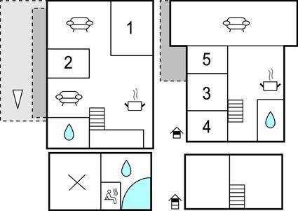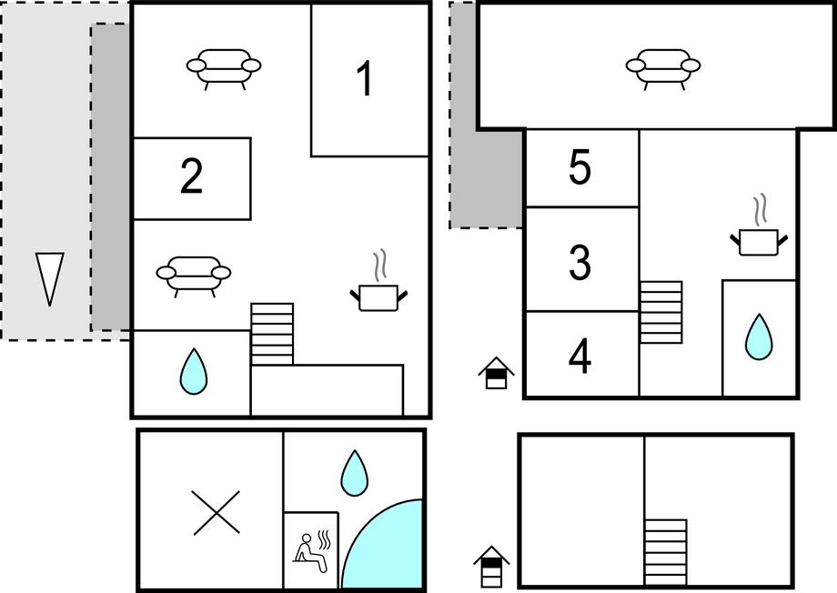 Opmerking: De huismeester woont in het voorste gedeelte van het bijgebouw.