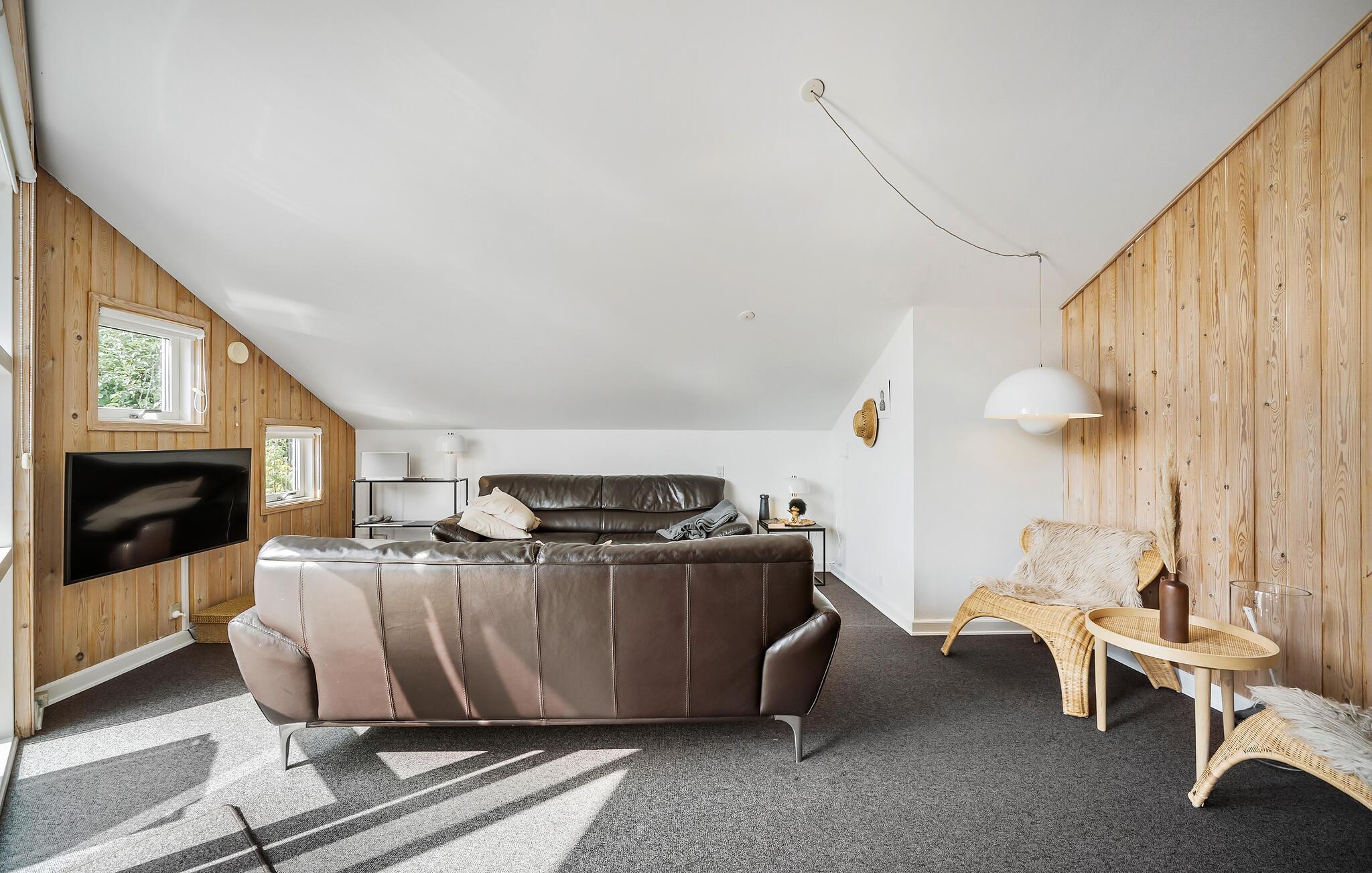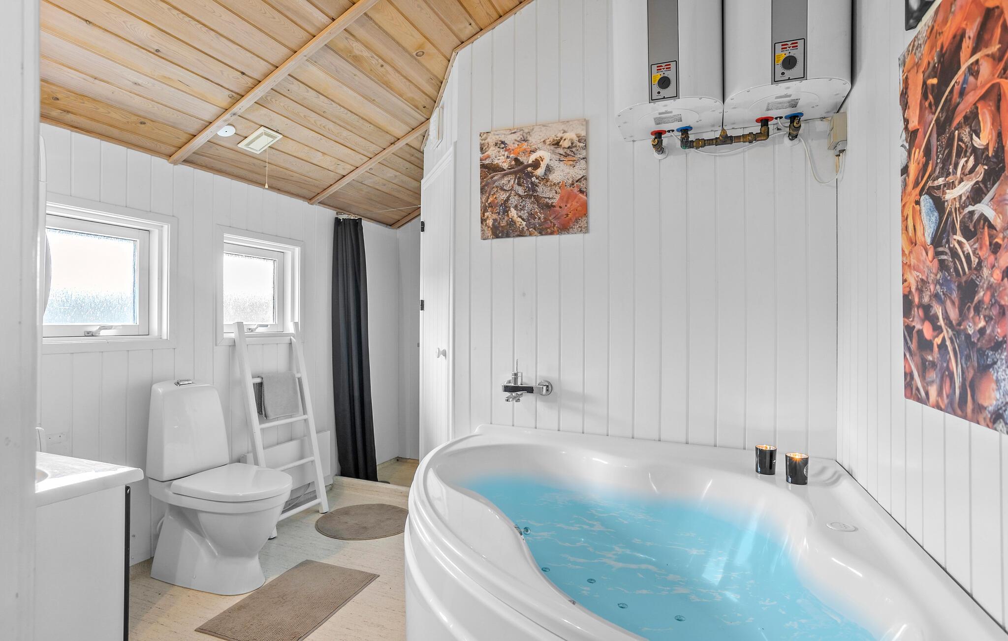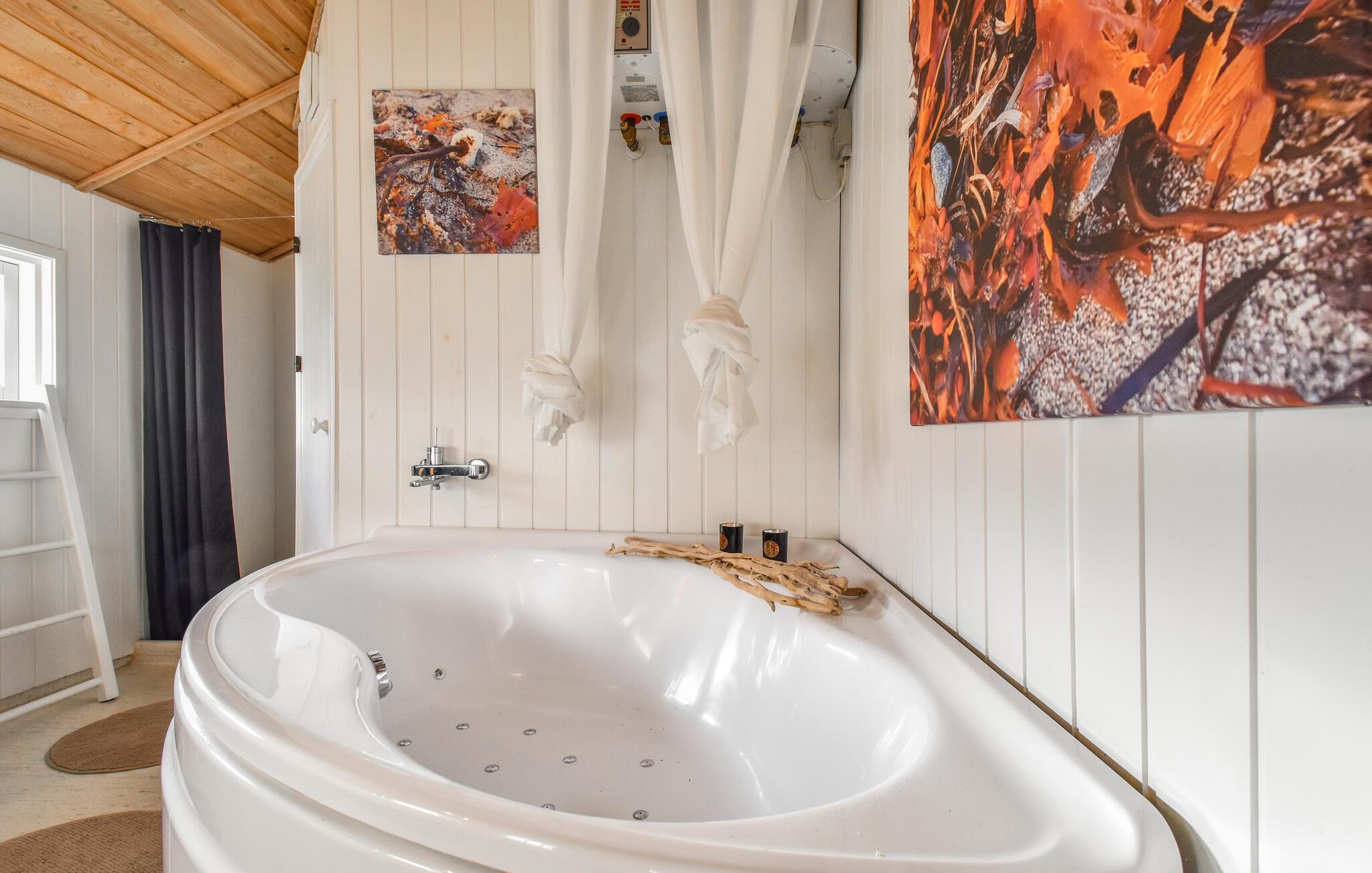 Rust, ontspanning en veel tijd met je familie wachten op je in dit aantrekkelijke vakantiehuis in Taarup Strand. Kom aan en verken de kamers van dit mooie huis, dat je vakantie zal veraangenamen. De mooie en gezellige sfeer creëert de ideale omstandigheden om samen te koken in de keuken of buiten te eten op het gedeeltelijk overdekte terras. Je kunt ook genieten van een ontspannende pauze in de sauna of het bubbelbad en daarna gaan liggen op de ligstoel in de tuin. Het grote gazon nodigt je uit om buiten te spelen met je kinderen en veel vakantieherinneringen te creëren.