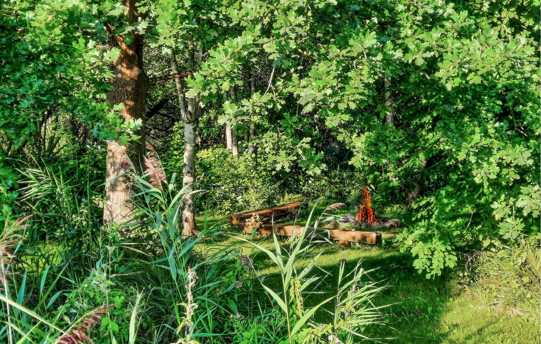 Buiten wacht een groene oase op je, waar je kinderen zorgeloos kunnen spelen en een picknick kunnen organiseren op het goed onderhouden gazon. Serveer het ontbijt op het terras, bak brood op een stokje rond het kampvuur of organiseer een gezellige barbecue op warme zomeravonden.