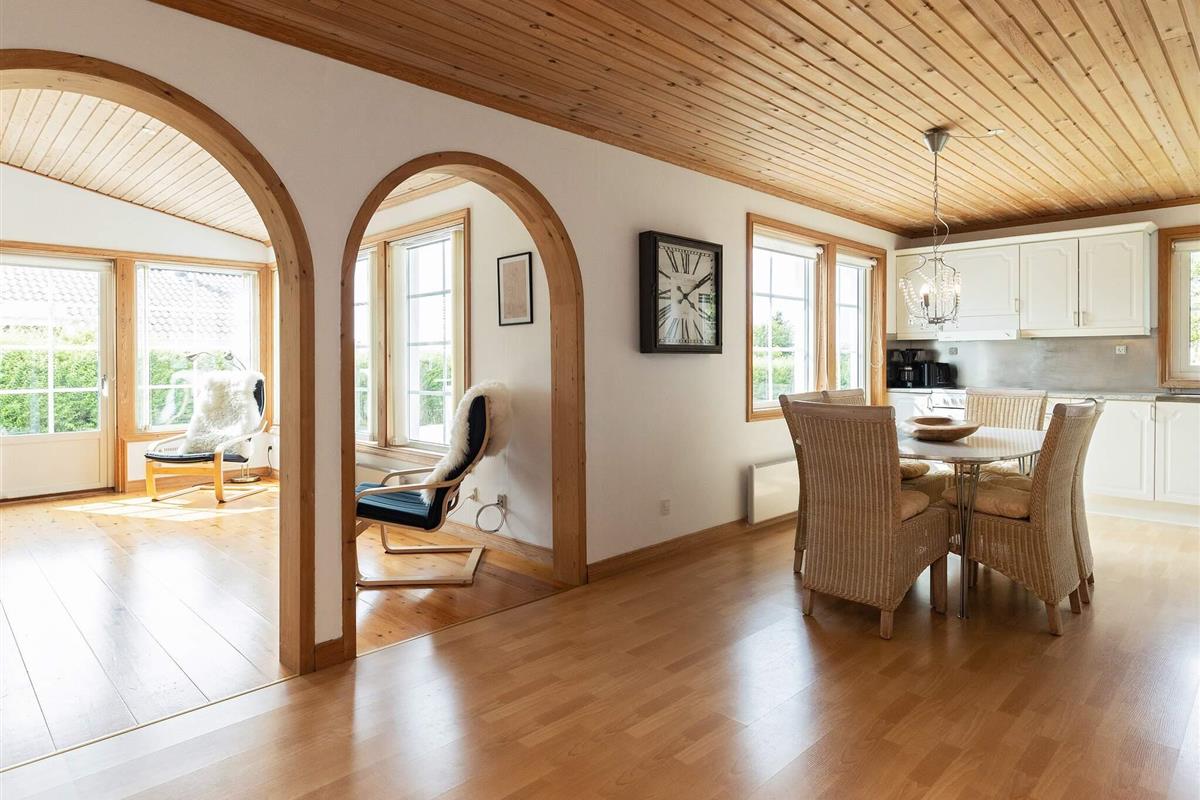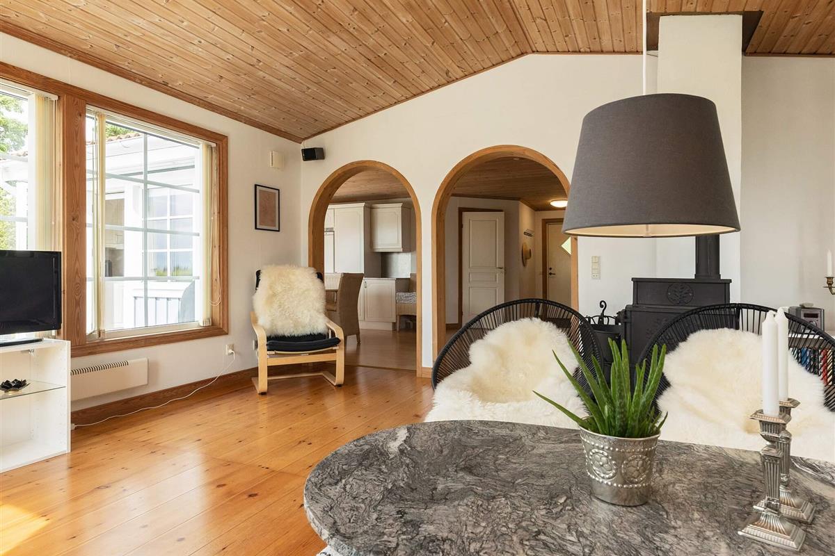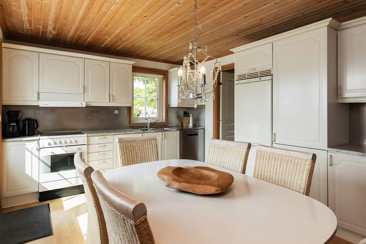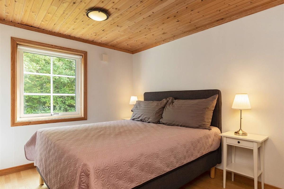 Das Haus wirkt hell und einladend mit Holzböden, komfortablen Möbeln und einer warmen Atmosphäre, in der man sich sofort wie zu Hause fühlt. Das Wohnzimmer öffnet sich direkt zur Terrasse, wo Sie gemütliche Abendessen vor der Kulisse üppigen Grüns und mit ruhigem Blick auf die Lunkebugten-Bucht genießen können. Für zusätzlichen Komfort ist das Badezimmer mit einem Whirlpool für zwei Personen, einer Sauna und einer Dusche ausgestattet – ideal zum Entspannen nach einem Tag im Freien.