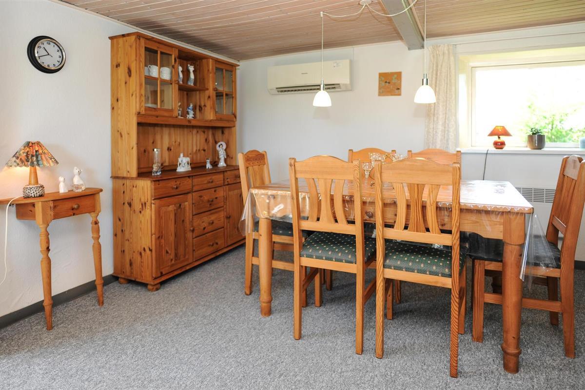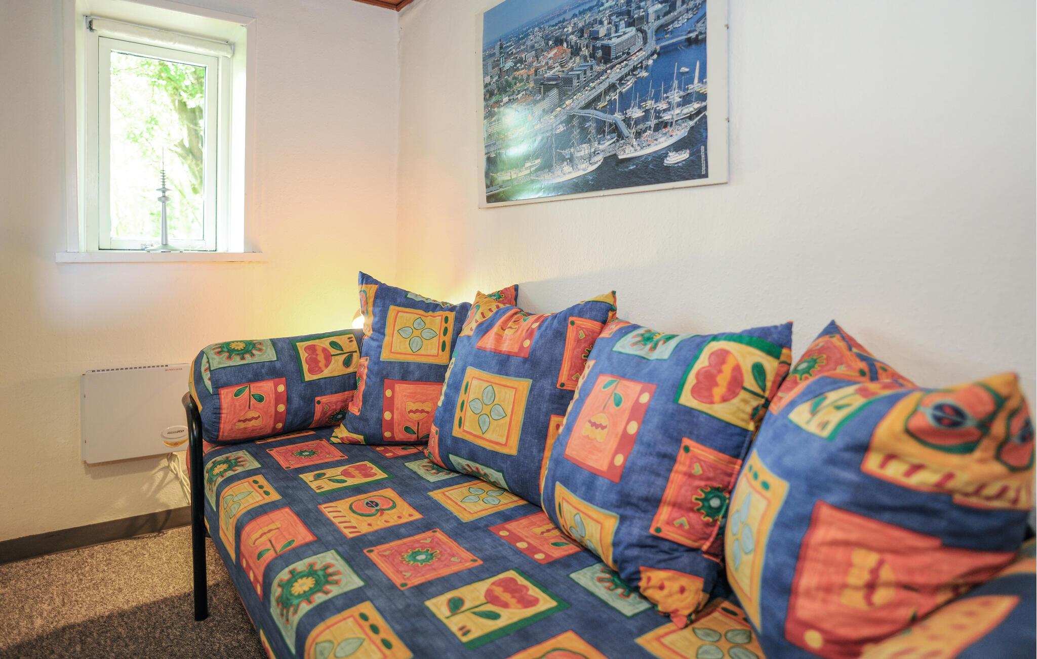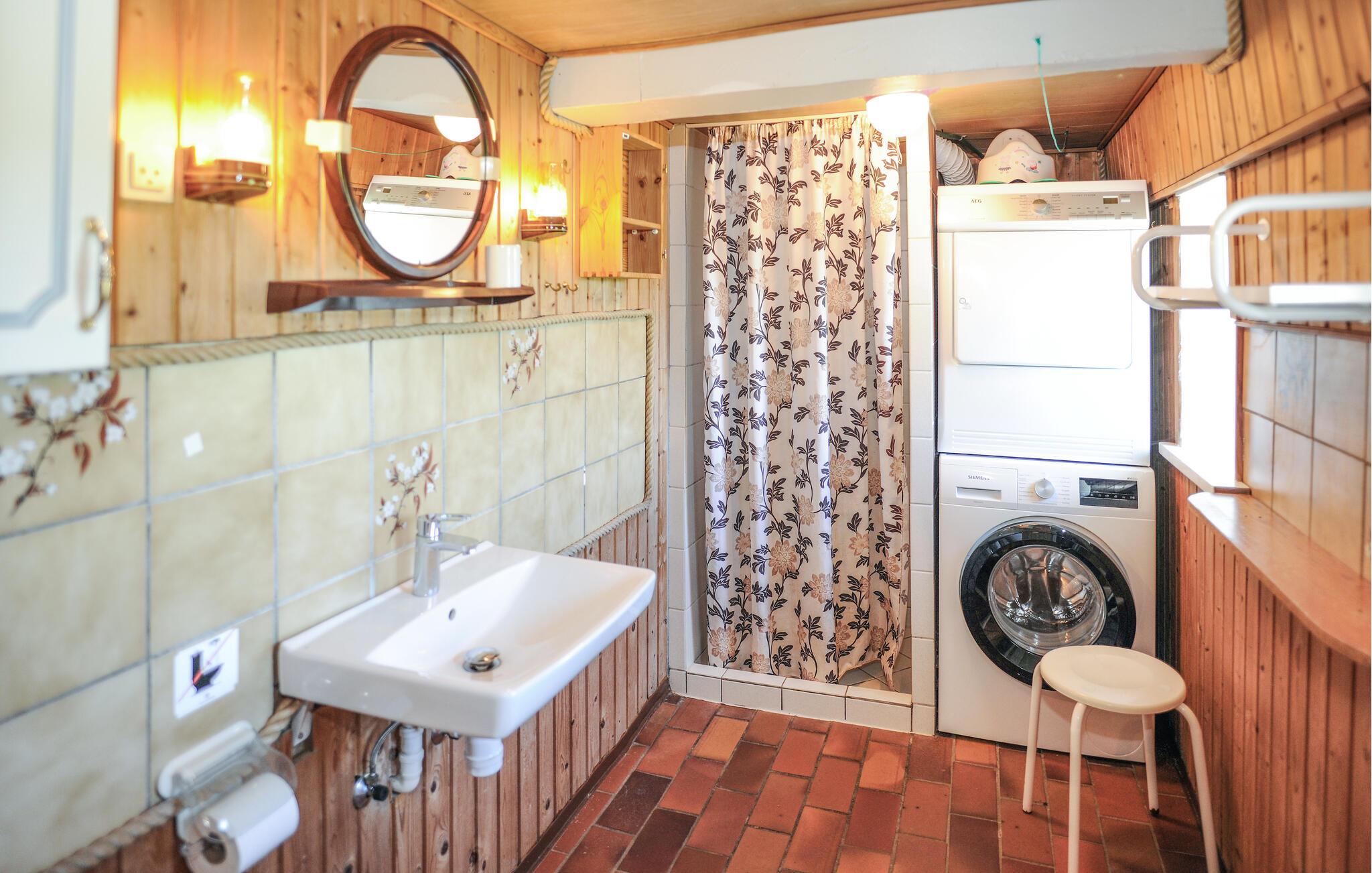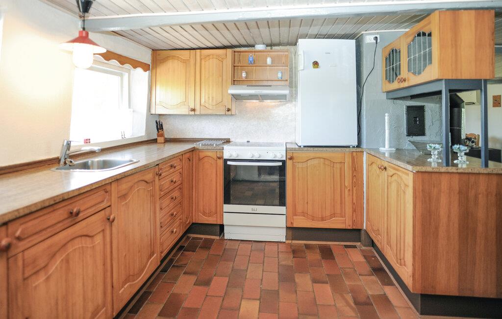 Breng tijd door in het traditioneel ingerichte interieur met veel hout en eenvoudige, gezellige meubels. De gecombineerde woon- en eetkamer is ingericht met comfortabele stoelen, een tv en een grote eettafel. In de aparte keuken met klassieke houten fronten vind je alles wat je nodig hebt om zelf te koken. Profiteer van de rustige sfeer om te ontspannen met een boek of bordspellen.