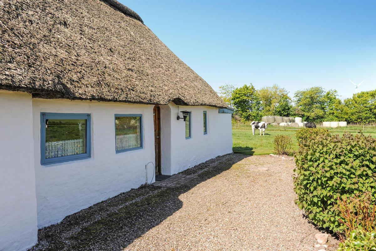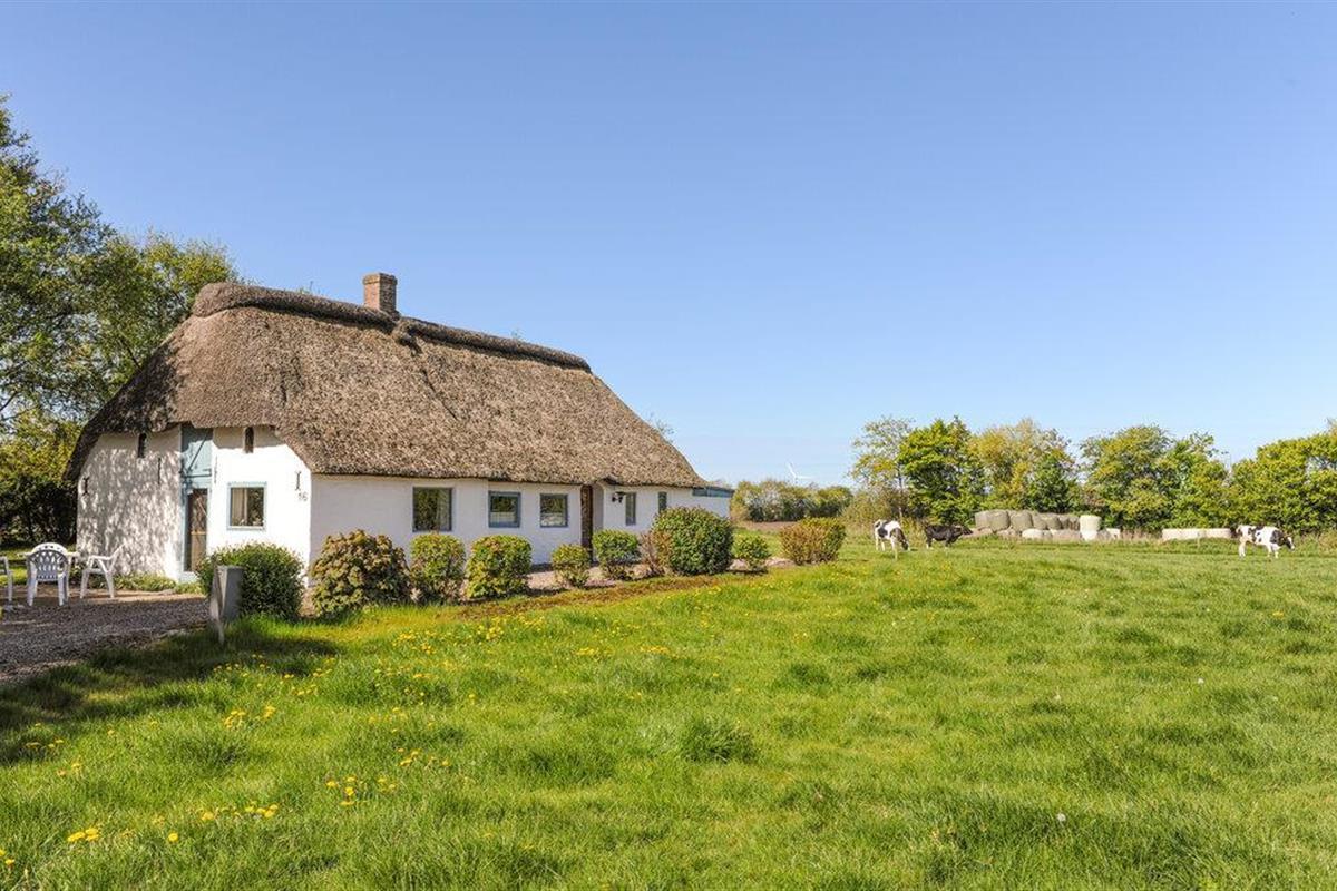 Ontsnap naar een charmant, rieten dak vakantiehuis omgeven door natuur en rust in Bredebro, Denemarken.