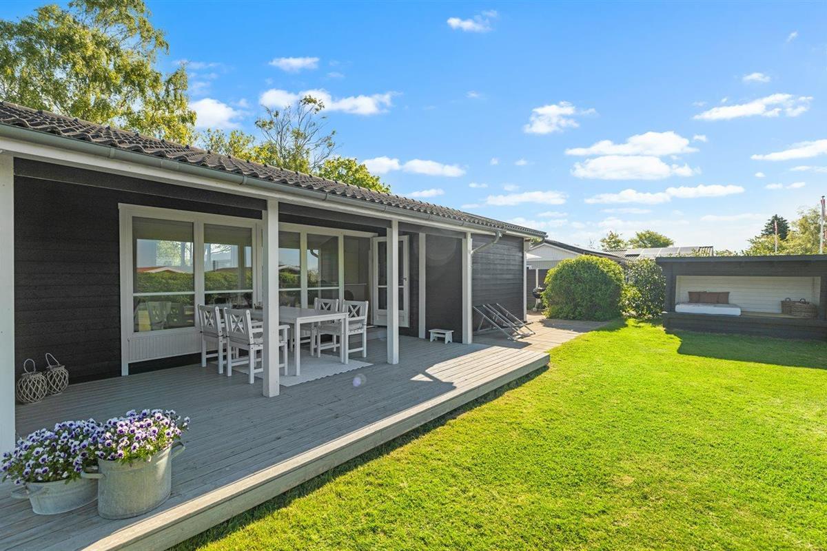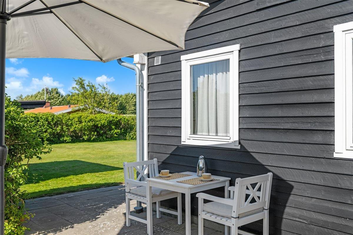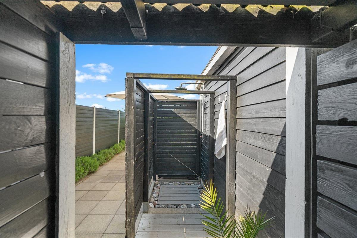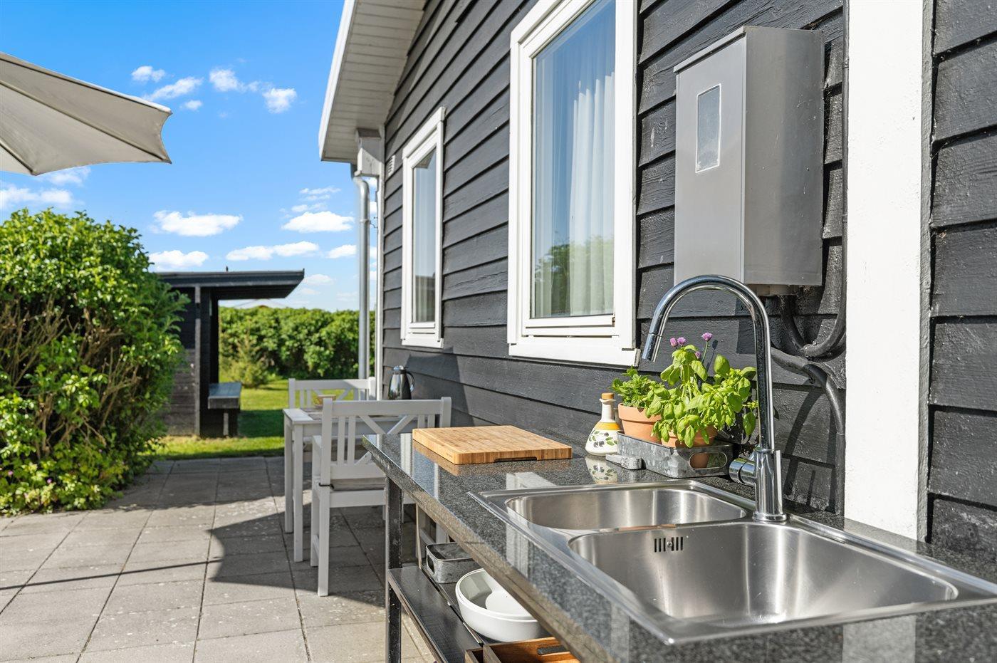 De vakantiewoning is gelegen op een 800 m² groot aangelegde tuin. Afstand tot de zee 140 m. Dichtstbijzijnde winkel 2000 m. Bij de vakantiewoning hoort 40 m² terras. Daarnaast is er een 20 m² groot overdekt terras. Shelter. Buitendouche. U kunt buiten een maaltijd bereiden in de buitenkeuken. Barbecue. Parkeerplaats bij het huis.