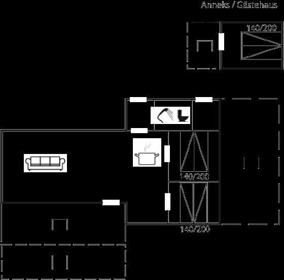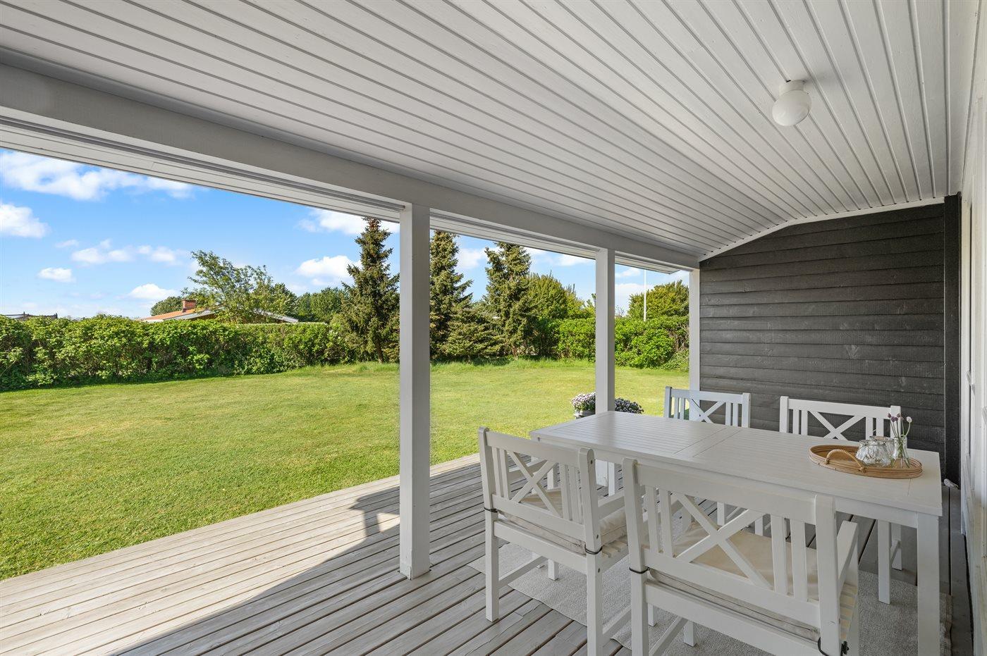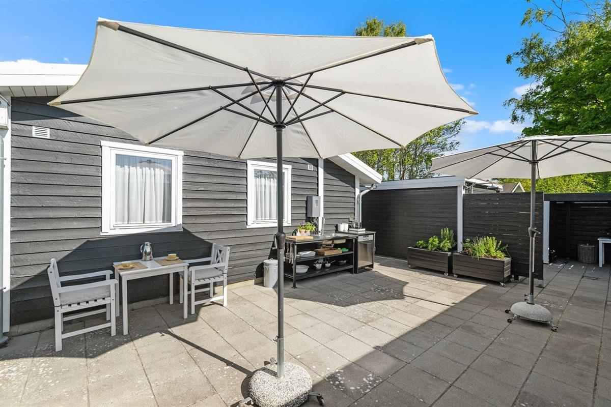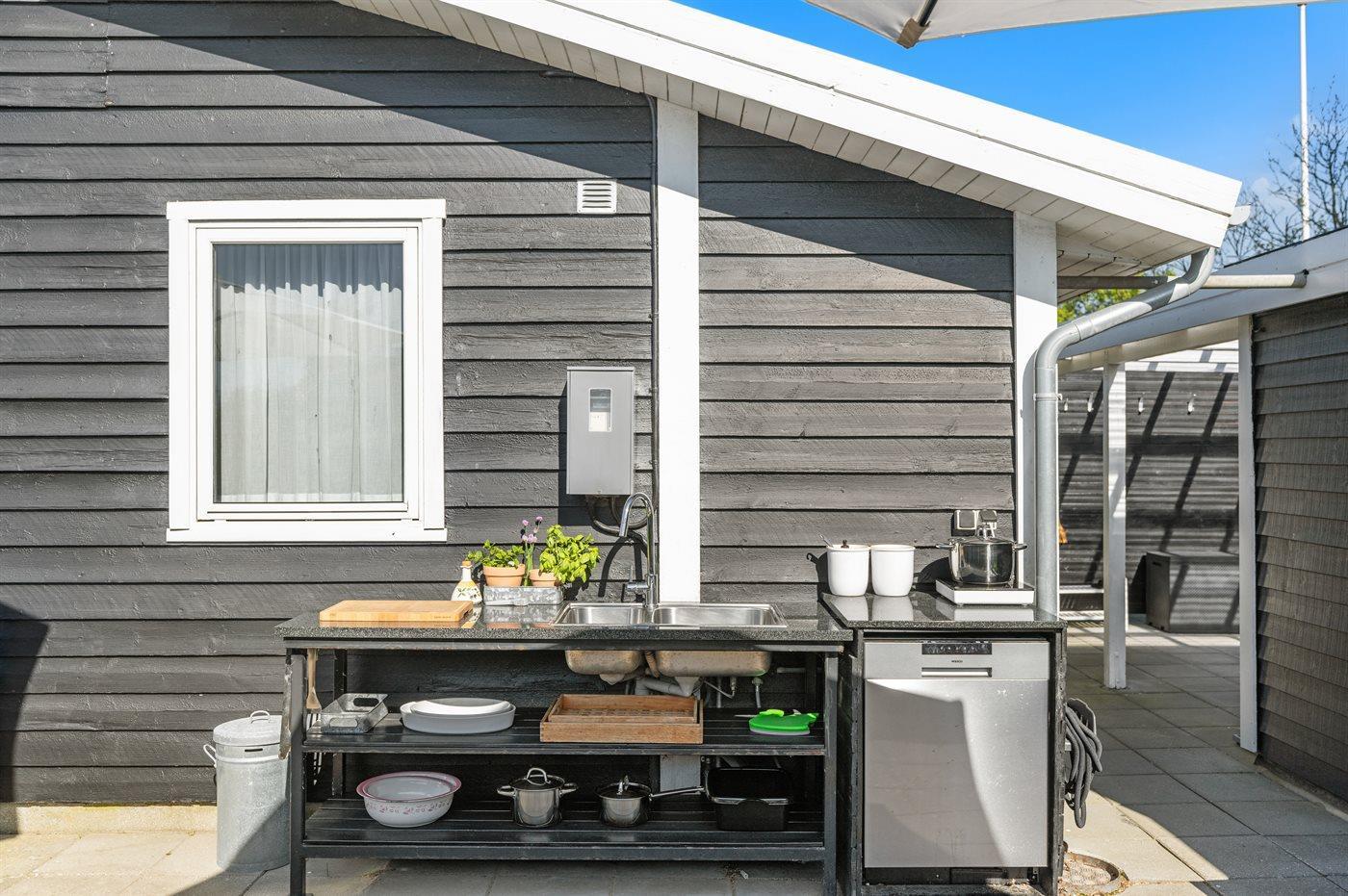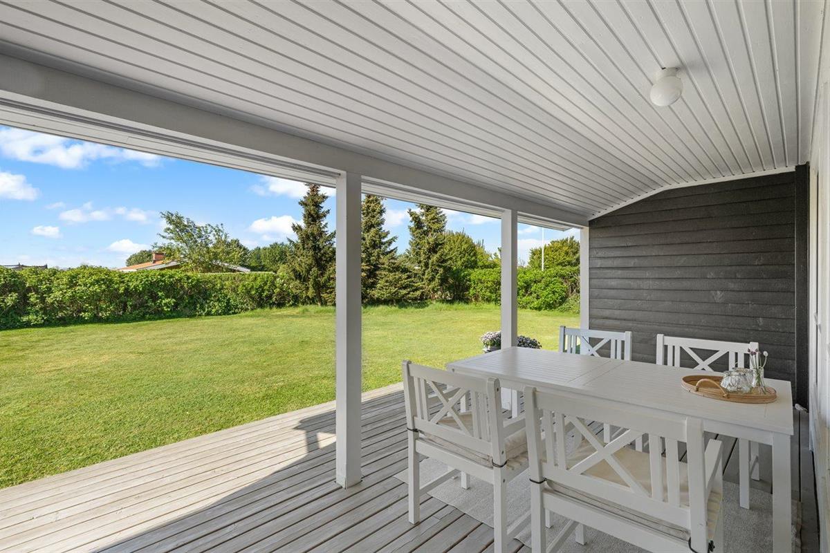 De vakantiewoning is gelegen op een 800 m² groot aangelegde tuin. Afstand tot de zee 140 m. Dichtstbijzijnde winkel 2000 m. Bij de vakantiewoning hoort 40 m² terras. Daarnaast is er een 20 m² groot overdekt terras. Shelter. Buitendouche. U kunt buiten een maaltijd bereiden in de buitenkeuken. Barbecue. Parkeerplaats bij het huis.