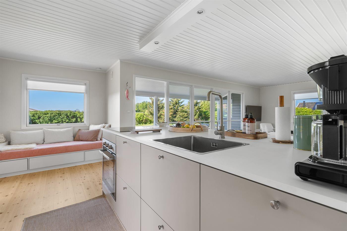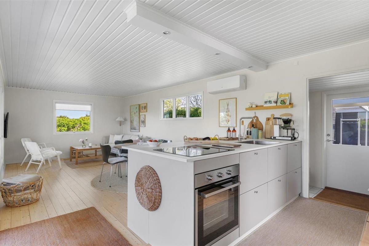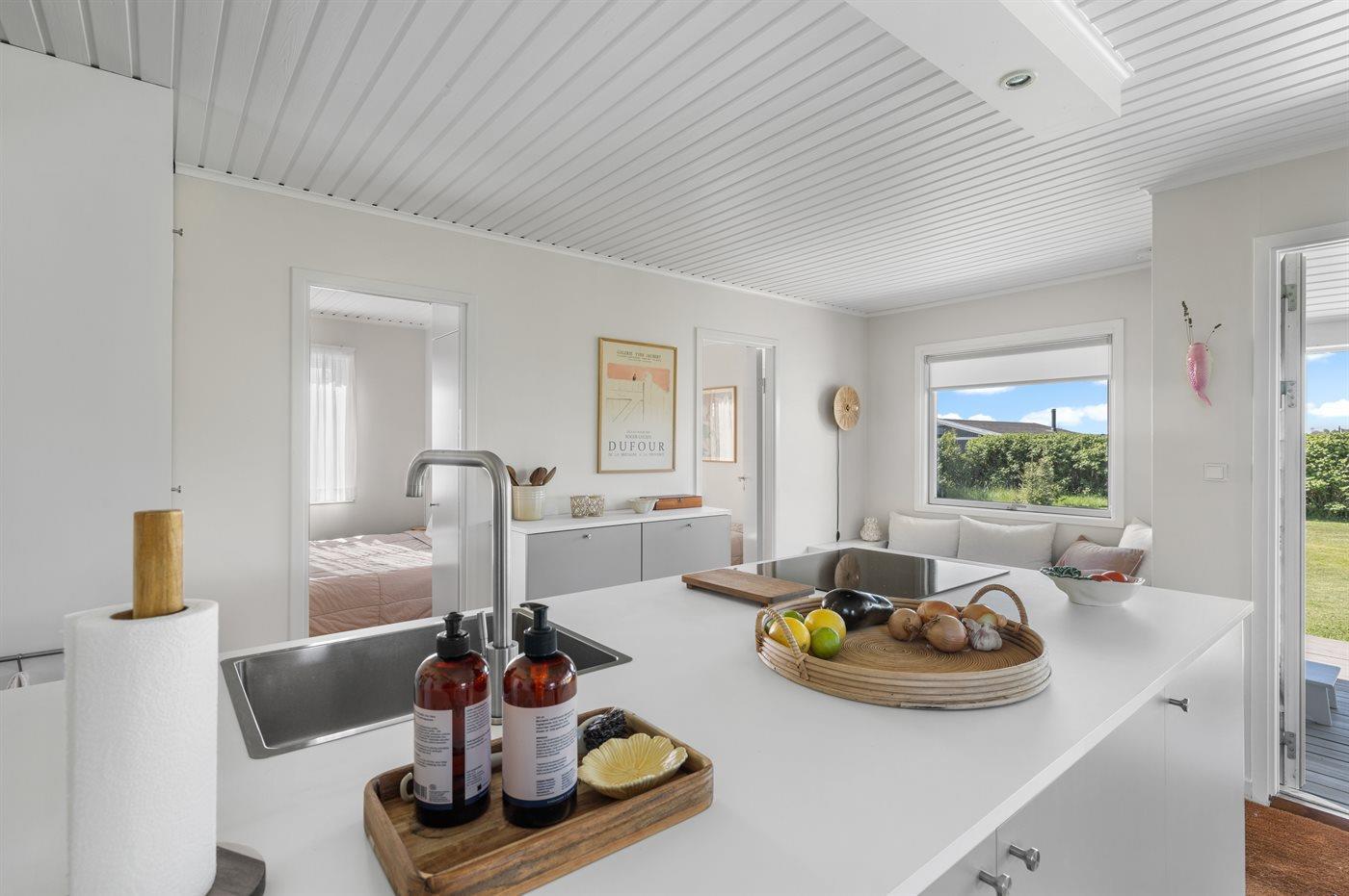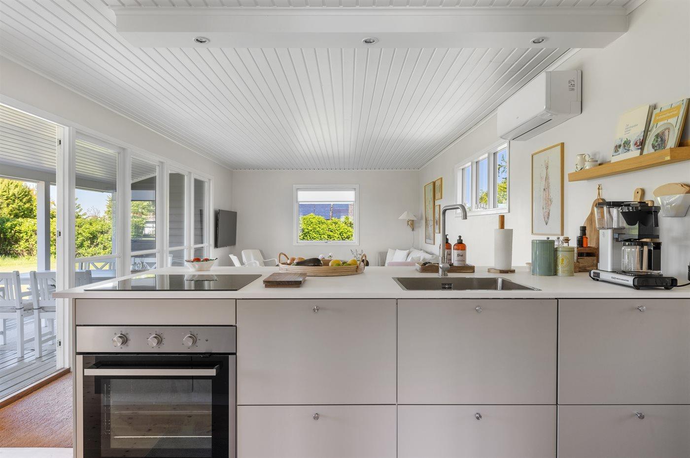 De keuken is uitgerust met koelkast Er is 4 inductiekookplaten, heteluchtoven en vaatwasser.