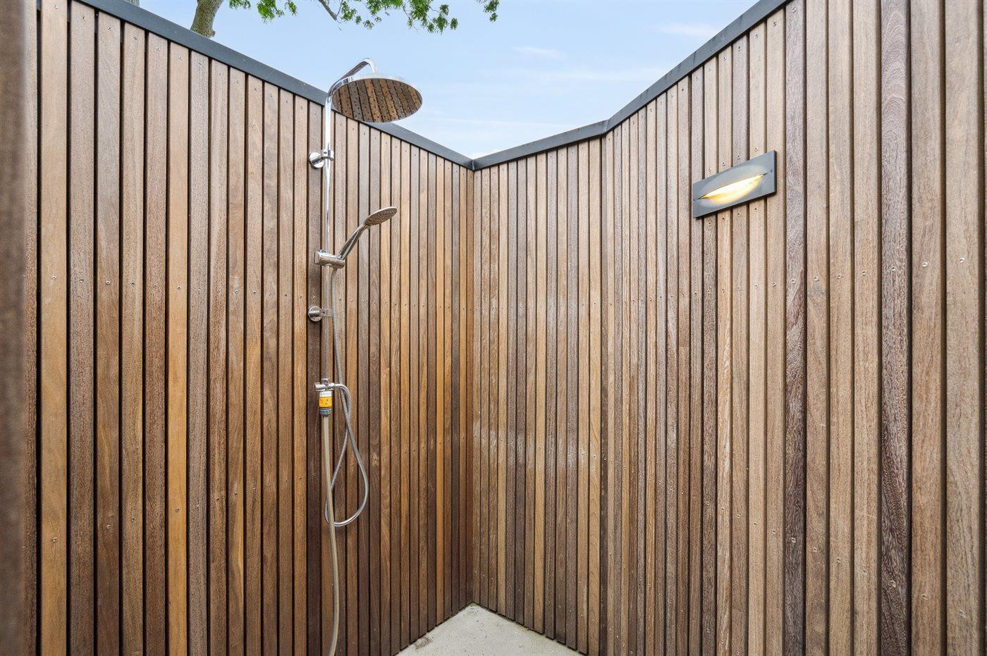 De vakantiewoning is gelegen op een 1213 m² groot aangelegde tuin. Afstand tot de zee 10 m. Dichtstbijzijnde winkel 2100 m. Bij de vakantiewoning hoort terras. Daarnaast is er een overdekt terras.Vuurplaats. Buitendouche. Barbecue. Parkeerplaats bij het huis.