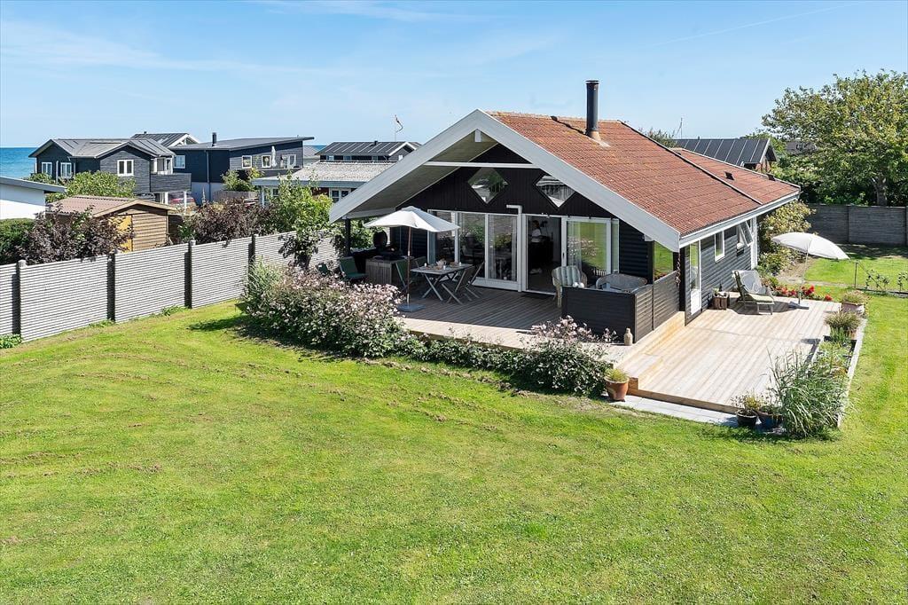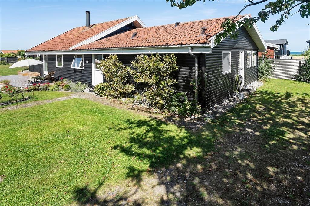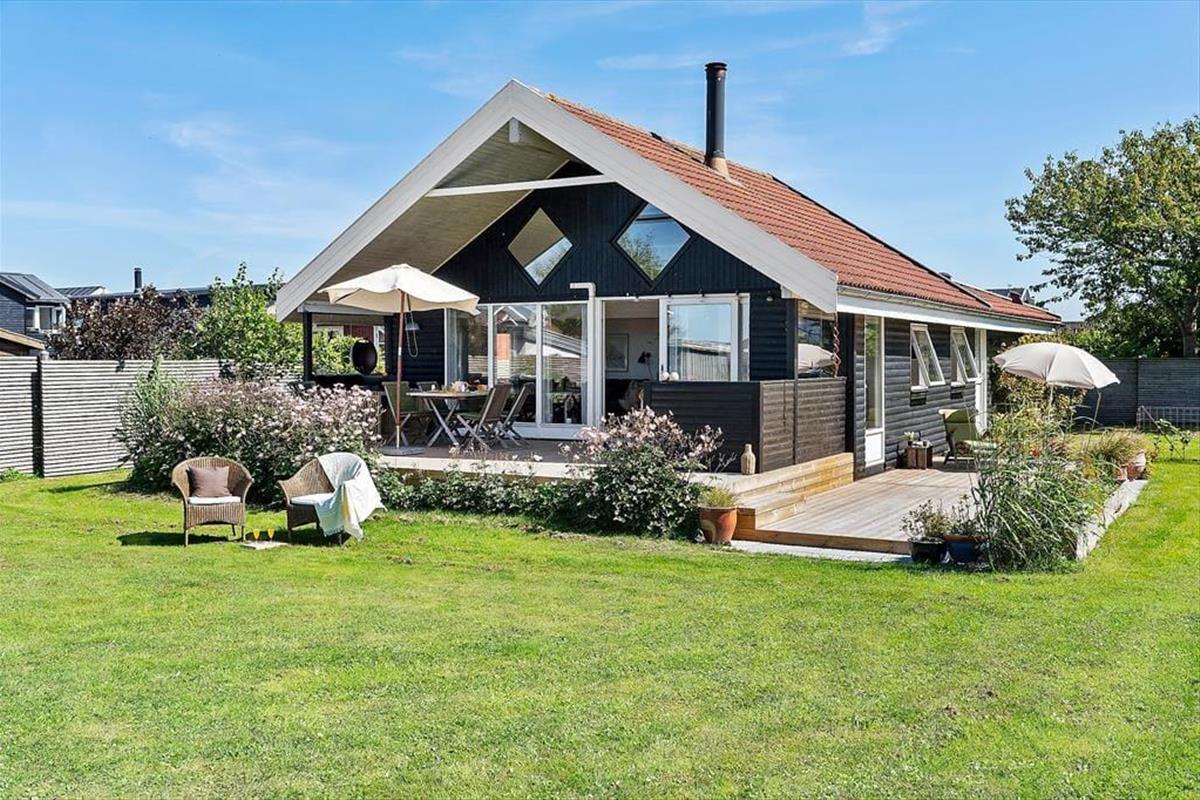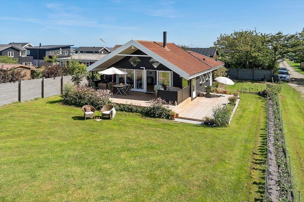 There are good fishing opportunities on the kilometer-long beach. This house is located at the end of closed road. The holiday home is equipped with three bedrooms (two with double beds and one with two single beds), and in addition there are two good mattresses on the rather large loft. Finally, there is a double sofa bed in the extension of the open kitchen. There are two bathrooms with underfloorheating, each with shower and toilet. In the hallway you will find the washing machine. The open kitchen is equipped with a ceramic stove and convection oven, furthermore there is a toaster, electric kettle, coffee machine and dishwasher. Large fridge / freezer (100 liter). From the living room there is direct access to the large, west-facing terrace (half covered) with patio furniture and stunning sunsets. Barbecue available. Large lawn. Between the living room and the kitchen a living room with TV (Danish, Norway., Svensk and German programs) and free wireless fiber network, which covers the entire house. The house has a wood stove, electric radiators and an energy-saving heat pump. There is enough space for three cars on the plot. Non-smoking house.