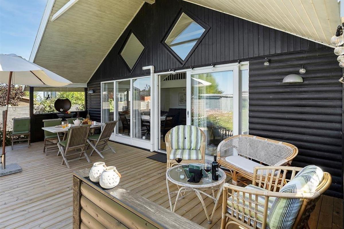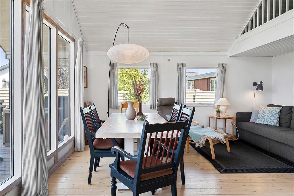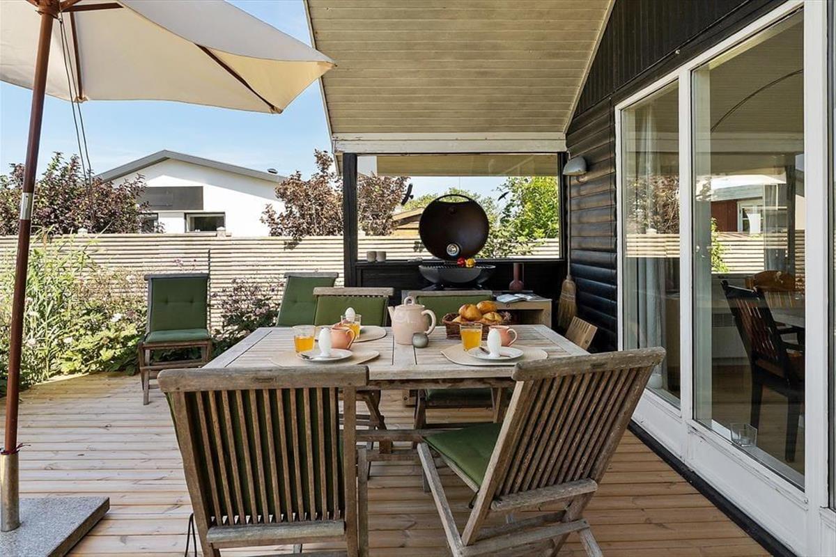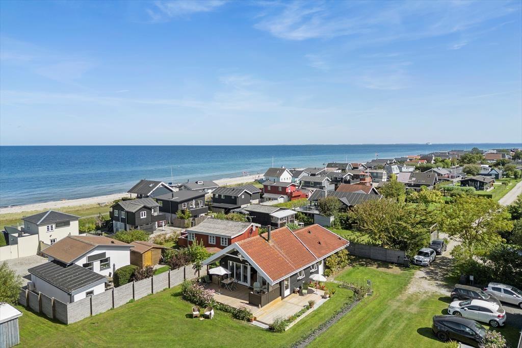 There are good fishing opportunities on the kilometer-long beach. This house is located at the end of closed road. The holiday home is equipped with three bedrooms (two with double beds and one with two single beds), and in addition there are two good mattresses on the rather large loft. Finally, there is a double sofa bed in the extension of the open kitchen. There are two bathrooms with underfloorheating, each with shower and toilet. In the hallway you will find the washing machine. The open kitchen is equipped with a ceramic stove and convection oven, furthermore there is a toaster, electric kettle, coffee machine and dishwasher. Large fridge / freezer (100 liter). From the living room there is direct access to the large, west-facing terrace (half covered) with patio furniture and stunning sunsets. Barbecue available. Large lawn. Between the living room and the kitchen a living room with TV (Danish, Norway., Svensk and German programs) and free wireless fiber network, which covers the entire house. The house has a wood stove, electric radiators and an energy-saving heat pump. There is enough space for three cars on the plot. Non-smoking house.