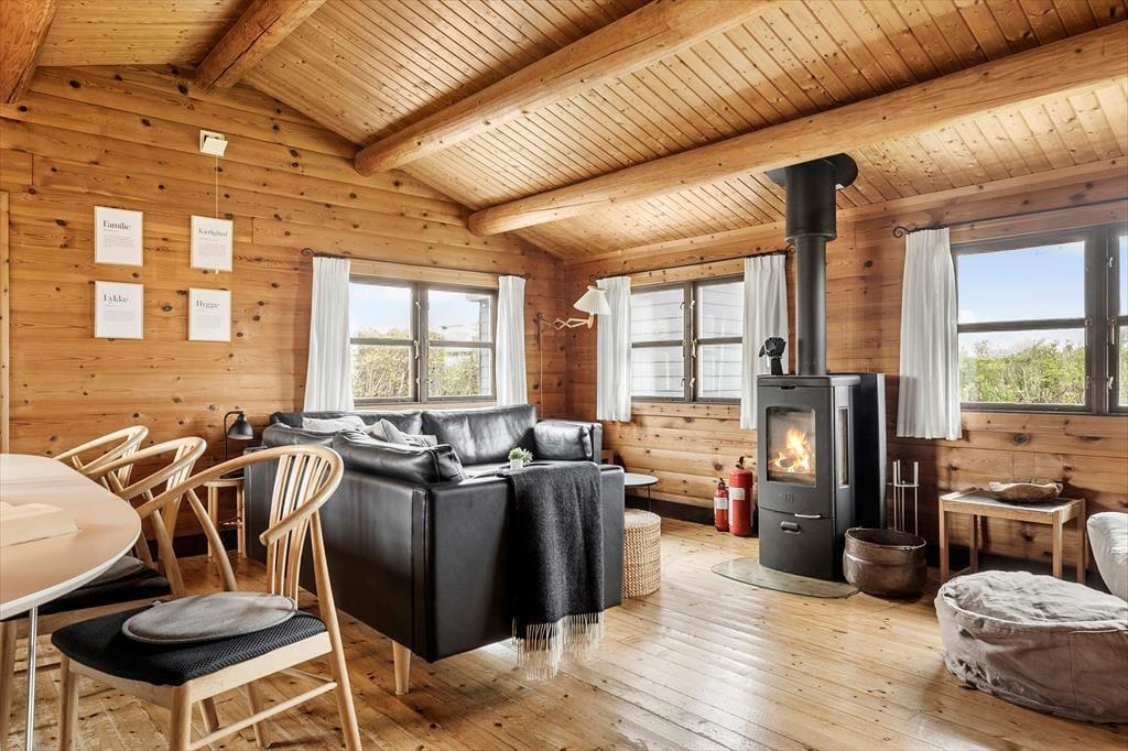 Dieses schöne, aus guten Materialien errichtete Holzferienhaus mit Platz für 6 Personen ist ansprechend eingerichtet. Es beinhaltet einen gemütlichen Wohnraum, in dem Sie sich vor dem knisternden Kaminofen entspannen können. Die gut ausgestattete Küche verfügt unter anderem über einen Geschirrspüler, eine Waschmaschine und einen Essplatz. Drei gute Schlafräume und ein Badezimmer mit einer Dusche, einer Sauna und einer Fußbodenheizung stehen ebenfalls für Sie bereit.