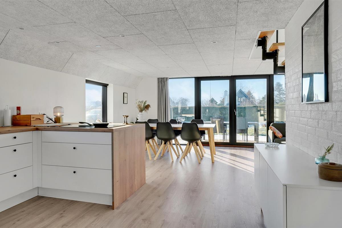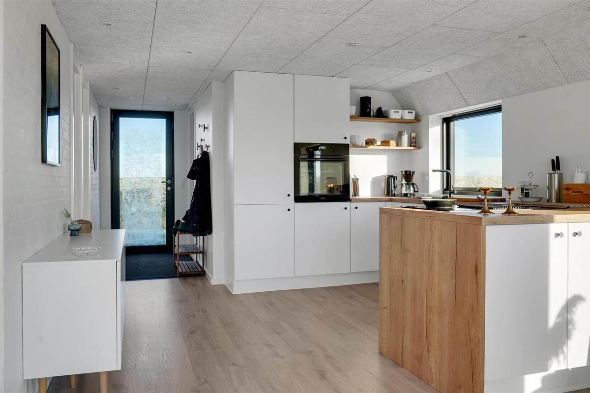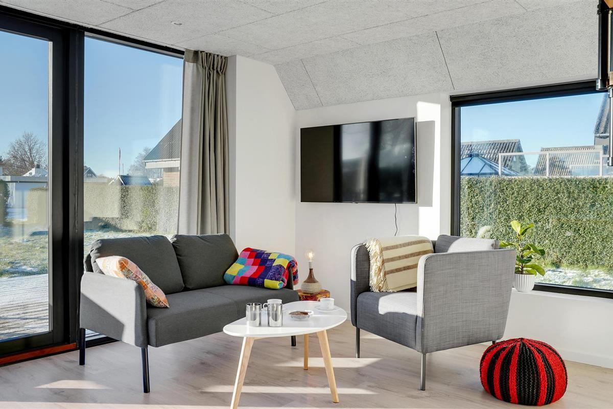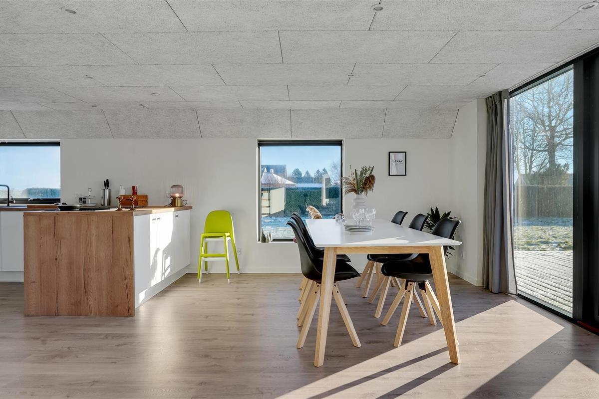 Aan de noordkust van Funen heet dit moderne en comfortabele vakantiehuis u welkom. De grote ramen geven u niet alleen een fantastisch uitzicht op de zee, maar ook veel natuurlijk licht verlicht het huis en geeft het een huiselijke sfeer. U vindt hier alles wat u nodig heeft voor een ontspannende vakantie aan zee. Breng gezellige avonden door in de open woonkamer, waar u samen in de keuken de pollepel kunt zwaaien, een goede film kunt kijken of samen kunt kaarten.