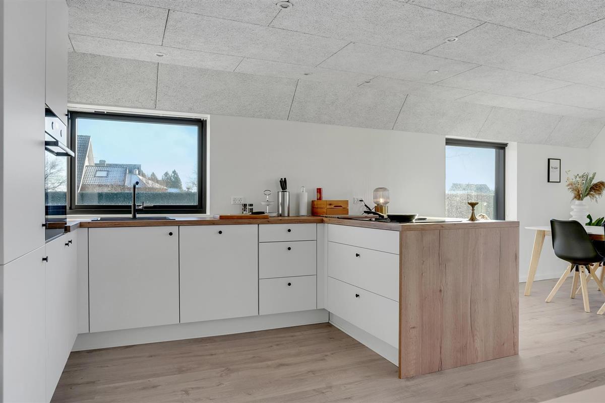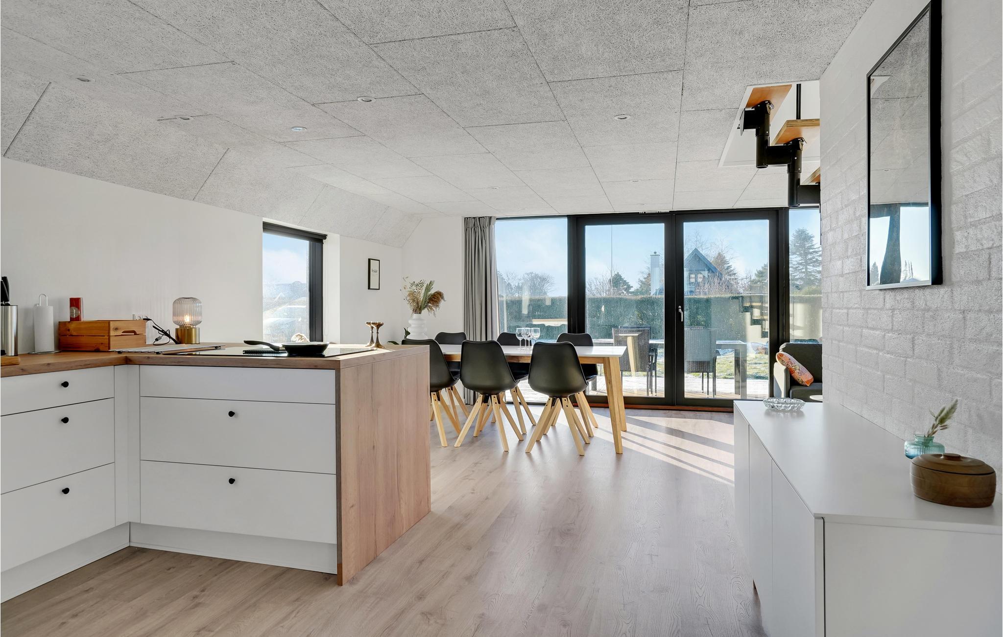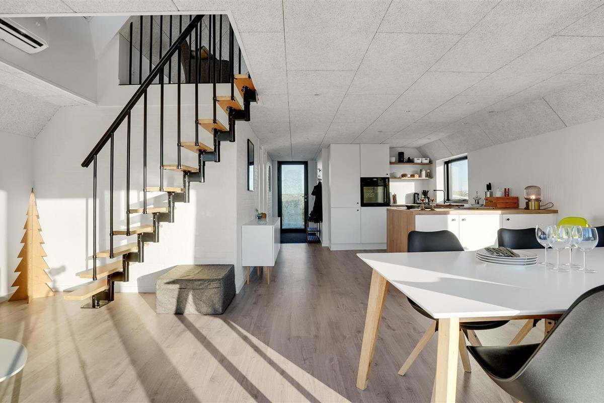 Aan de noordkust van Funen heet dit moderne en comfortabele vakantiehuis u welkom. De grote ramen geven u niet alleen een fantastisch uitzicht op de zee, maar ook veel natuurlijk licht verlicht het huis en geeft het een huiselijke sfeer. U vindt hier alles wat u nodig heeft voor een ontspannende vakantie aan zee. Breng gezellige avonden door in de open woonkamer, waar u samen in de keuken de pollepel kunt zwaaien, een goede film kunt kijken of samen kunt kaarten.