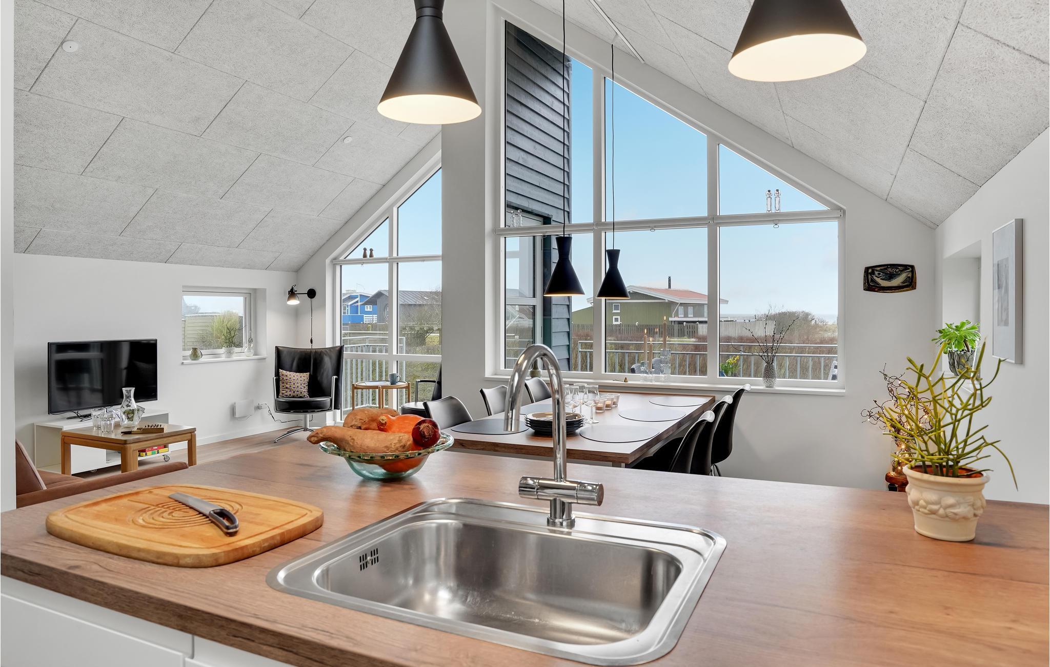 Het comfortabele huis verwelkomt u op een zeer goede locatie in de eerste rij naar het strand. De lichte kamers zijn de ideale setting voor een heerlijke tijd samen, moderne meubels en vriendelijke kleuren zorgen voor een huiselijke sfeer. Alles in het huis is zo ontworpen dat u optimaal kunt genieten van het prachtige uitzicht. Ontspan op de comfortabele bank en laat uw ogen dwalen over de zee door het grote raam aan de voorkant. Ook tijdens de gezamenlijke maaltijden kunt u van dit prachtige decor genieten.