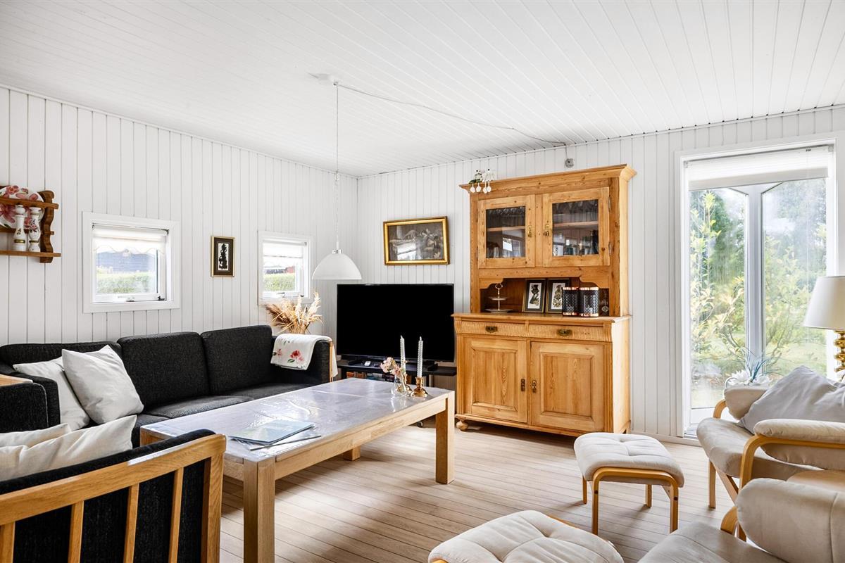 Gezellig vakantiehuis aan het rustige strand van Tørresø met tuin, terras en moderne voorzieningen voor een ontspannen familieverblijf.