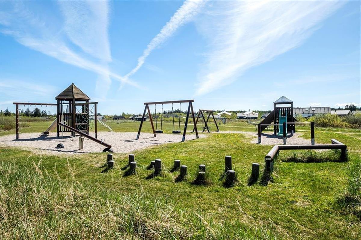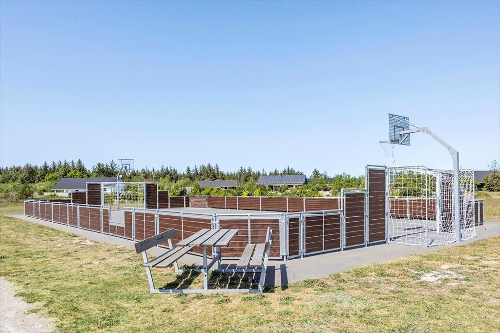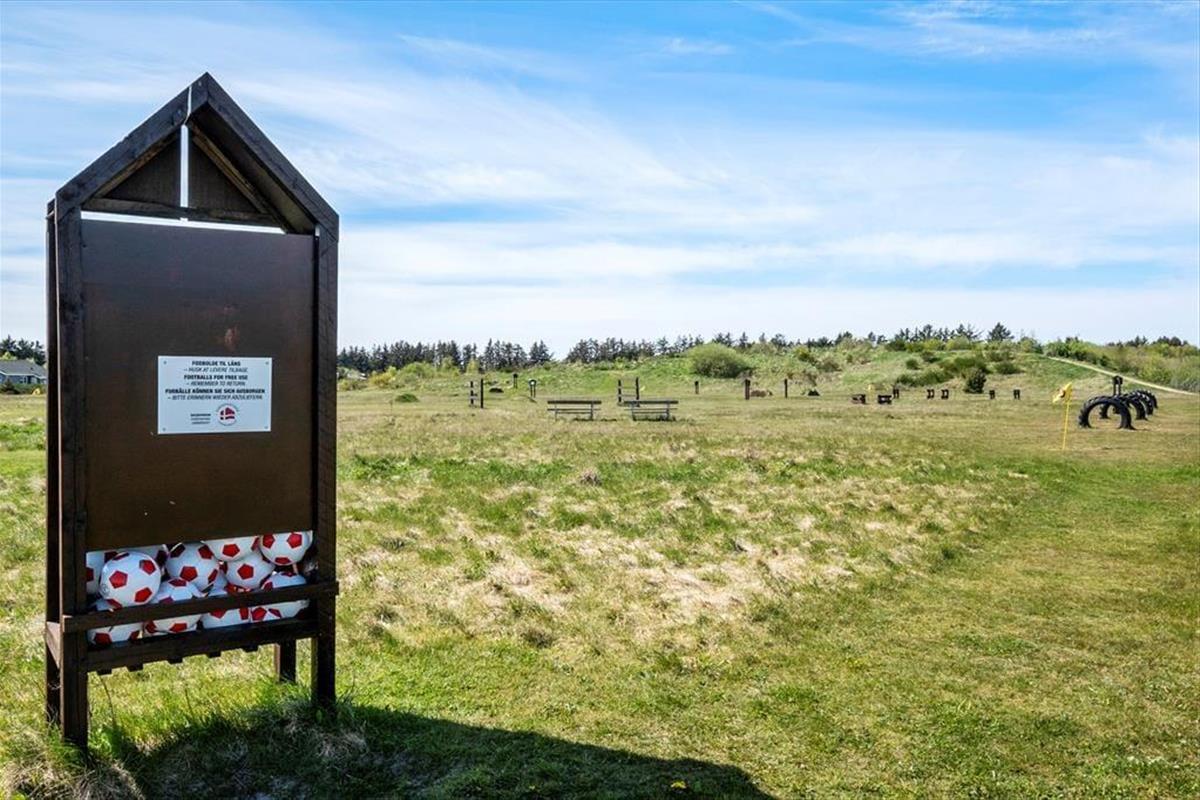 Das Ferienhaus liegt in einer einzigartigen Umgebung, in der das gemeinschaftlich nutzbare Areal eine große Rolle spielt. Hier ist es möglich, einen aktiven Urlaub zu gestalten, welcher für alle Generationen etwas zu bieten hat. Sie können hier zwischen folgenden Aktivitäten wählen; Fußballgolf (9 Löcher) sowie einer 2022 neu angelegten Minigolfanlage, einem Krocketfeld und Disc Golf. Es gibt Möglichkeiten zum Fußballspielen sowohl auf dem Rasen als auch auf dem Street-Soccer-Feld, auf dem auch Basketballnetze zu finden sind. Ebenfalls stehen ein Beachvolleyballfeld sowie verschiedene Fitnesstrainer zu Ihrer Verfügung. Für die kleinen Gäste gibt es einen großen Sandkasten, Schaukeln, einen Spielturm, eine Rutsche, ein Spielhaus, eine Seilbahn, einen Schwebebalken, ein Kletternetz und eine Wippe. Nach einem aktiven Tag können Sie in der Grillhütte oder am Lagerfeuer entspannen oder einen abendlichen Spaziergang machen. Das Areal bietet viele Wander- und Fahrradwege, die Ihnen die Möglichkeit geben, die Umgebung zu erkunden.
