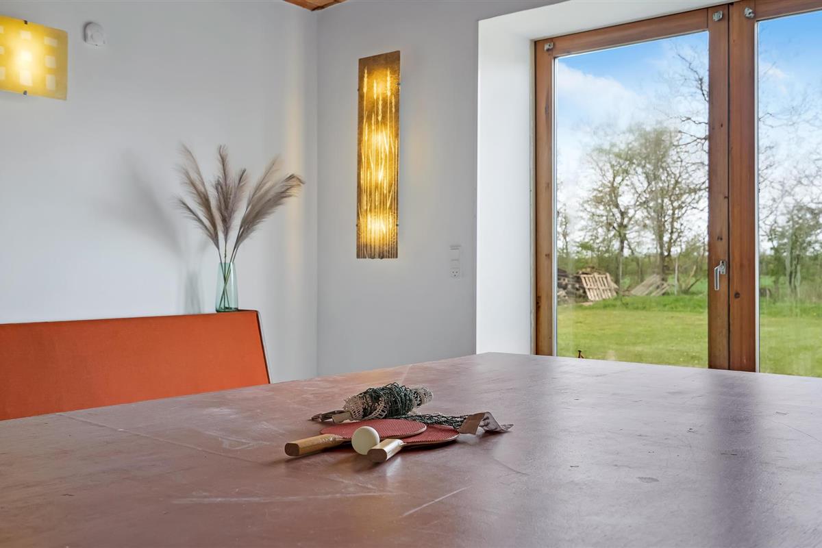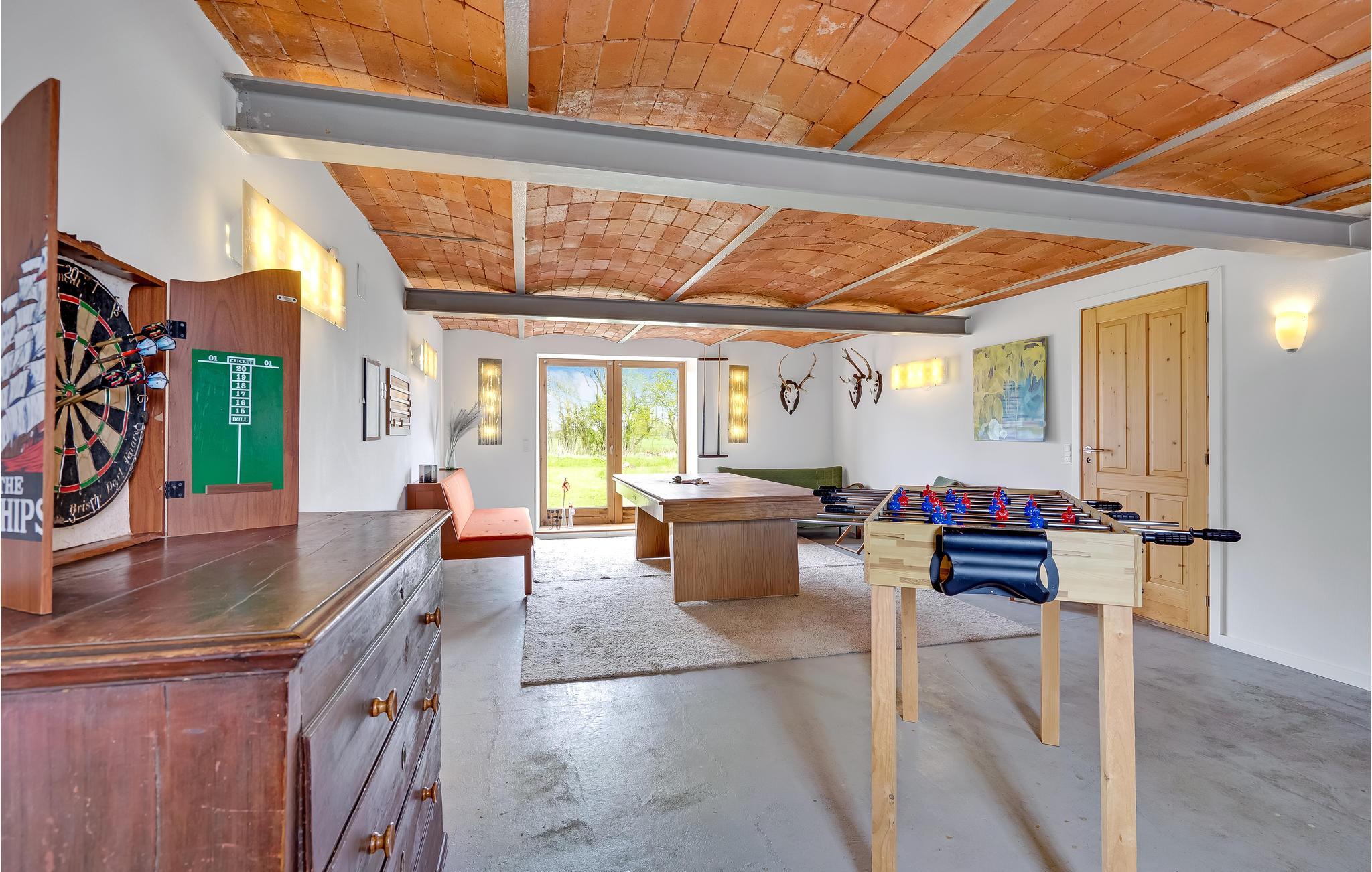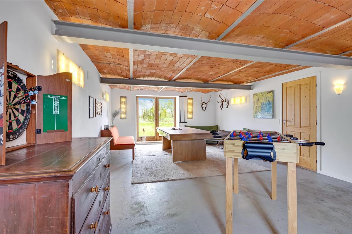 Welkom in dit ruime vakantiehuis dat jou en je geliefden verwelkomt. Hier kun je je thuis voelen en de mogelijkheden van de accommodatie ontdekken. Kijk uit naar gezamenlijke kook-, spelletjes- en filmavonden en maak gebruik van de spelletjes in de activiteitenruimte. Daag jezelf uit met biljart, tafeltennis, tafelvoetbal en darts en geniet van de tuin van het vakantiehuis. De ogen van je kinderen zullen oplichten bij het zien van de schommels, glijbaan en trampoline. Je hebt ook de mogelijkheid om de nachten door te brengen in je eigen schuilplaats en 's avonds rond het kampvuur te zitten en te genieten van de sterrenhemel.