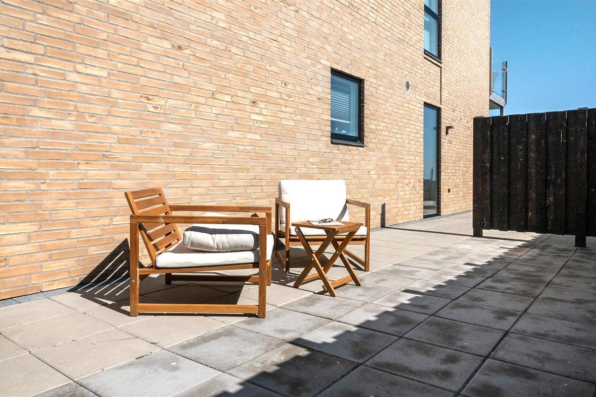 Buiten wacht een uitnodigend terras op je, waar je kunt genieten van de frisse zeebries en het prachtige uitzicht. Dankzij de nabijheid van de zee heb je alle gelegenheid voor verfrissende zwemtochten en ontspannende wandelingen langs de kust.