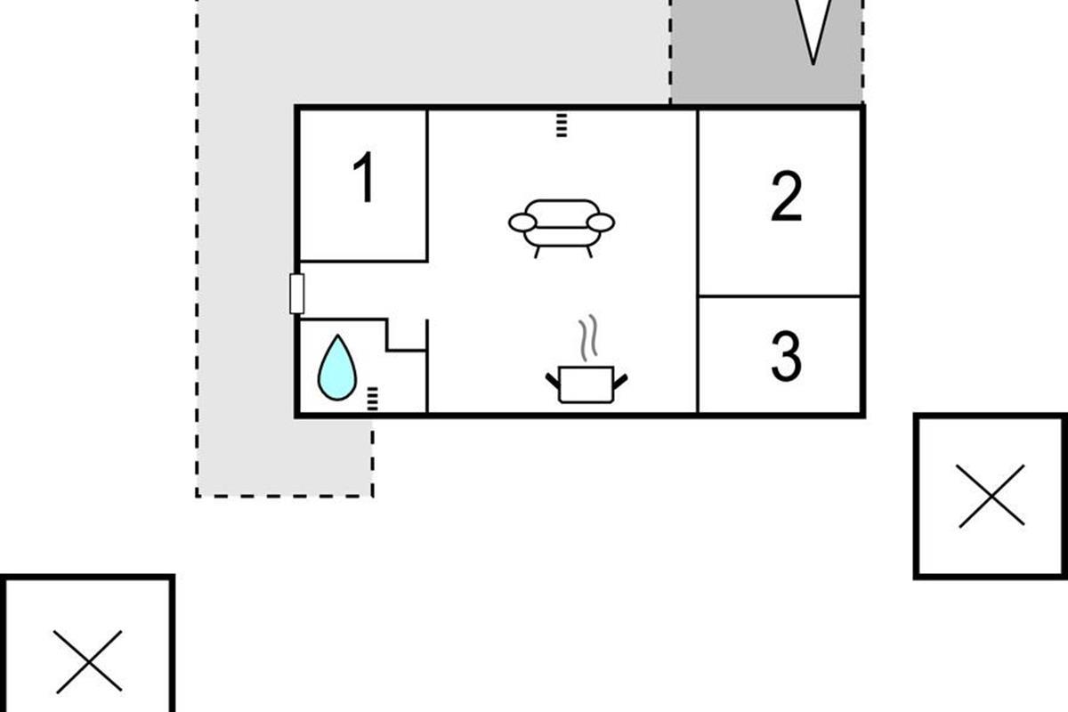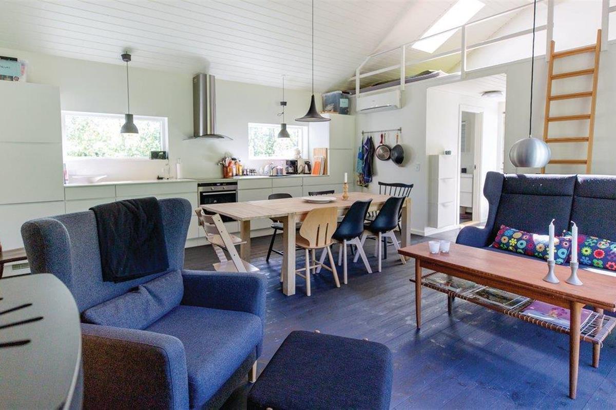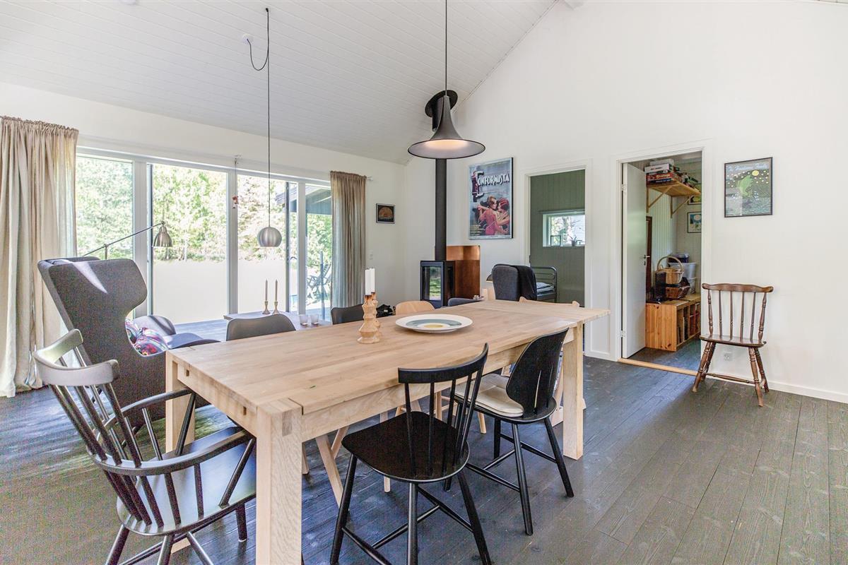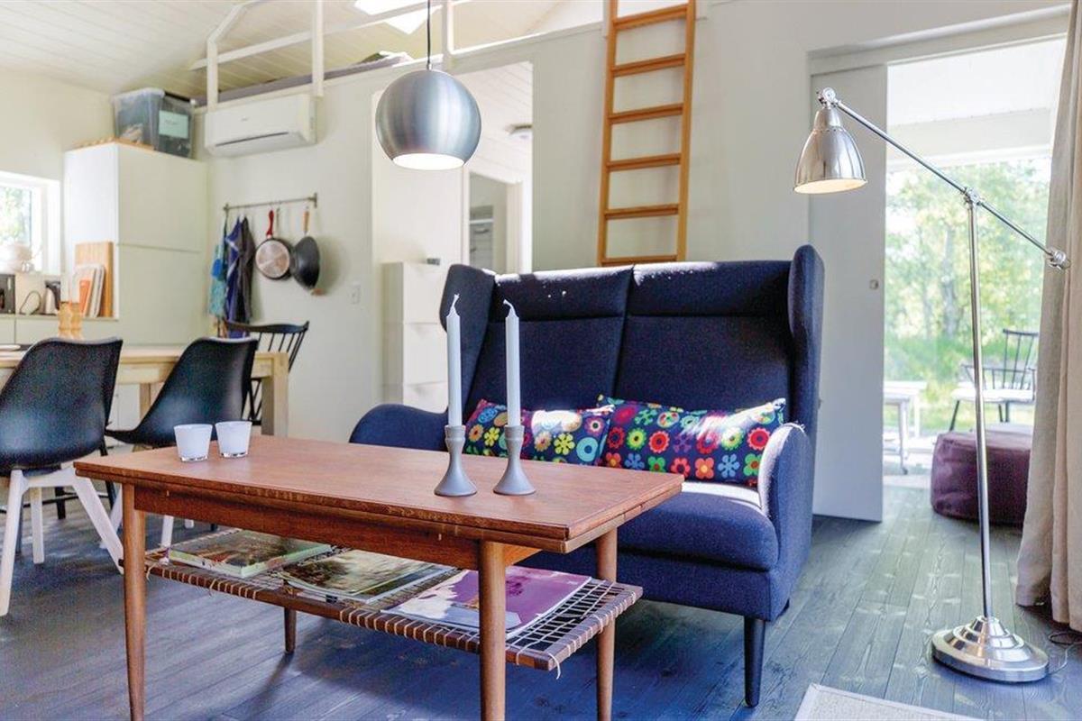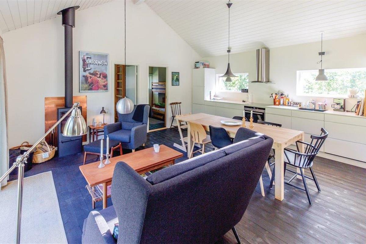 Er is een open terras voor de keuken-woonkamer met houtkachel. Een overdekt terras zorgt voor extra schaduw. Badkamer met douche, als het te warm wordt in de zon is er ook een buitendouche. Voor het streamen van tv-zenders sluit u de PlayStation aan op de flatscreen-tv.