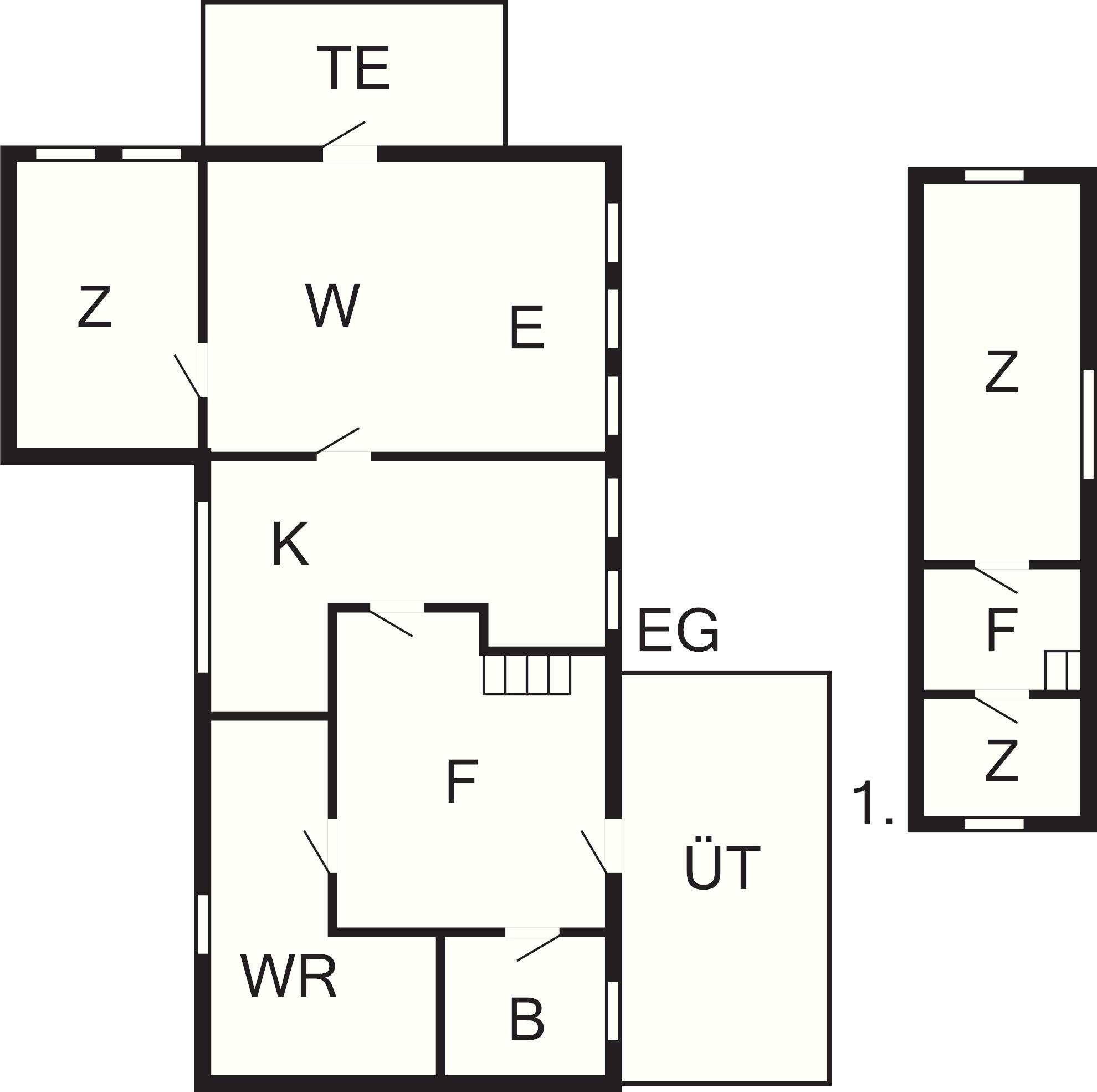 Bad: WC, Waschb., Dusche, Fußbodenheiz.