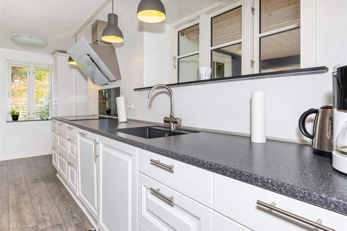 Charmante Stadtvilla in Østerild, in der Nähe von Thisted, ideal für Familien oder kleine Gruppen, die ein komfortables und gut ausgestattetes Zuhause suchen. Das Erdgeschoss verfügt über eine moderne Küche mit Geschirrspüler und großzügiger Arbeitsfläche – ideal zum Zubereiten von Mahlzeiten. Angrenzend befindet sich ein heller Essbereich, der ein einladendes Plätzchen für gemeinsame Mahlzeiten bietet. Im gemütlichen Fernsehzimmer mit WLAN und Chromecast können Sie entspannen, Ihre Lieblingssendungen streamen oder einen Filmabend mit der Familie genießen. Große Fenster sorgen für viel Tageslicht und eine helle und luftige Atmosphäre im gesamten Wohnbereich.