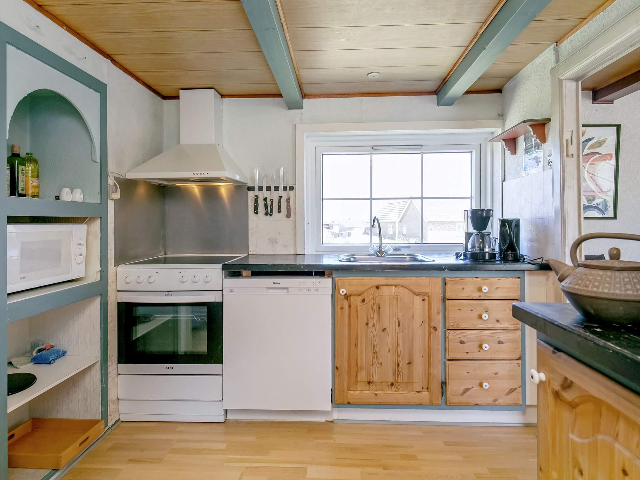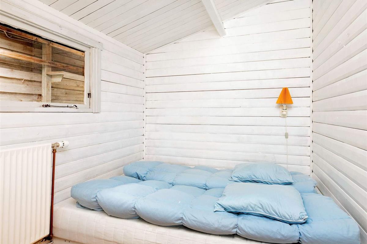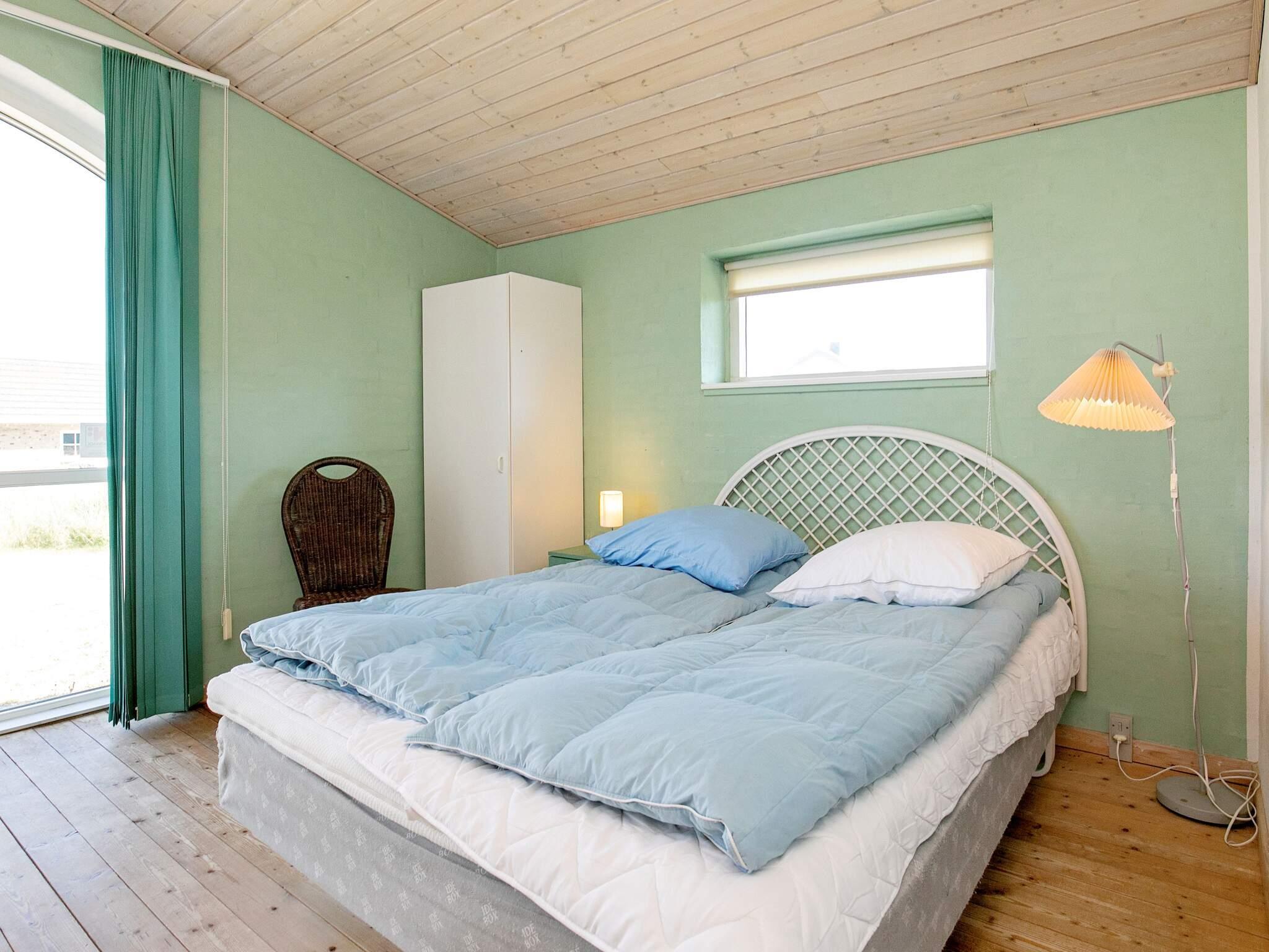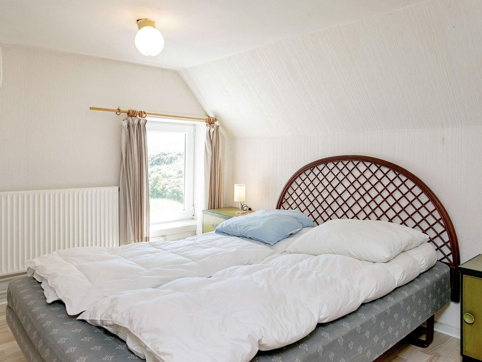 Im ersten Stock liegen drei weitere Schlafzimmer, eines davon ein Durchgangszimmer mit Einzelbett, während die beiden anderen mit jeweils einem Doppelbett ausgestattet sind und guten Ausblick in Richtung Thorsminde bieten.