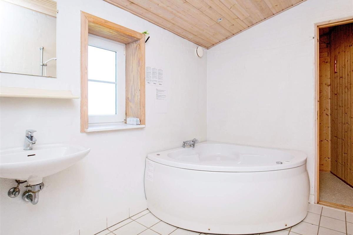 Im Erdgeschoss des Ferienhauses befinden sich zwei Badezimmer mit Dusche/WC, eines zudem mit Whirlpool und Sauna. Der große, offene Wohn-/Essbereich mit großer Fensterfront und schönem Ausblick nach Westen bietet Platz für alle Mitreisenden. Darüber hinaus finden Sie im Erdgeschoss des Ferienhauses die gut ausgestattete Küche und zwei Schlafzimmer mit jeweils einem Doppelbett.