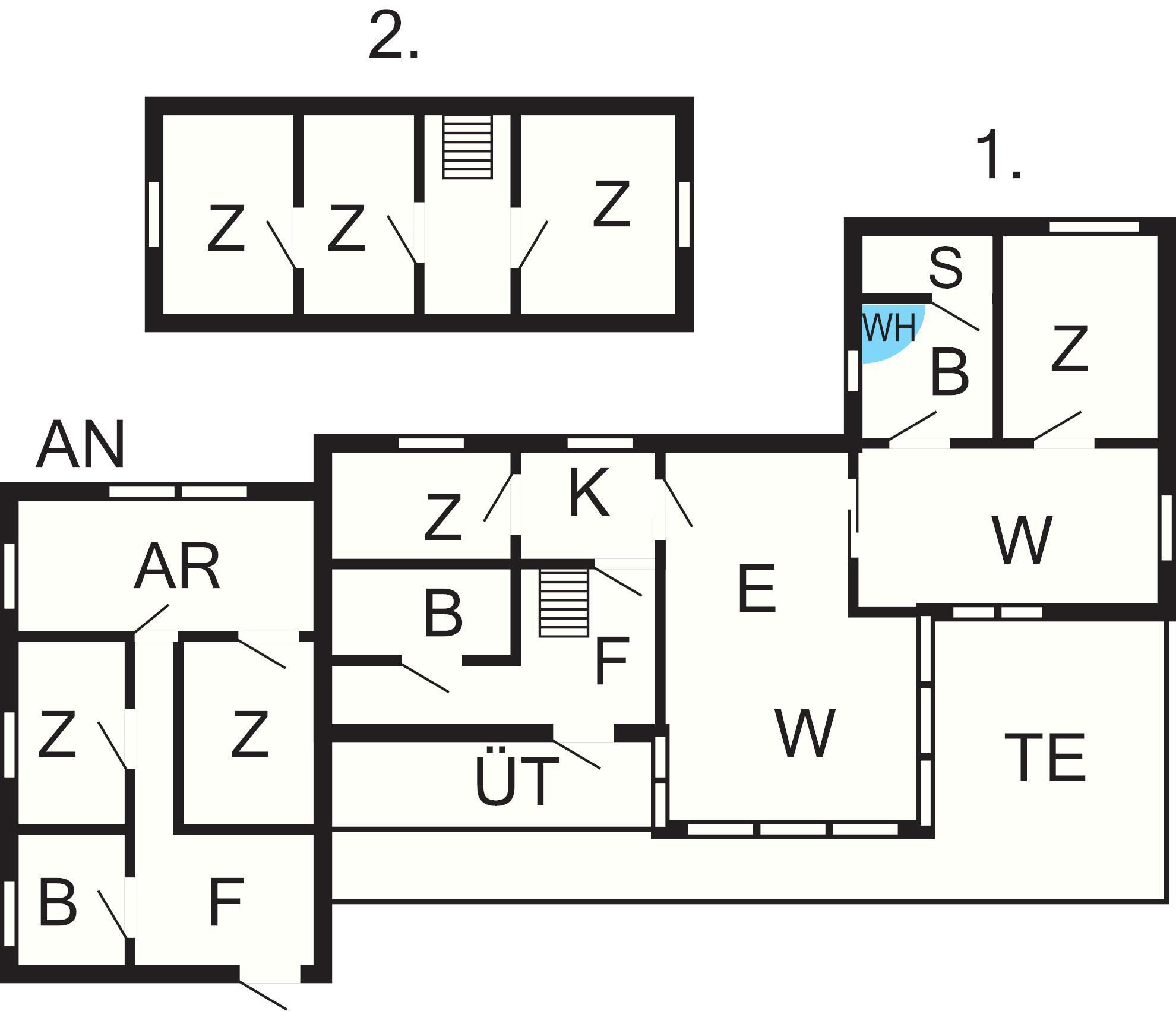 2xBad: WC, Waschb., Dusche