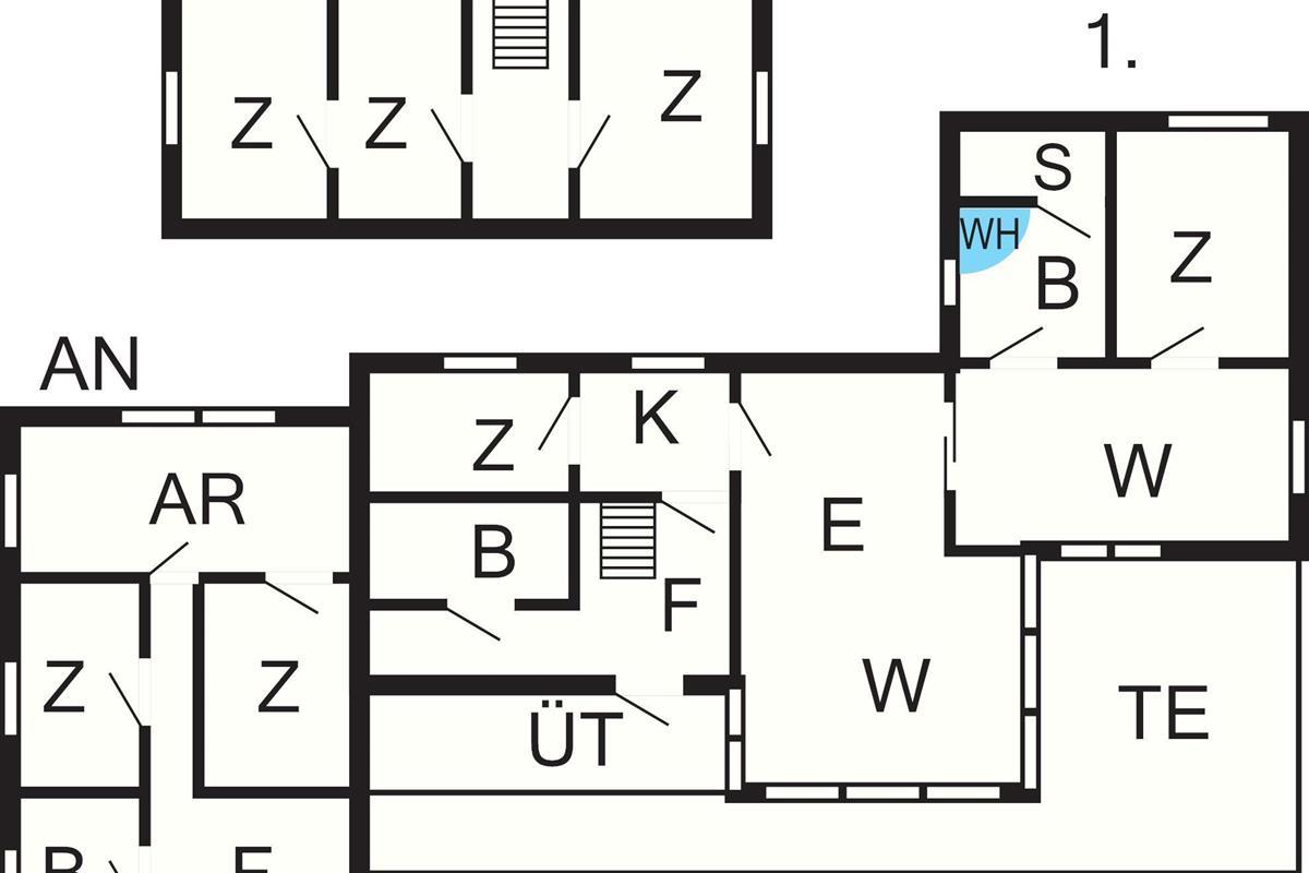 5 Schlafz.: (1DB)+(1DB)+(1DB)+(1DB+1B)+(1B), Kinderbett