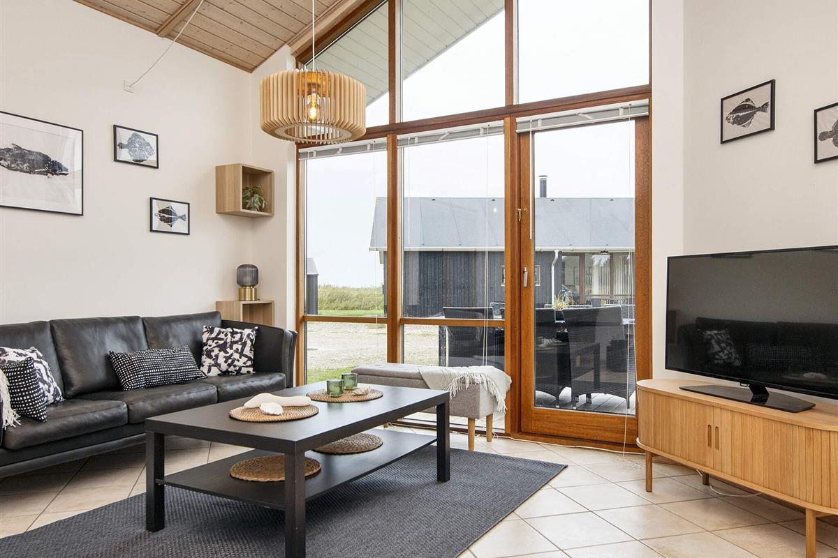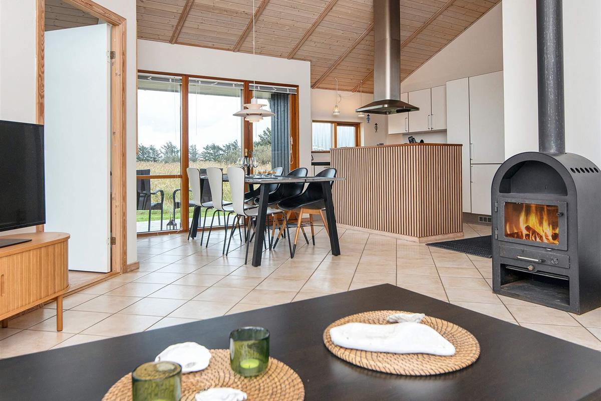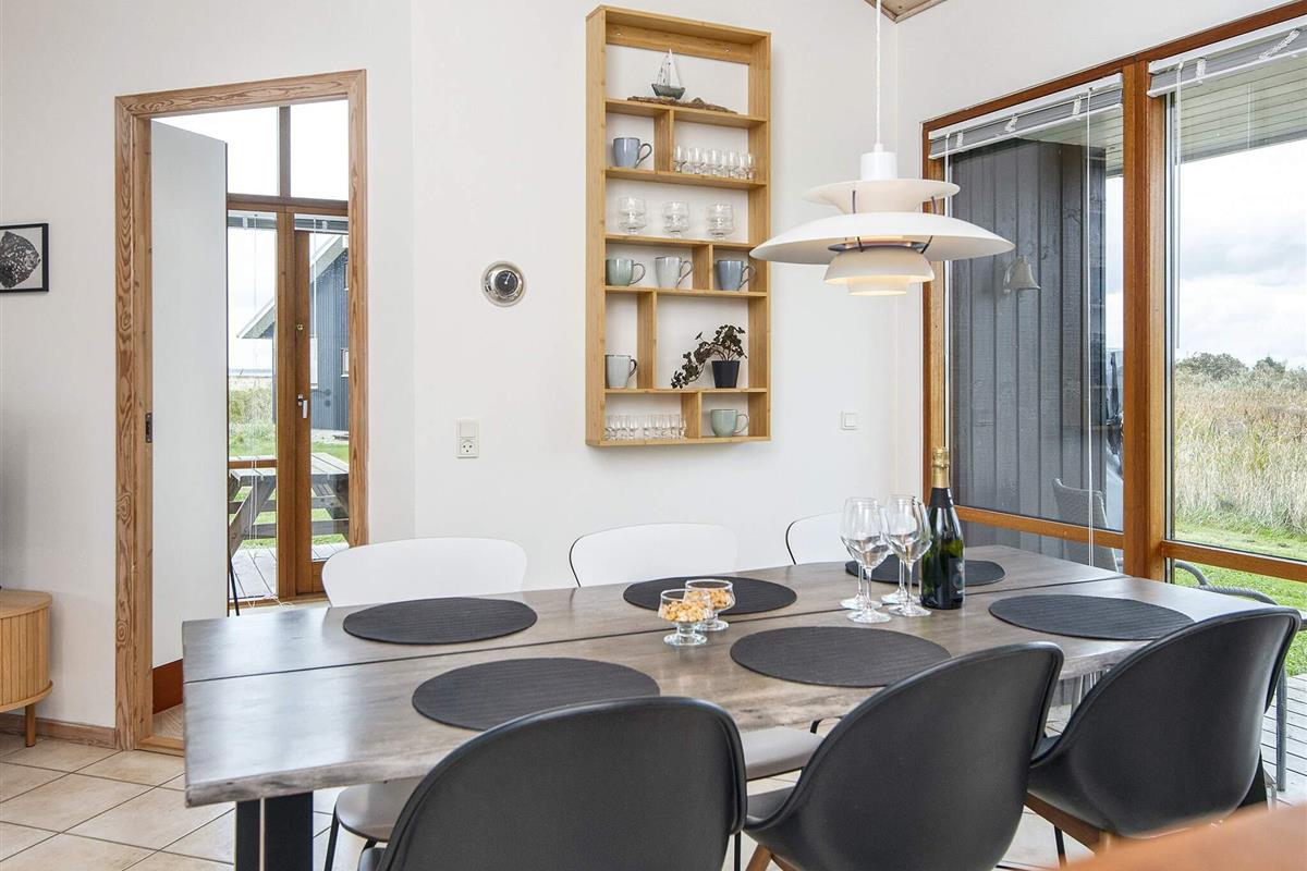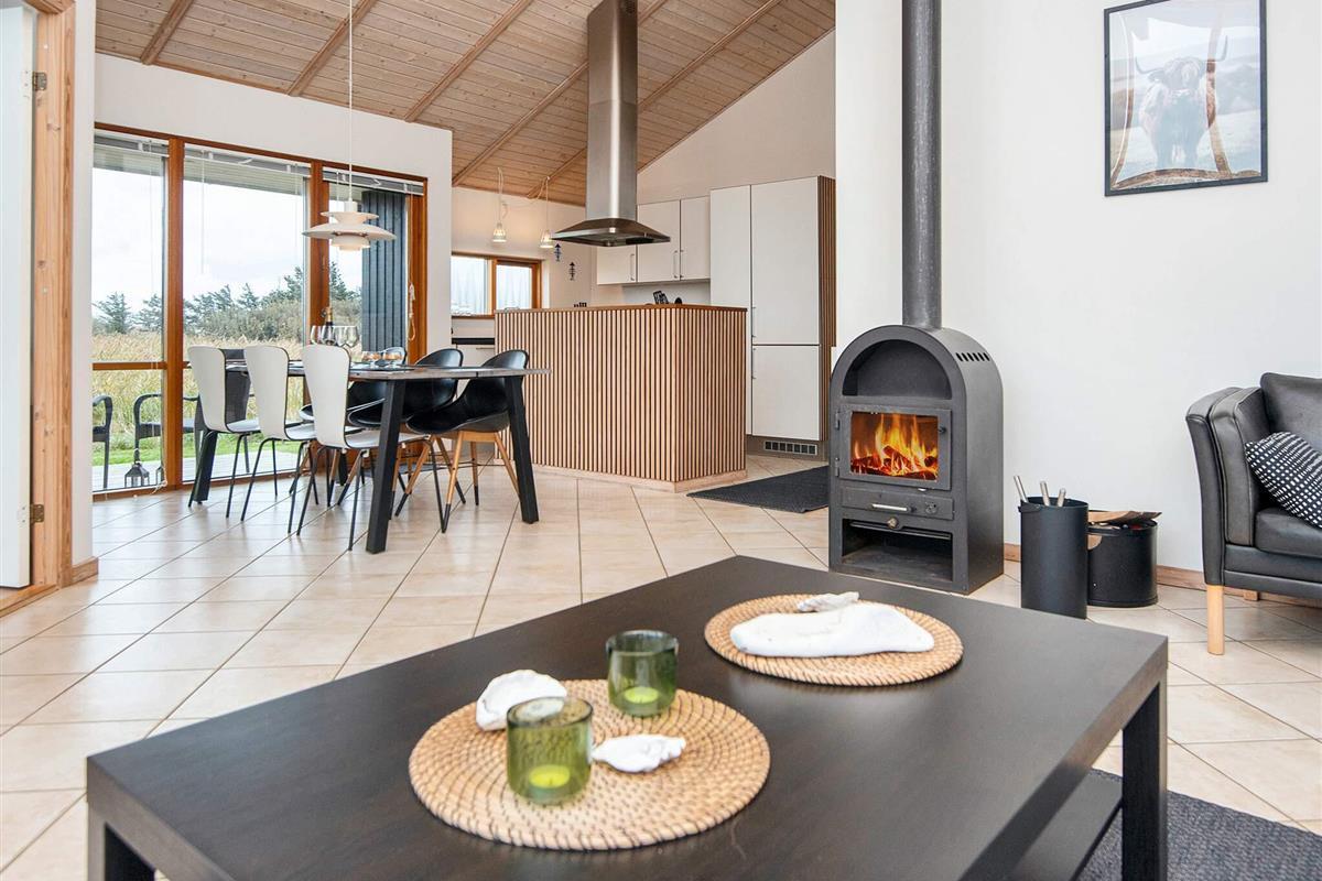 Helles Ferienhaus mit Aussicht auf den Nissum Fjord, das auf einer schmalen Landzunge zwischen der Nordsee und dem Nissum Fjord liegt, ideal für Naturliebhaber. Es gibt ein helles Badezimmer mit einem Whirlpool für zwei Personen und einen kleinen Schlafboden mit Aussicht auf das Wohnzimmer und die Küche. Gute Möglichkeiten für Angeln, Surfing und Strandferien. Geringe Entfernung zu verschiedenen Sehenswürdigkeiten in der Umgebung. Das Haus liegt in einem neuen Gebiet, wo laufend neue Häuser gebaut werden. Vom Ferienhausgebiet zur Nordsee sind es ca. 600 m.