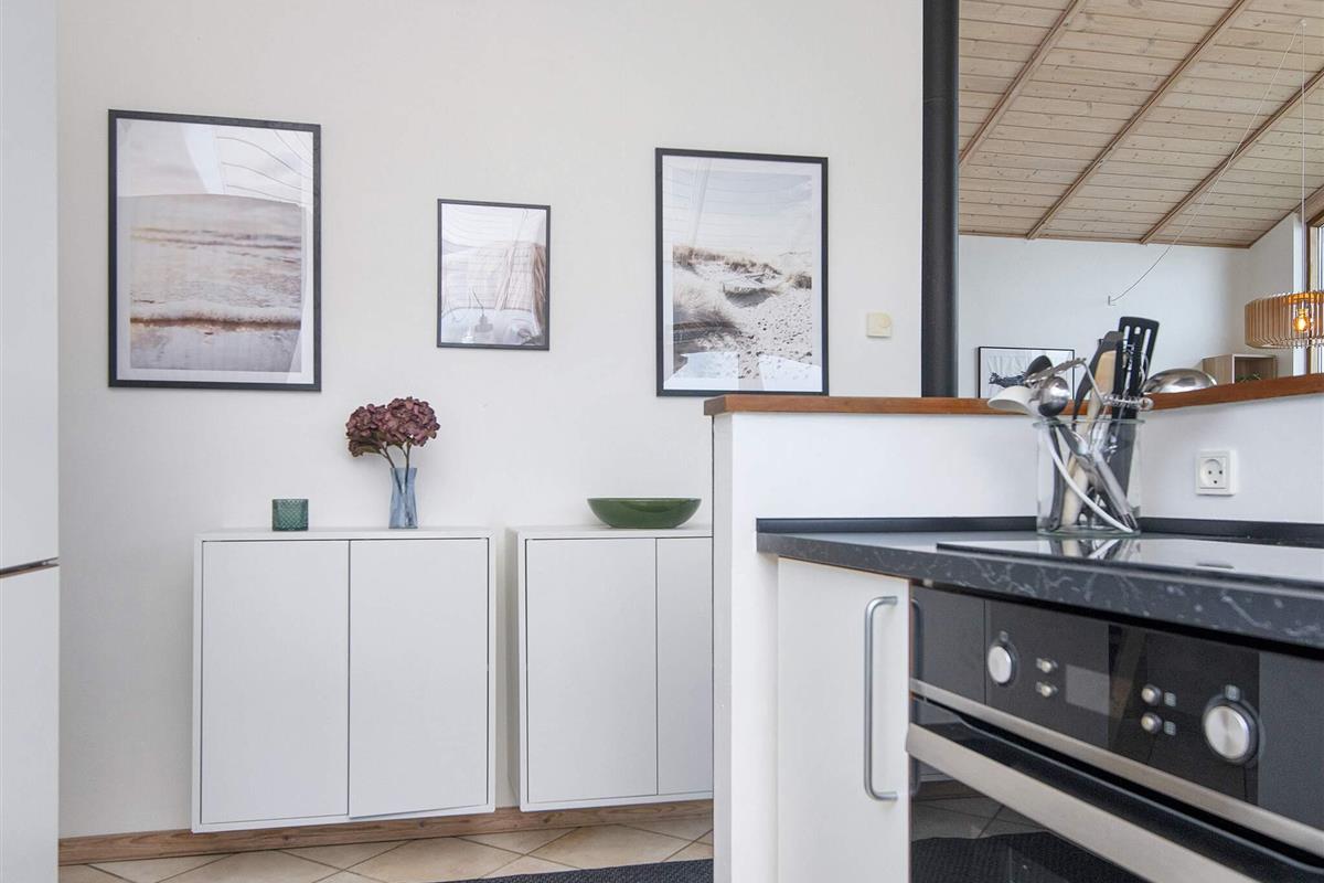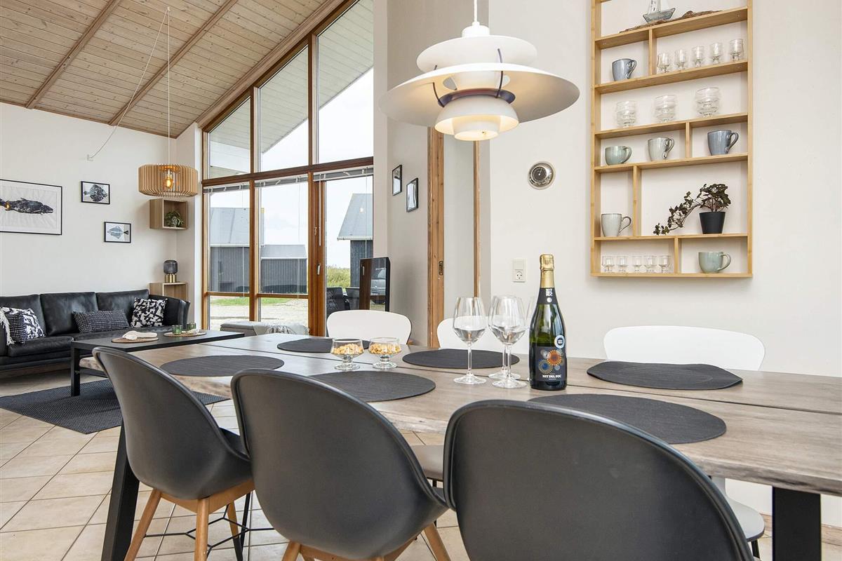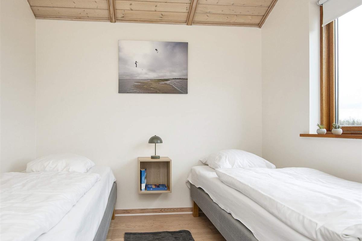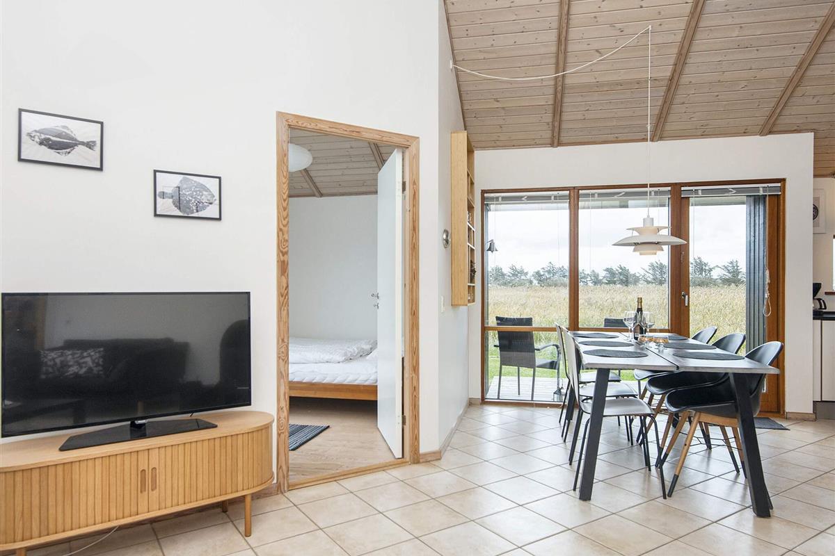 Helles Ferienhaus mit Aussicht auf den Nissum Fjord, das auf einer schmalen Landzunge zwischen der Nordsee und dem Nissum Fjord liegt, ideal für Naturliebhaber. Es gibt ein helles Badezimmer mit einem Whirlpool für zwei Personen und einen kleinen Schlafboden mit Aussicht auf das Wohnzimmer und die Küche. Gute Möglichkeiten für Angeln, Surfing und Strandferien. Geringe Entfernung zu verschiedenen Sehenswürdigkeiten in der Umgebung. Das Haus liegt in einem neuen Gebiet, wo laufend neue Häuser gebaut werden. Vom Ferienhausgebiet zur Nordsee sind es ca. 600 m.