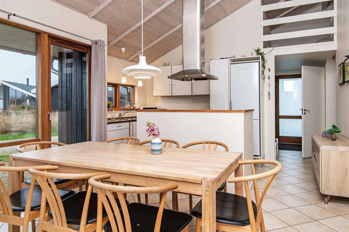 Erstklassig ausgestattetes Ferienhaus in einem landschaftlich reizvollen Gebiet, mit Panoramablick zum Nissum Fjord. Hell und ansprechend eingerichtet. Es stehen 3 SZ, Hems, Bad und Gäste-WC zur Verfügung. Das Haus bietet sich daher auch für einen Mehrfamilienurlaub an. Schöner Fjordblick von Wohnzimmer und Terrasse.