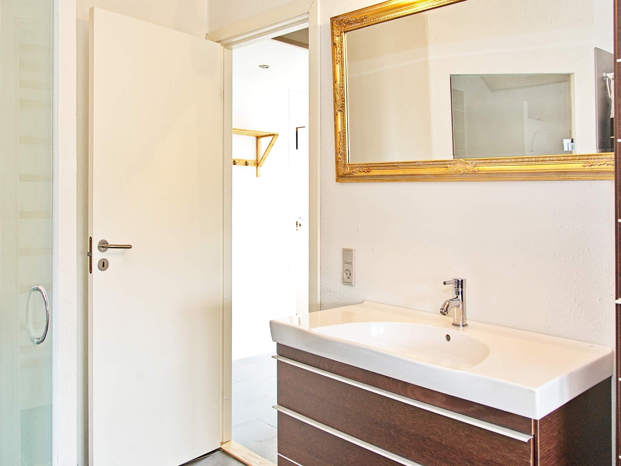 Bad: WC, Waschb., Dusche, Fußbodenheiz.