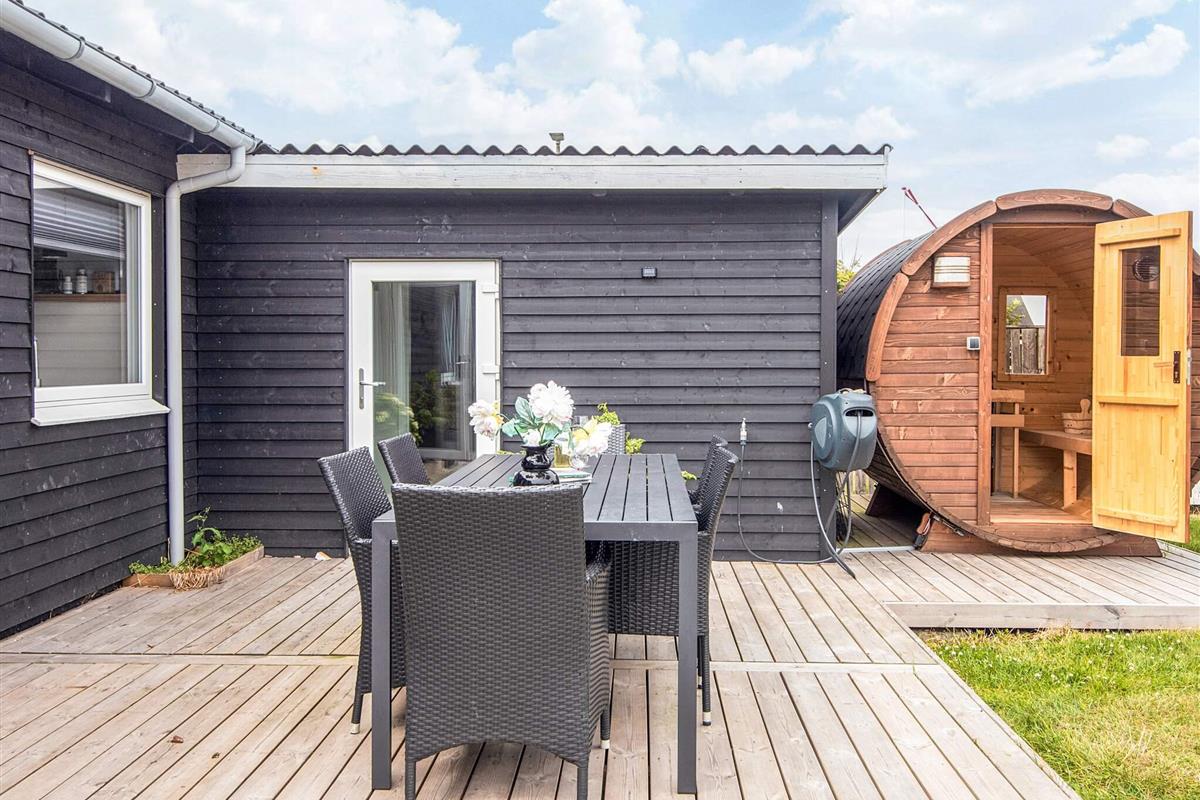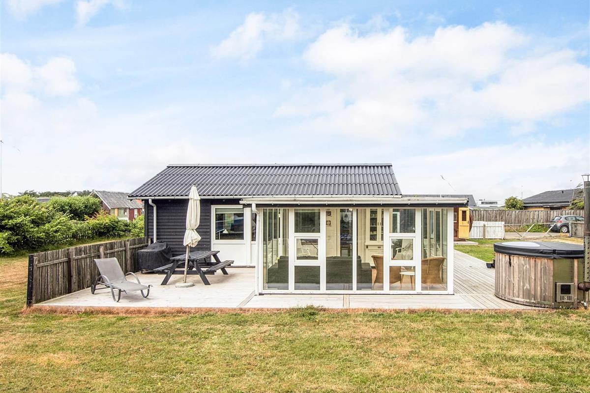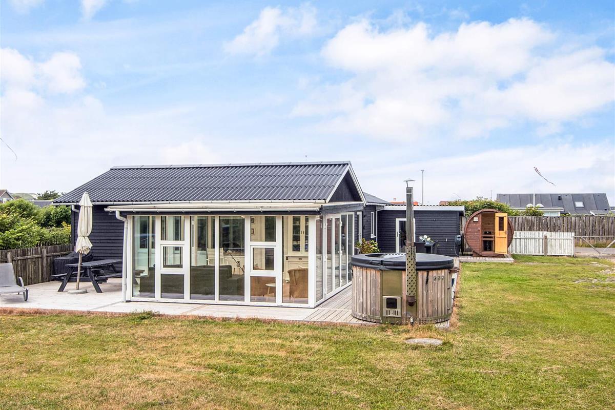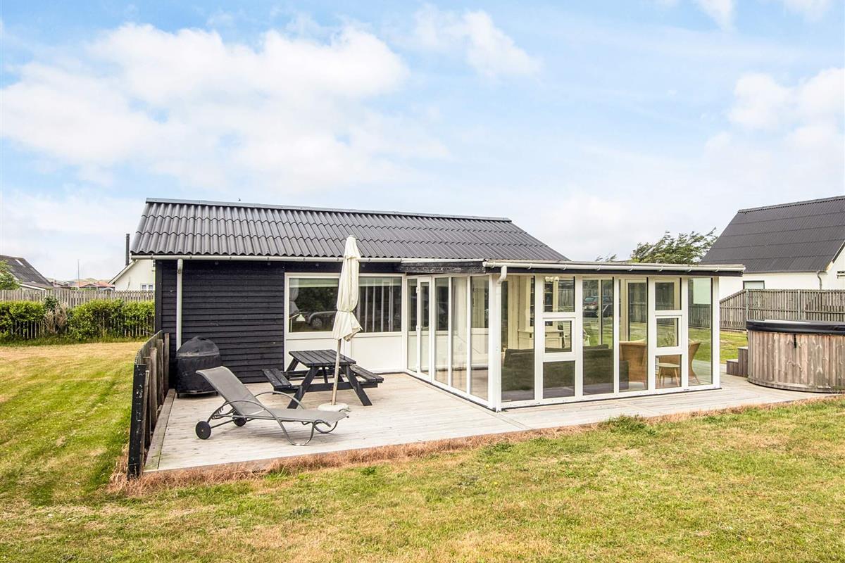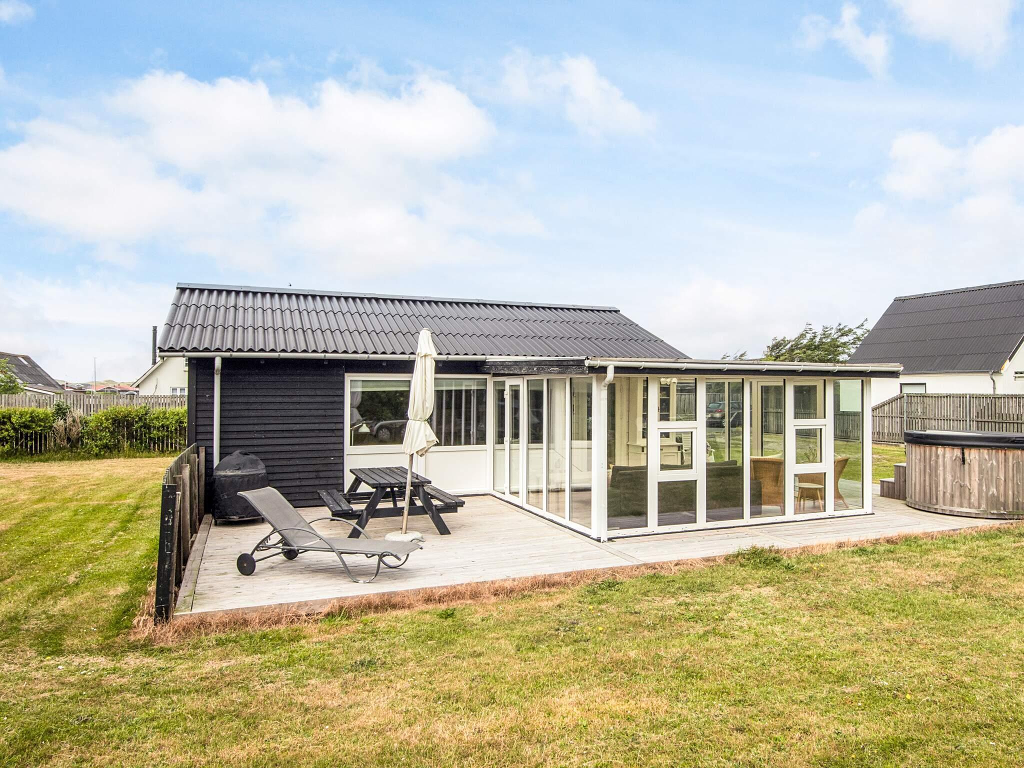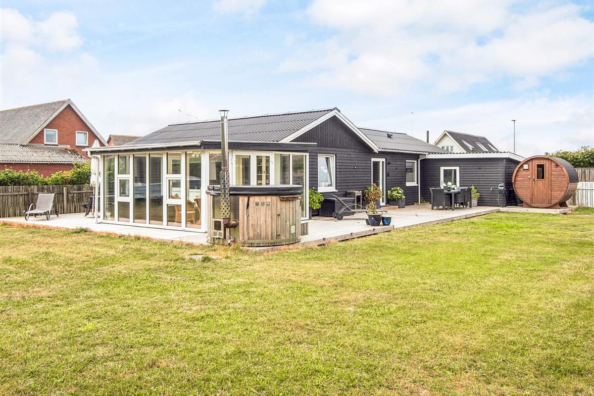 Gut ausgestattetes Ferienhaus mit Außenwhirlpool und Außendusche mit kaltem und warmem Wasser. Das Haus liegt mitten in Thorsminde, in der Nähe des Hafens, der Nordsee und des Nissum Fjords. Das gut eingerichtete Wohnzimmer, das unter anderem einen großen Fernseher enthält, hat Zugang zu einer 25 m² großen überdachten Terrasse, von der aus Sie den Garten überblicken und an kühlen Tagen die Sonne und das Leben im Freien genießen können. In der gut ausgestatteten Küche gibt es eine gemütliche Essecke. Die drei Schlafzimmer verfügen jeweils über ein Doppelbett, und in zwei der Zimmer ist ein Fernseher installiert. Auf der nach Osten ausgerichteten Terrasse können Sie die Morgensonne genießen, während Sie Ihren Morgenkaffee trinken, oder einen Besuch in der schönen Sauna machen. Auf der nach Südwesten ausgerichteten Terrasse können Sie vom Whirlpool aus die Nachmittagssonne und den Sonnenuntergang am Abend genießen. Der luxuriöse Whirlpool verfügt sowohl über Massagedüsen als auch über Beleuchtung. Nur 200 m vom Haus entfernt können Sie an den Molen am Hafen angeln und Ihren Fang anschließend entweder auf dem Grill oder im Räucherofen zubereiten. Am Ende der Straße gibt es einen großen Spielplatz, einen Fußballplatz und einen Outdoor-Fitnessbereich. Der Nissum Fjord mit seinem flachen Wasser und guten Bademöglichkeiten liegt nur 200 m vom Haus entfernt In diesem Haus können Sie das authentische Thorsminde mit Fischauktionen im Sommer und Trockenfisch, der in den Gärten hängt, erleben.