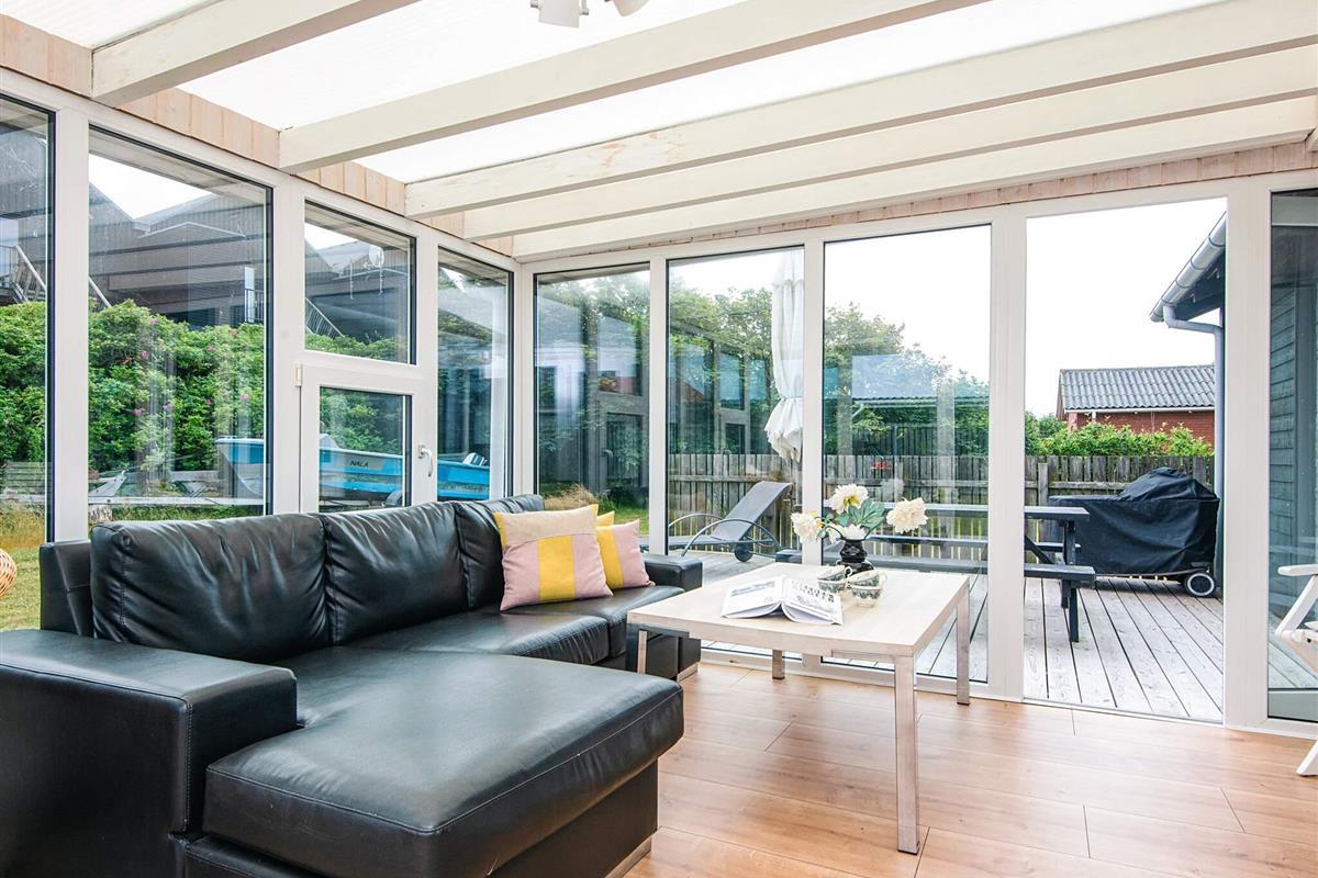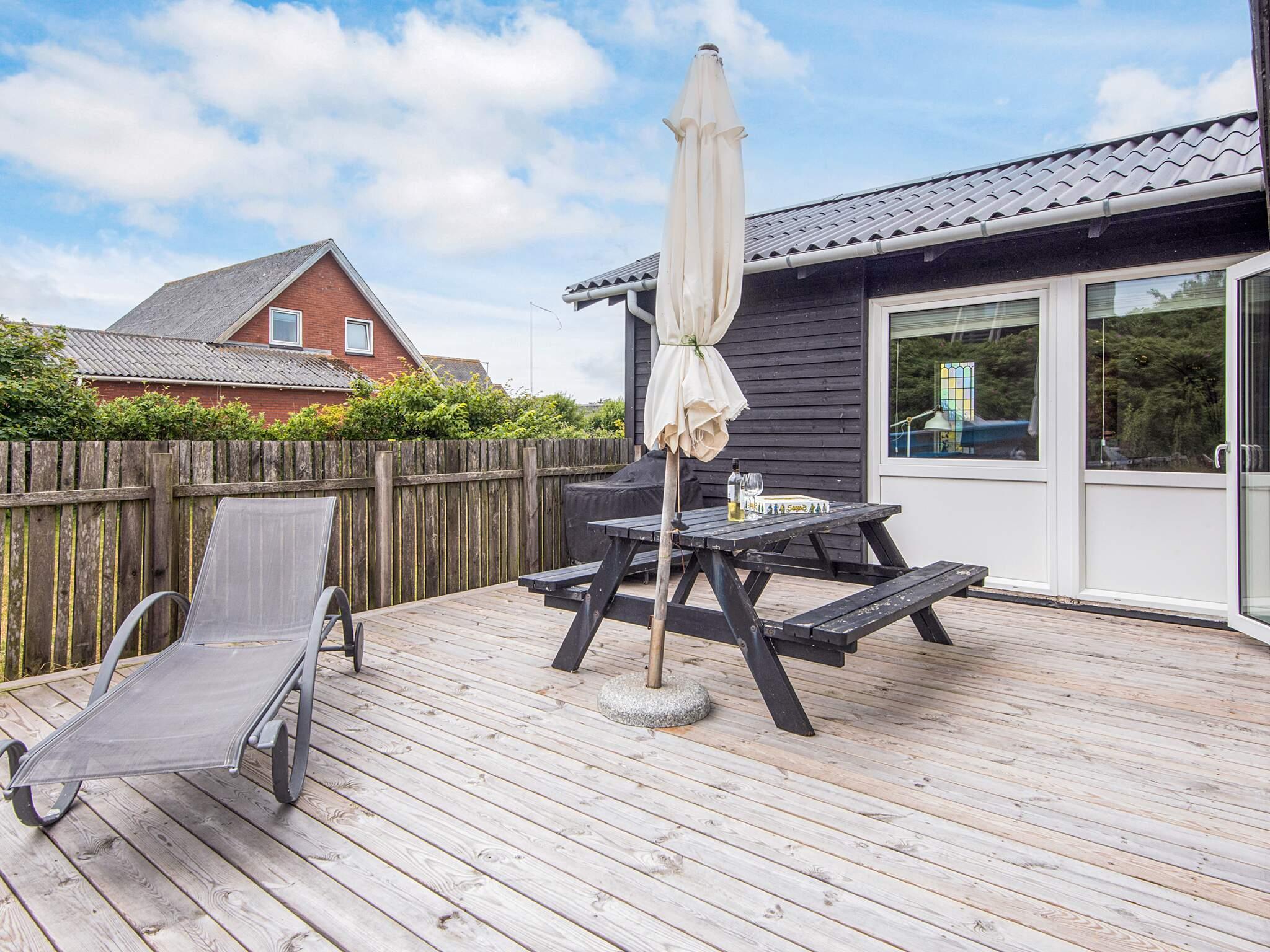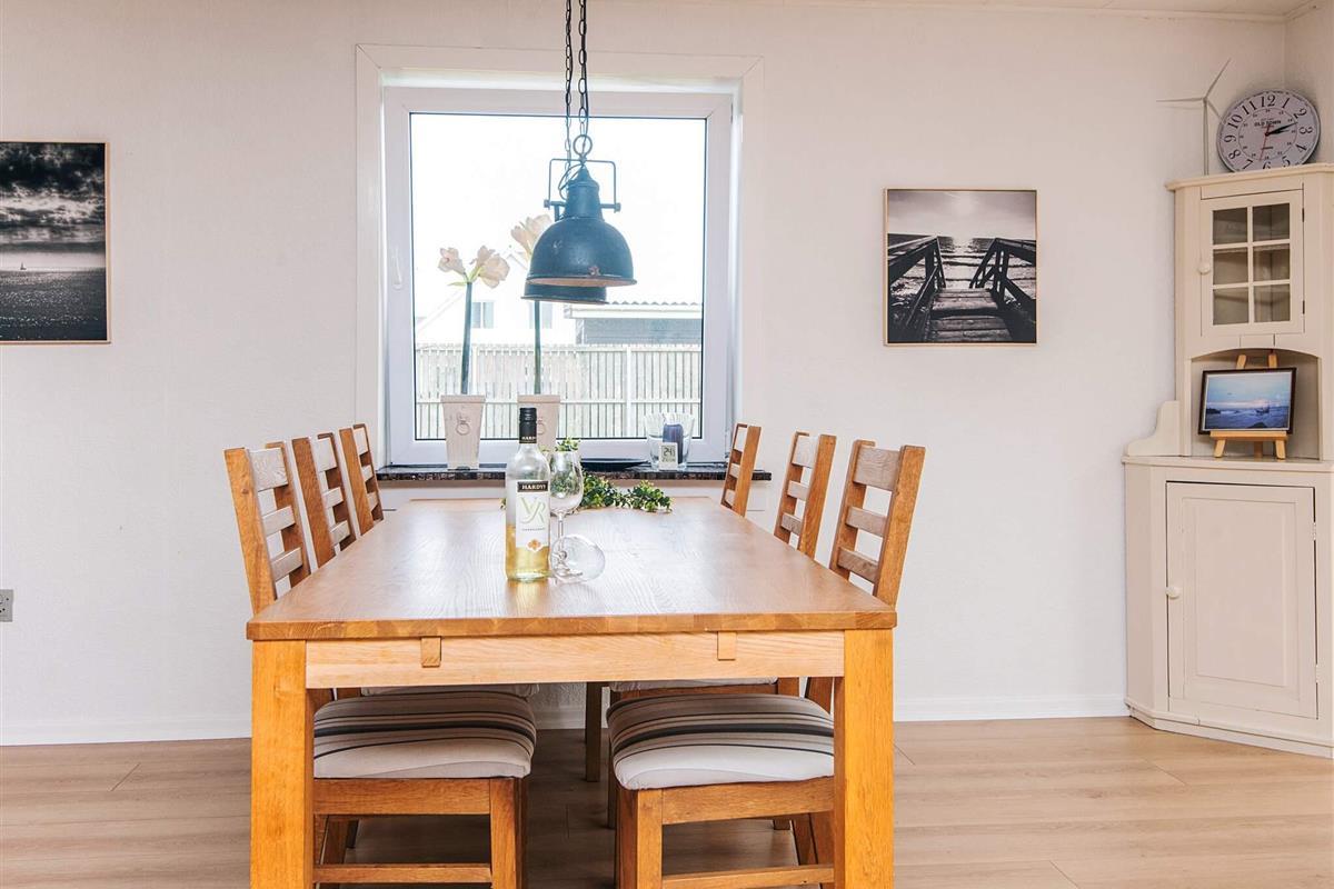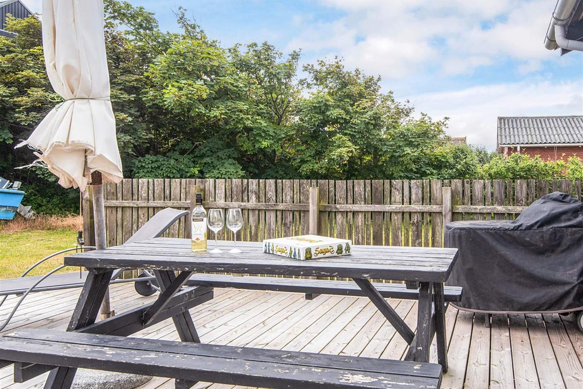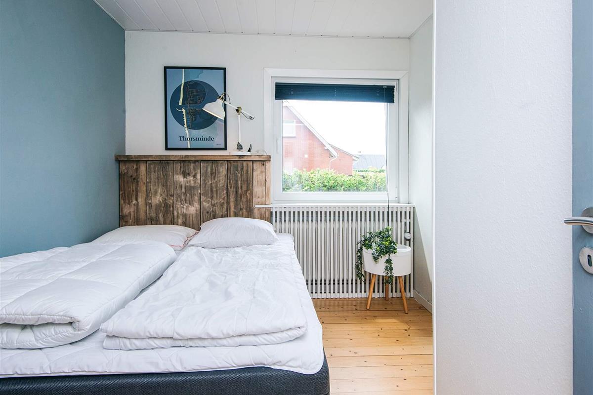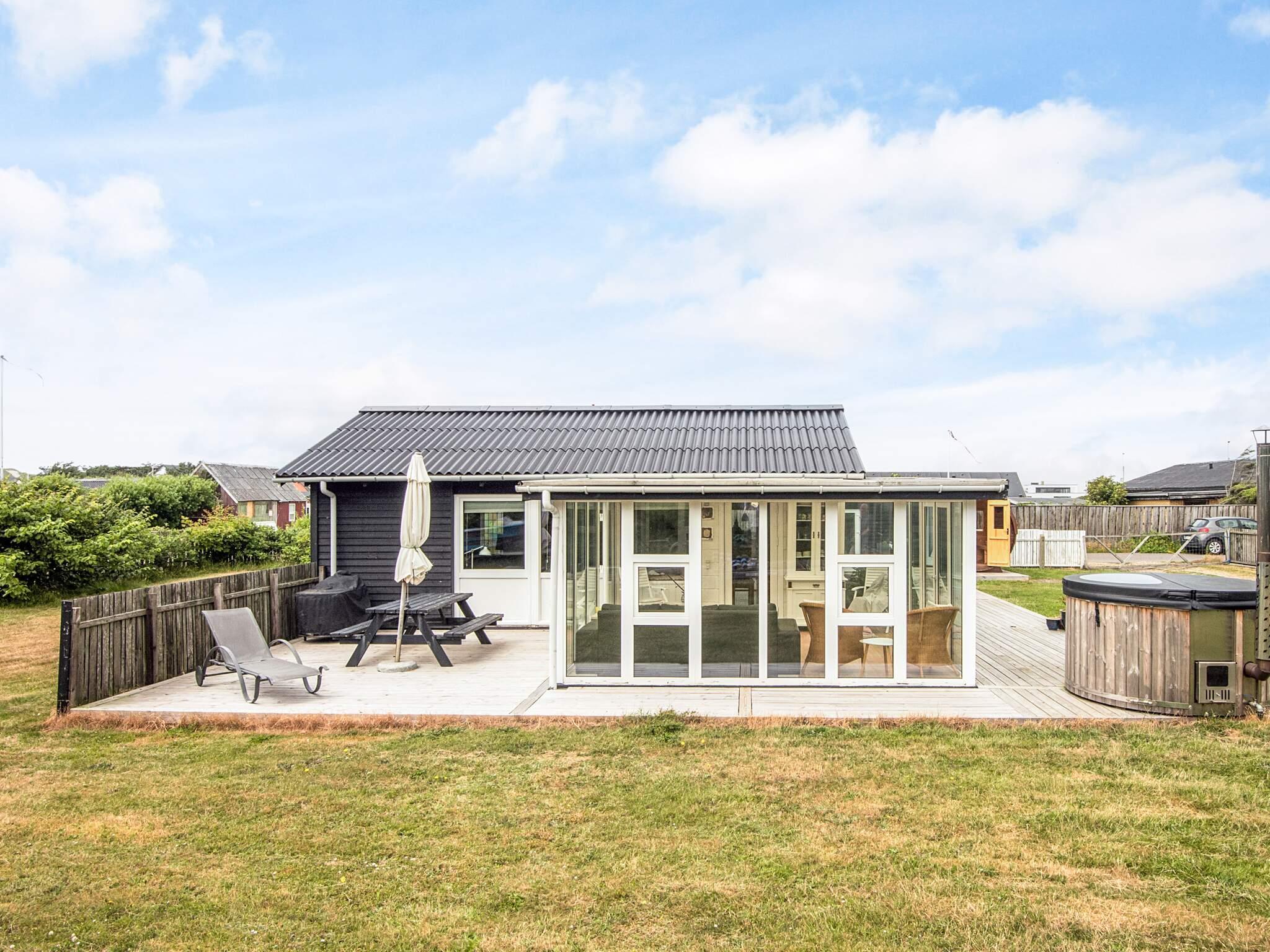 Gut ausgestattetes Ferienhaus mit Außenwhirlpool und Außendusche mit kaltem und warmem Wasser. Das Haus liegt mitten in Thorsminde, in der Nähe des Hafens, der Nordsee und des Nissum Fjords. Das gut eingerichtete Wohnzimmer, das unter anderem einen großen Fernseher enthält, hat Zugang zu einer 25 m² großen überdachten Terrasse, von der aus Sie den Garten überblicken und an kühlen Tagen die Sonne und das Leben im Freien genießen können. In der gut ausgestatteten Küche gibt es eine gemütliche Essecke. Die drei Schlafzimmer verfügen jeweils über ein Doppelbett, und in zwei der Zimmer ist ein Fernseher installiert. Auf der nach Osten ausgerichteten Terrasse können Sie die Morgensonne genießen, während Sie Ihren Morgenkaffee trinken, oder einen Besuch in der schönen Sauna machen. Auf der nach Südwesten ausgerichteten Terrasse können Sie vom Whirlpool aus die Nachmittagssonne und den Sonnenuntergang am Abend genießen. Der luxuriöse Whirlpool verfügt sowohl über Massagedüsen als auch über Beleuchtung. Nur 200 m vom Haus entfernt können Sie an den Molen am Hafen angeln und Ihren Fang anschließend entweder auf dem Grill oder im Räucherofen zubereiten. Am Ende der Straße gibt es einen großen Spielplatz, einen Fußballplatz und einen Outdoor-Fitnessbereich. Der Nissum Fjord mit seinem flachen Wasser und guten Bademöglichkeiten liegt nur 200 m vom Haus entfernt In diesem Haus können Sie das authentische Thorsminde mit Fischauktionen im Sommer und Trockenfisch, der in den Gärten hängt, erleben.