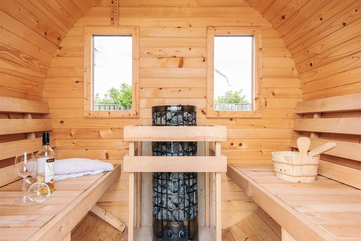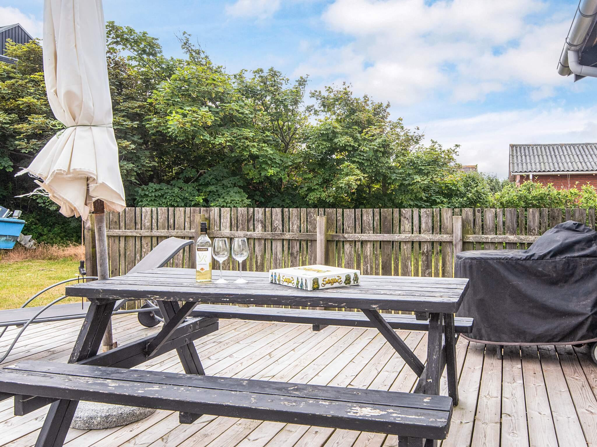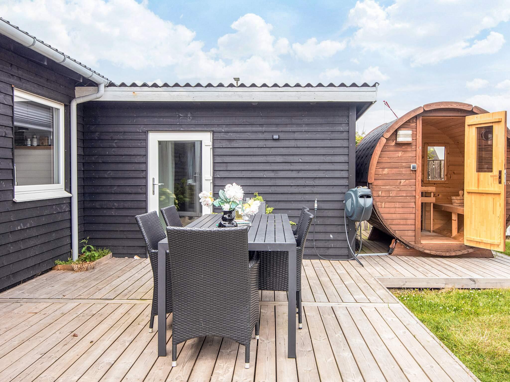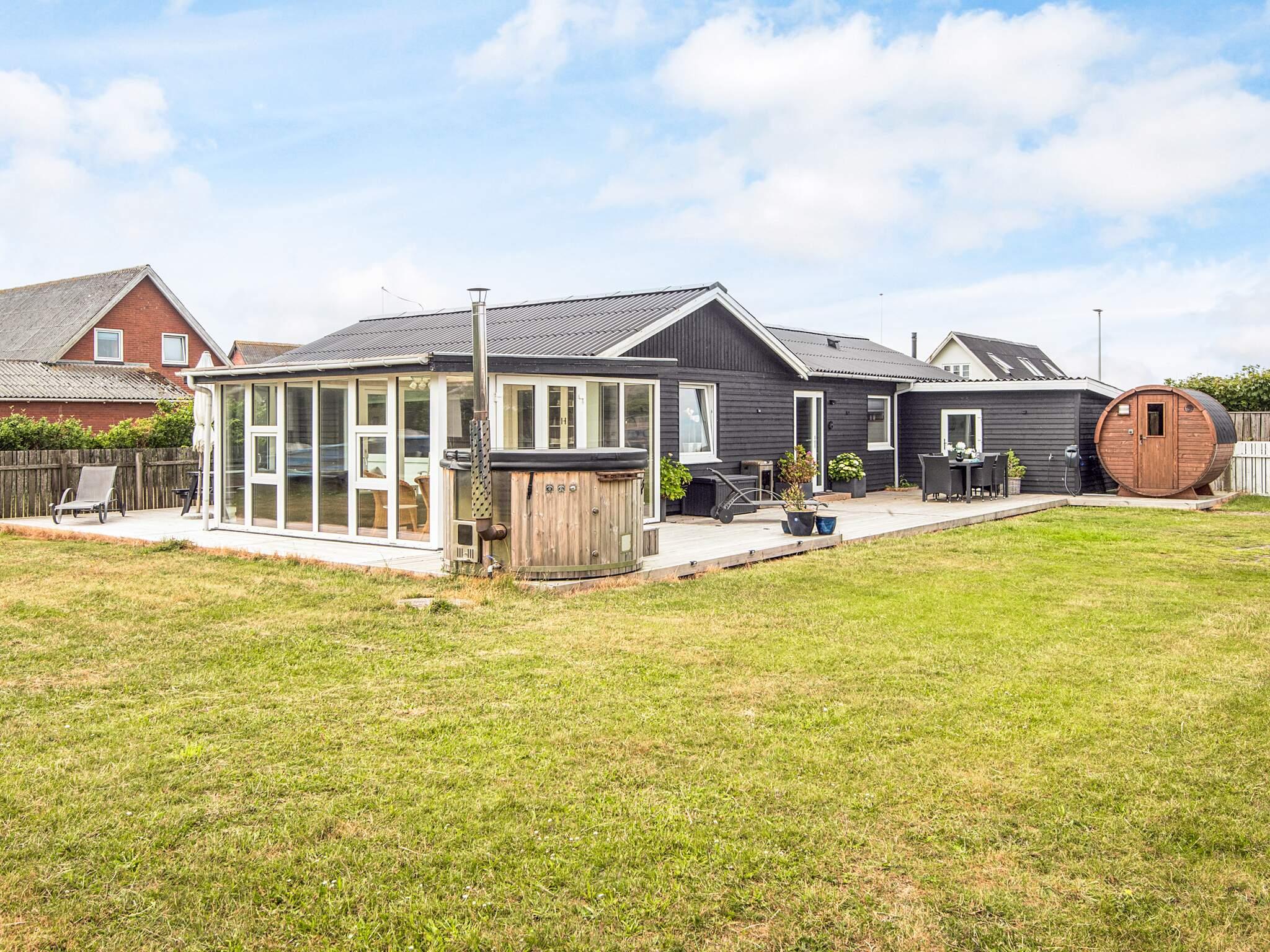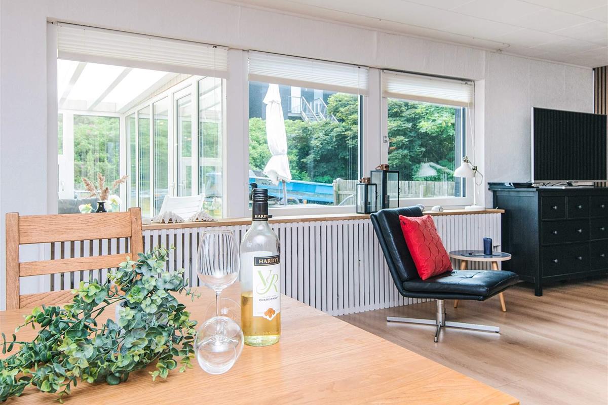 Gut ausgestattetes Ferienhaus mit Außenwhirlpool und Außendusche mit kaltem und warmem Wasser. Das Haus liegt mitten in Thorsminde, in der Nähe des Hafens, der Nordsee und des Nissum Fjords. Das gut eingerichtete Wohnzimmer, das unter anderem einen großen Fernseher enthält, hat Zugang zu einer 25 m² großen überdachten Terrasse, von der aus Sie den Garten überblicken und an kühlen Tagen die Sonne und das Leben im Freien genießen können. In der gut ausgestatteten Küche gibt es eine gemütliche Essecke. Die drei Schlafzimmer verfügen jeweils über ein Doppelbett, und in zwei der Zimmer ist ein Fernseher installiert. Auf der nach Osten ausgerichteten Terrasse können Sie die Morgensonne genießen, während Sie Ihren Morgenkaffee trinken, oder einen Besuch in der schönen Sauna machen. Auf der nach Südwesten ausgerichteten Terrasse können Sie vom Whirlpool aus die Nachmittagssonne und den Sonnenuntergang am Abend genießen. Der luxuriöse Whirlpool verfügt sowohl über Massagedüsen als auch über Beleuchtung. Nur 200 m vom Haus entfernt können Sie an den Molen am Hafen angeln und Ihren Fang anschließend entweder auf dem Grill oder im Räucherofen zubereiten. Am Ende der Straße gibt es einen großen Spielplatz, einen Fußballplatz und einen Outdoor-Fitnessbereich. Der Nissum Fjord mit seinem flachen Wasser und guten Bademöglichkeiten liegt nur 200 m vom Haus entfernt In diesem Haus können Sie das authentische Thorsminde mit Fischauktionen im Sommer und Trockenfisch, der in den Gärten hängt, erleben.