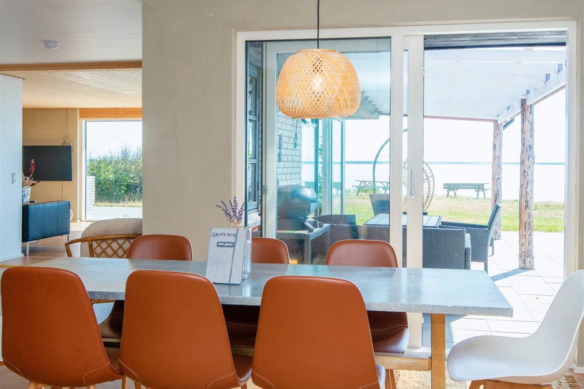 Das Haus verfügt über vier Schlafzimmer mit jeweils einem bequemen Doppelbett, ein großes Badezimmer mit Dusche und Badewanne sowie ein Gäste-WC. Das helle Wohnzimmer bietet viel Platz für gesellige Stunden, ist im schlichten skandinavischen Stil eingerichtet und bietet einen Panoramablick auf den Fjord. Auf einem Chromecast-fähigen Fernseher können Sie Ihre Lieblingssendungen streamen. Vom Wohnzimmer aus gelangen Sie auf die überdachte Terrasse, um den atemberaubenden Blick auf das Wasser und die frische Luft zu genießen.