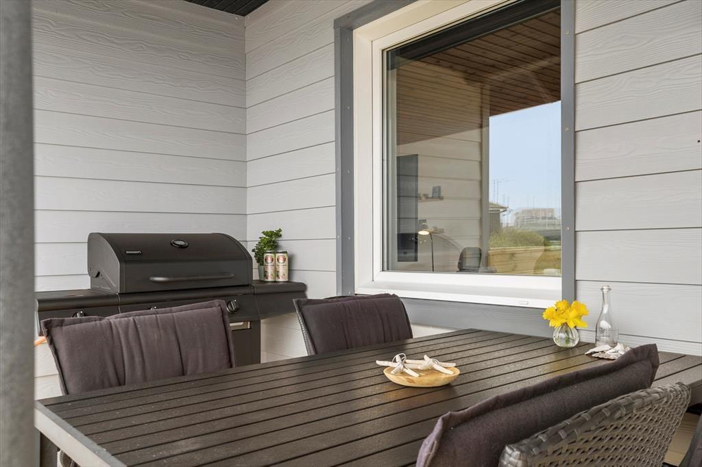 Egal ob die Sonne im Osten oder Westen scheint – du findest immer ein schönes, windgeschütztes Plätzchen. Das Haus verfügt über Terrassen auf beiden Seiten – eine davon überdacht, ideal für den Morgenkaffee oder einen ruhigen Abend mit einem Glas Wein in der Hand. Du wohnst in erster Reihe zum Fjord und hast damit einen Logenplatz für Sonnenaufgänge und das faszinierende Spiel des Lichts über den Tag hinweg. Auf dem Grundstück selbst kannst du die friedliche Atmosphäre genießen, während Kinder oder Hunde herumtollen. Die Natur rund um das Haus lädt zum Innehalten und Entspannen ein – direkt vor der Tür.