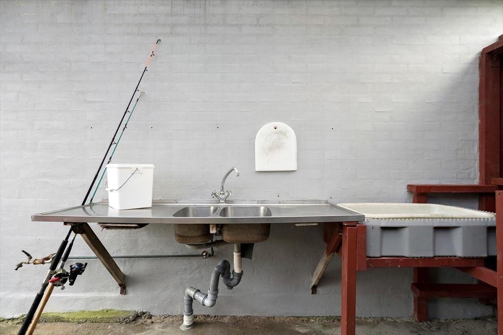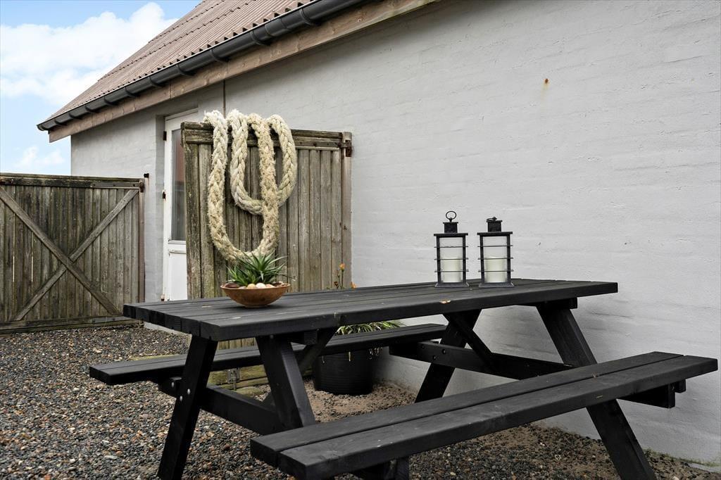 Tritt hinaus in den gemütlichen Innenhof, wo ihr zu zweit einen perfekten Grillabend genießen könnt. Führt lange Gespräche bei einer Tasse Kaffee oder einem kühlen Getränk während herrlicher Sonnenstunden. Auf der überdachten Terrasse könnt ihr den Fang des Tages reinigen oder Gemüse am Außentisch mit Spüle waschen. Wenn der Westwind kräftig bläst, könnt ihr euch unter das Vordach setzen und dennoch die frische Meeresluft genießen.