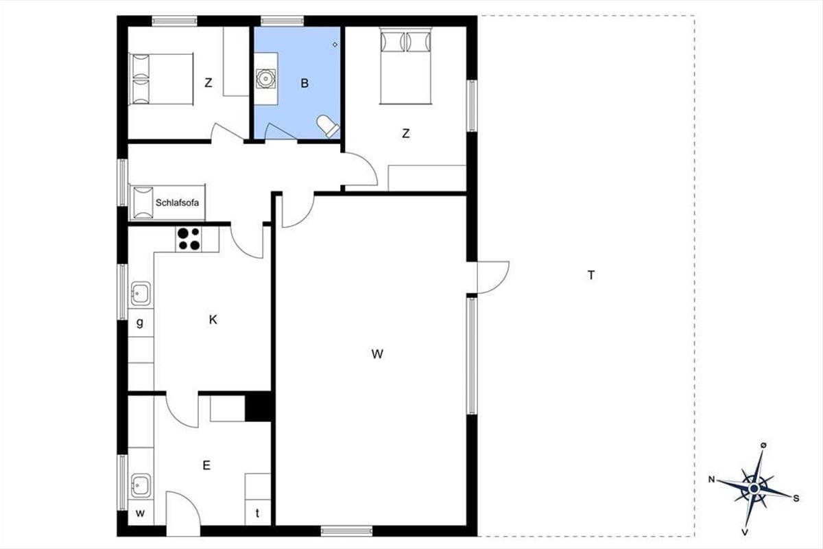 Wenn Sie dieses schöne Ferienhaus betreten, werden Sie von einem hellen und großzügigen Eingangsbereich empfangen, der sofort ein Gefühl von Ruhe und Wärme vermittelt. Das Herz des Hauses ist die offene Küche in Verbindung mit dem Wohnzimmer, wo Sie gemeinsam kochen, gemütliche Mahlzeiten am Esstisch genießen und entspannte Stunden auf dem Sofa verbringen können. Von hier aus gelangen Sie direkt auf die sonnige Südterrasse, die den Wohnraum erweitert und das Innen- und Außenleben harmonisch miteinander verbindet.