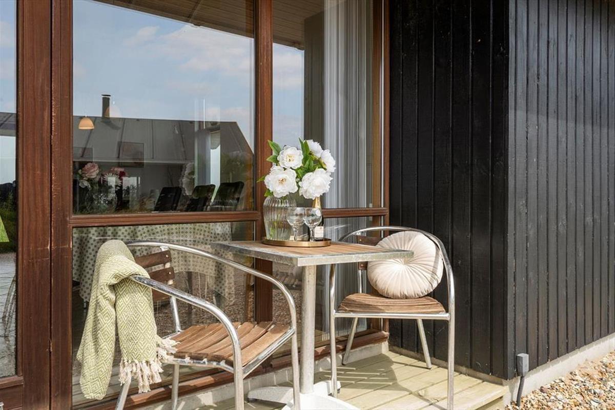 Die nach Osten ausgerichtete Terrasse bietet Morgensonne und einen ruhigen Start in den Tag. Beginnen Sie den Morgen mit einer Tasse Kaffee unter freiem Himmel, lesen Sie ein gutes Buch oder genießen Sie einfach die Aussicht ins Grüne. Die Terrasse eignet sich perfekt für entspannte Stunden oder geselliges Beisammensein – sei es ein Frühstück an der frischen Luft oder ein leichtes Mittagessen im Schatten. Wenn der Tag sich dem Ende neigt, sorgt der Grill für kulinarische Genüsse unter freiem Himmel – begleitet vom Klang der Natur und frischer Küstenluft.