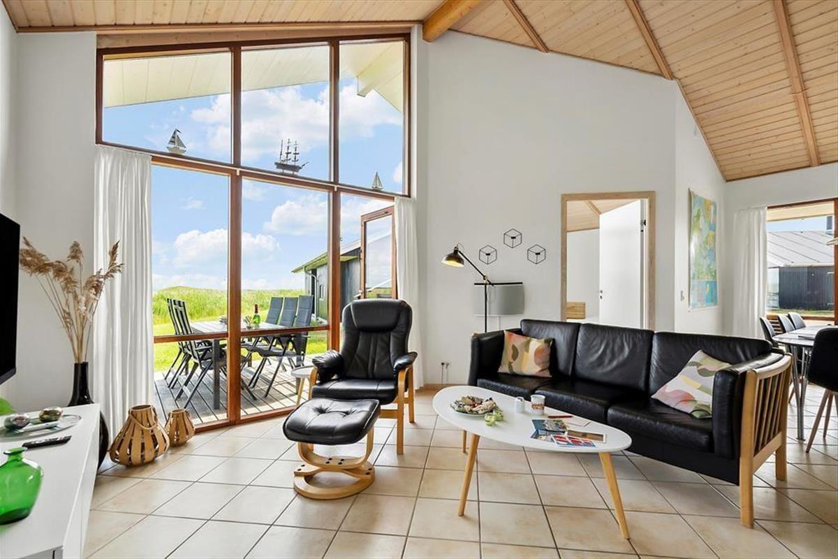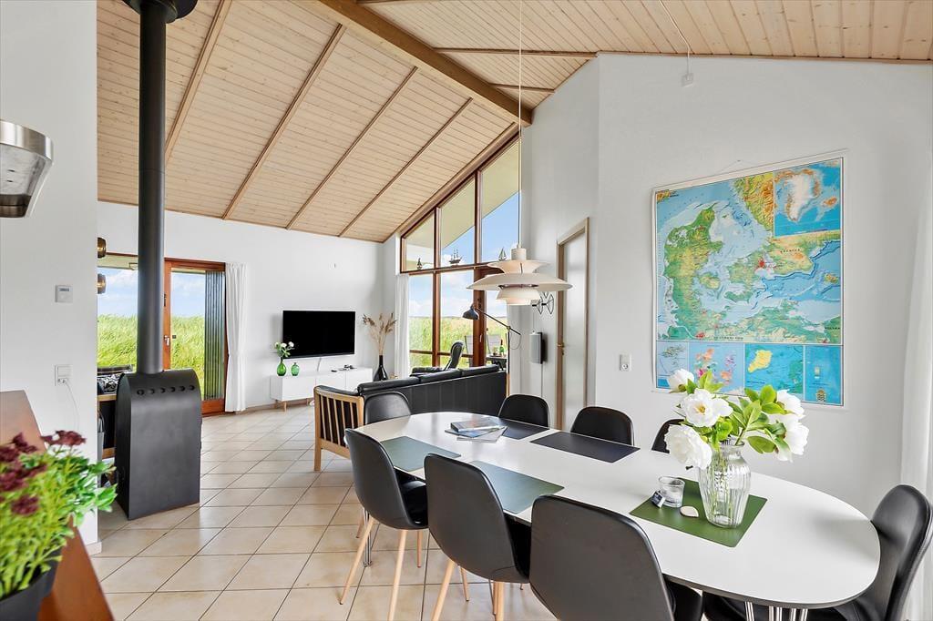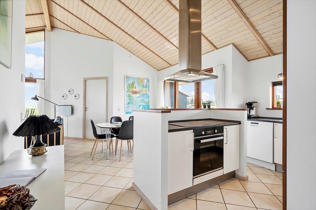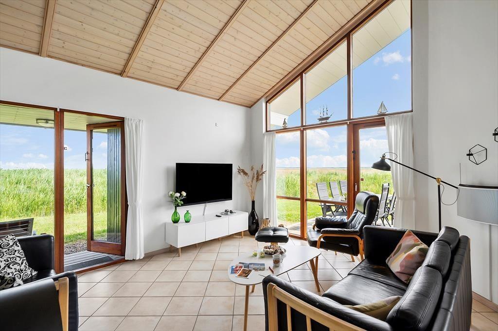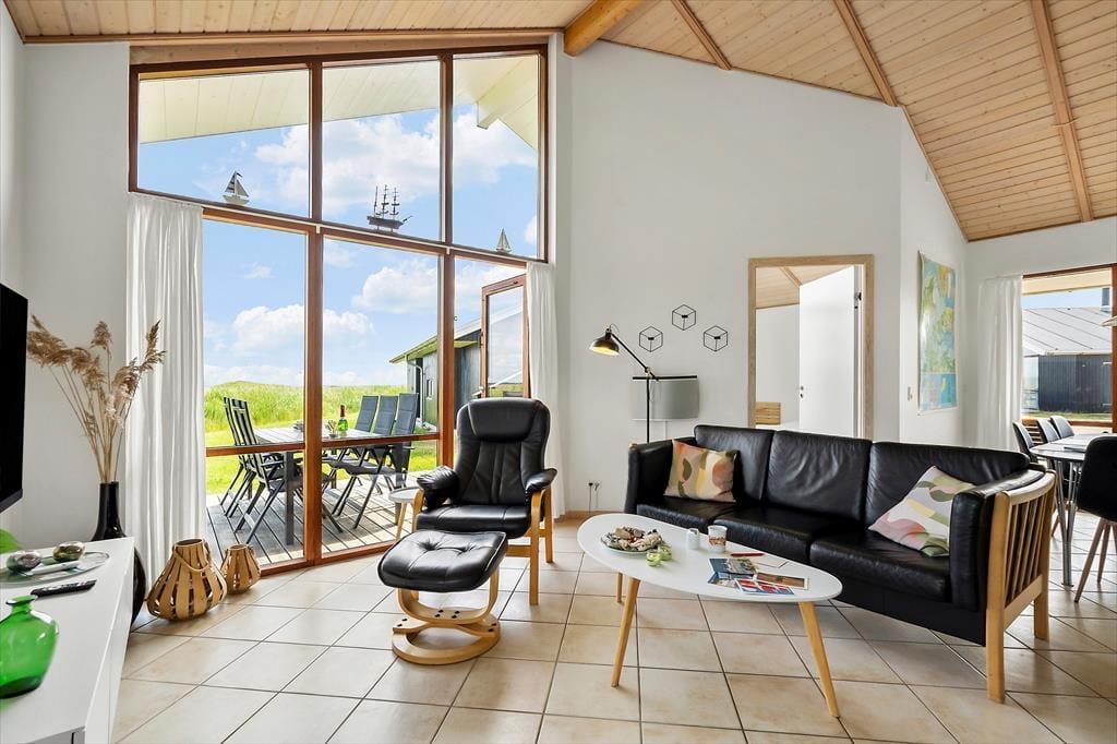 Schon beim Betreten des Hauses spürt ihr es: die Ruhe, das Licht und die gemütliche Atmosphäre. Hier gibt es Platz zum Zusammensein – und genauso Platz, einfach mal für sich zu sein. Die offene Decke und die großen Fensterfronten holen die Natur direkt ins Wohnzimmer. Küche und Wohnbereich gehen fließend ineinander über – perfekt, um gemeinsam zu kochen, zu plaudern, zu lachen oder einfach die Zeit zu genießen. Vielleicht spielt ihr Karten am Esstisch, während der Kamin leise knistert. Oder ihr lasst euch auf dem Sofa nieder und genießt einen besonderen Moment: die beeindruckende Panoramaussicht über den Nissum Fjord. Das Licht, die Landschaft und der Himmel verändern sich ständig und sorgen für unvergessliche Ausblicke. Und wenn euch nach etwas Wellness ist, warten Whirlpool und Sauna darauf, euch rundum zu verwöhnen.