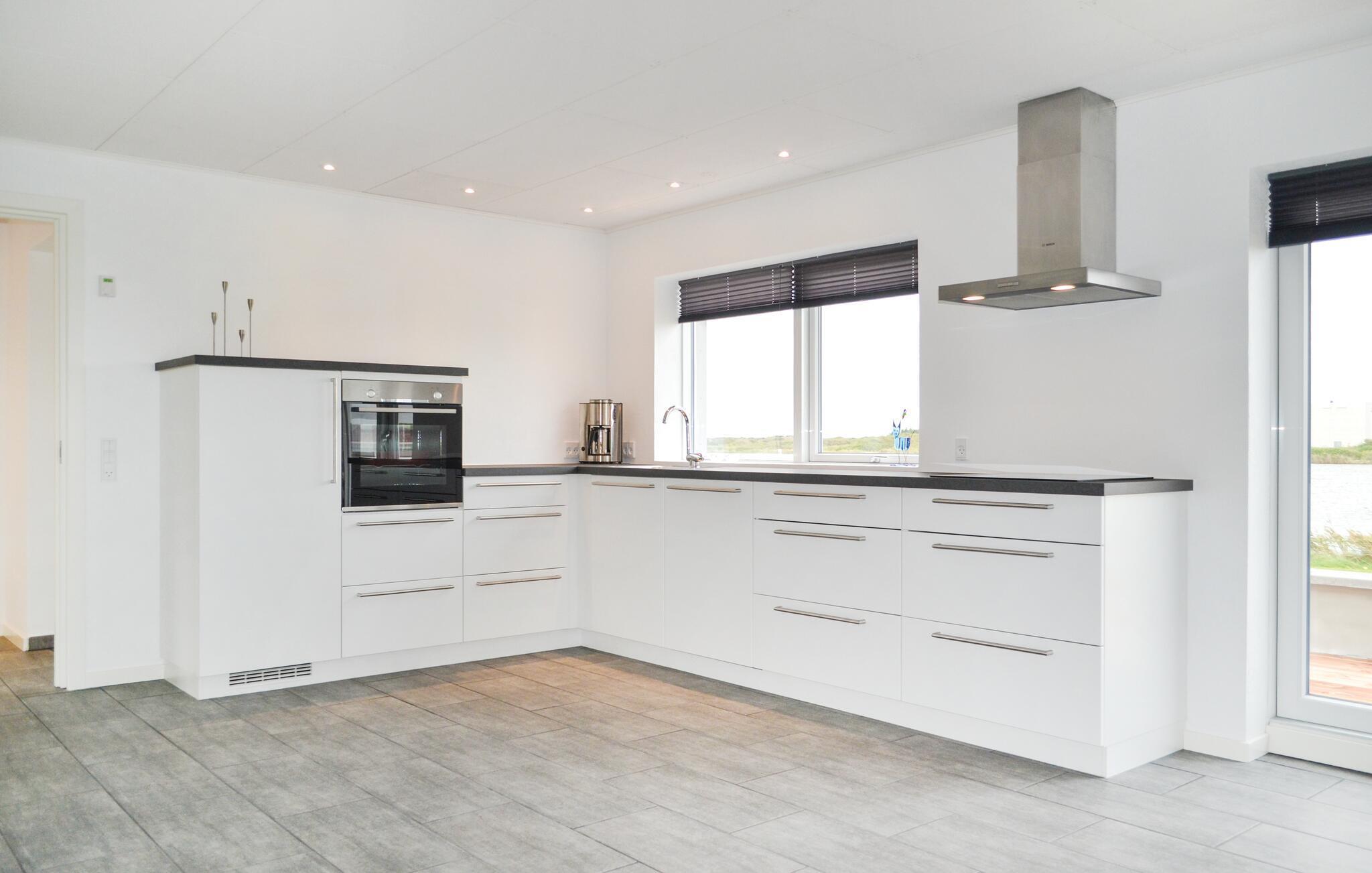 Fantastisch gelegen vakantiehuis met uitzicht op de fjord. Dit volledig gerenoveerde vakantiehuis ligt bijna aan de vaarroute naar Thorsminde. Het rookvrije huis heeft een lichte keuken-woonkamer met een prachtig uitzicht op het scheepvaartverkeer in het fjord. In het huis zijn drie goede slaapkamers en een moderne badkamer. Buiten kunt u genieten van het grote terras voor het huis, ook met uitzicht op het water. Een muur omringt het terras gedeeltelijk, wat privacy biedt. Voor het huis schijnt de zon in de ochtend en in de middag. Op het terras aan de andere kant van het huis is avondzon. Het huis is zeer uitnodigend. Als u gevist heeft, kunt u gebruik maken van de vispoetsplaats buiten. Op loopafstand van het huis zijn paden om te sporten, spelen en bewegen. In de haven moet u het St. George jetsam museum bezoeken. In Thorsminde kunt u goed winkelen voor uw dagelijkse behoeften. In de haven kunt u verse en gerookte vis kopen. De fjord is geschikt voor surfers van alle niveaus.