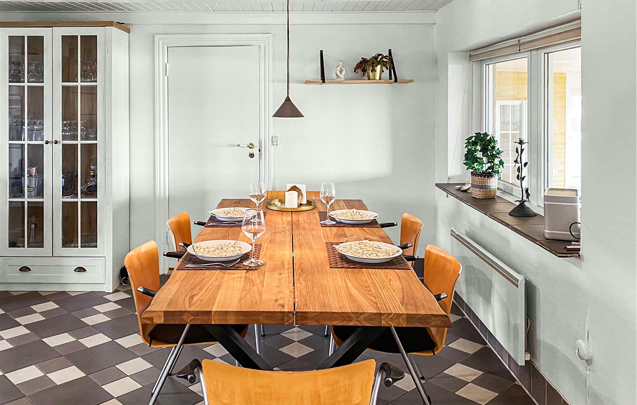 In Thorsminde verwelkomt dit vakantiehuis je op een charmante locatie direct aan de landtong tussen de Noordzee en het Nissum Fjord. Het liefdevol ingerichte interieur biedt verschillende sfeervolle details zoals de oude, Zweedse tegelkachel en maakt overal een lichte en smaakvolle indruk. Breng ontspannende leesuurtjes door in een van de woonkamers of kom samen voor je favoriete bordspel en warm je op voor de open haard op kille avonden.