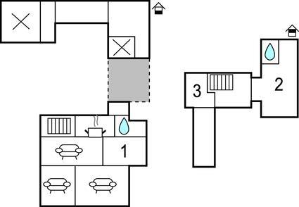 Badkamer (nr. 2) - Toilet: warm en koud water. Douche